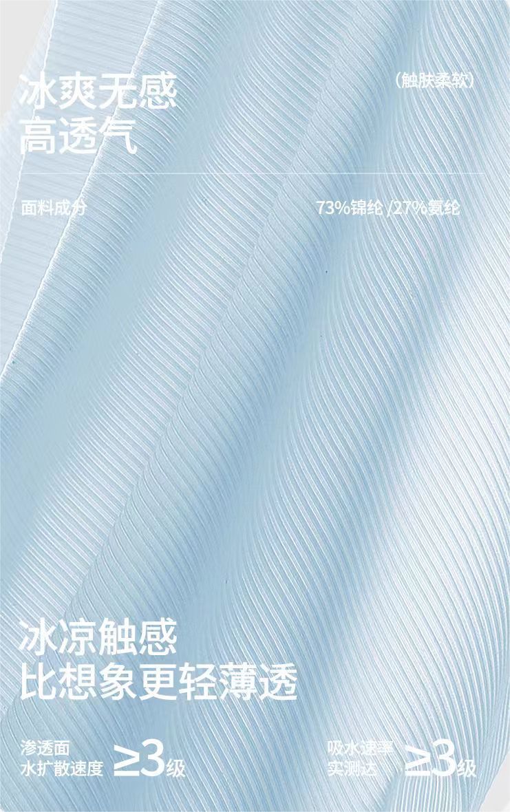 夏季一穿立刻降温,带来前所未有的凉爽体验 无痕工艺,边缘平滑细腻 即使穿着紧身衣物也能完全无痕