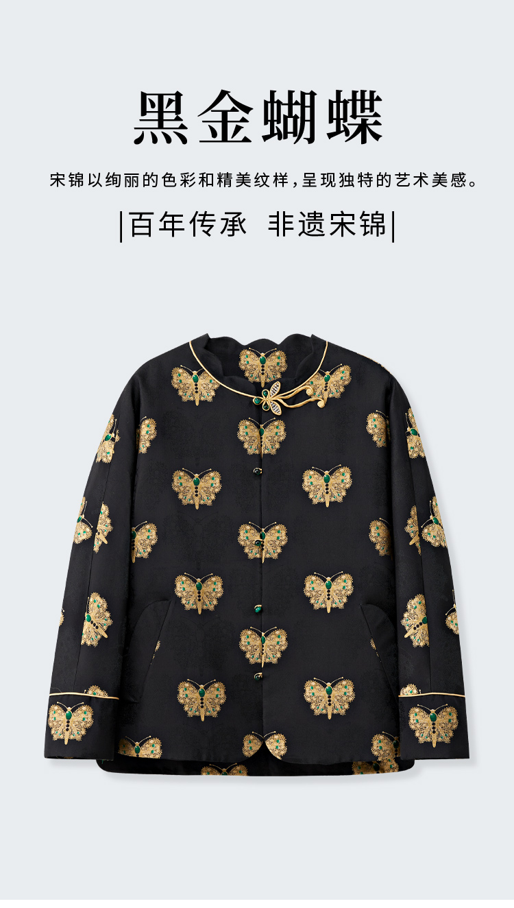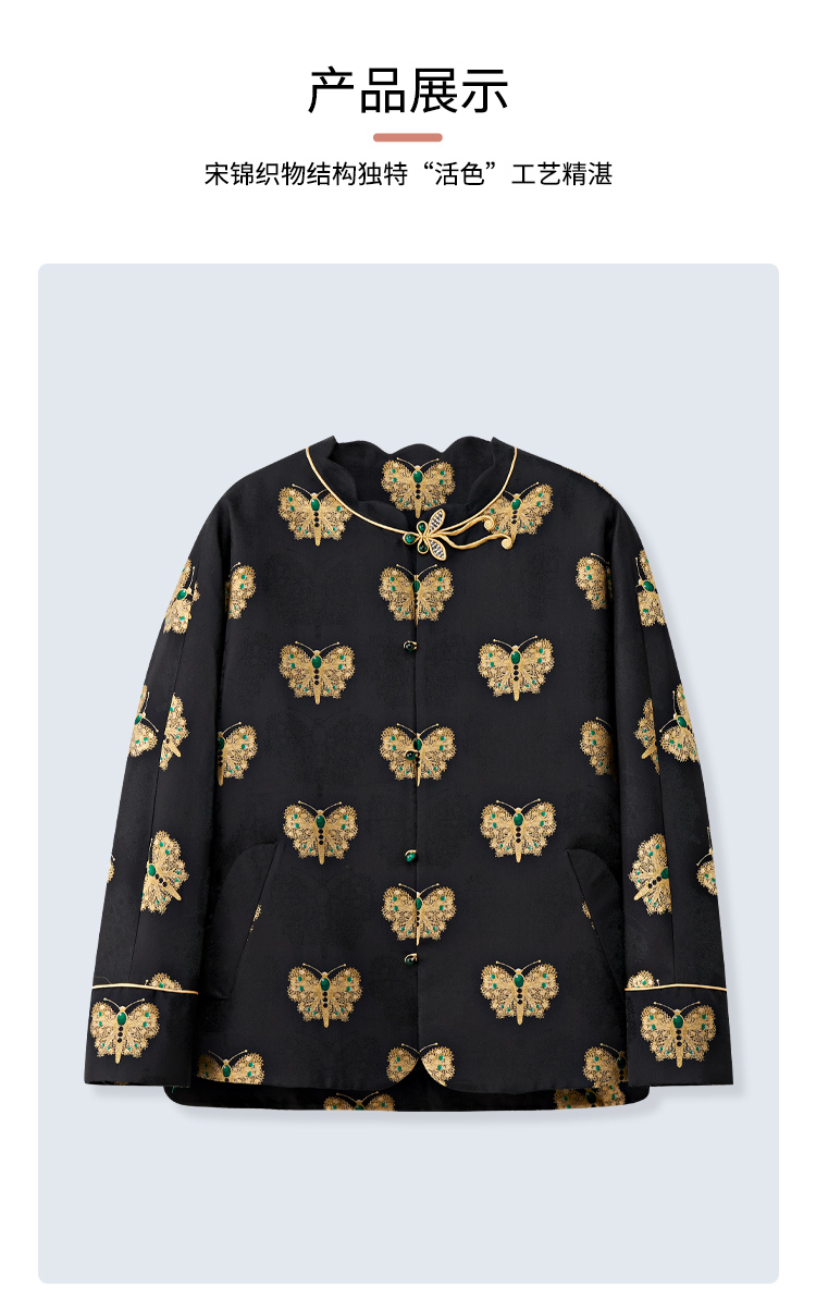 SAINTJOY/上久楷 女式宋锦外套 中式上衣 中国风 复古黑金蝴蝶 CY1024207014