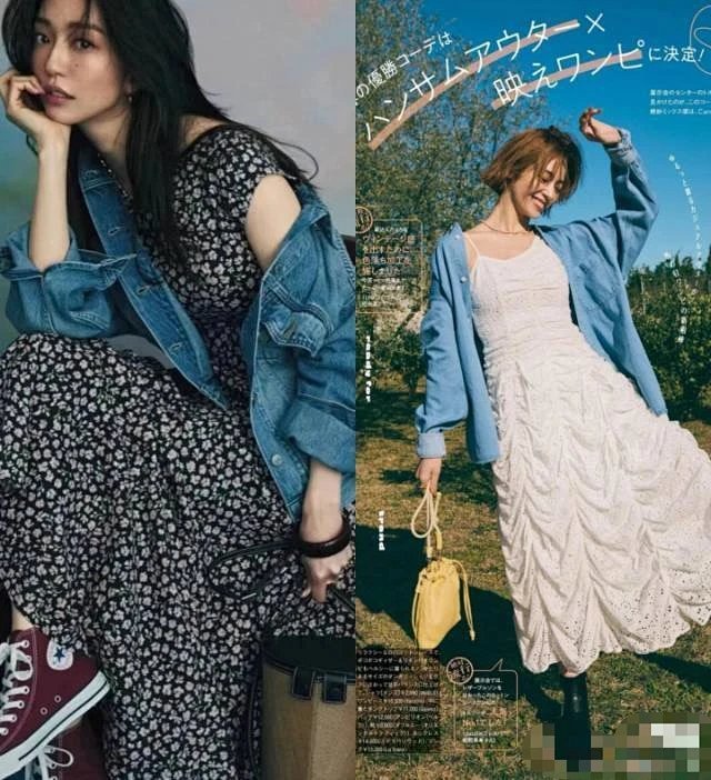 内搭针织衫,连帽卫衣、甚至是碎花连衣裙