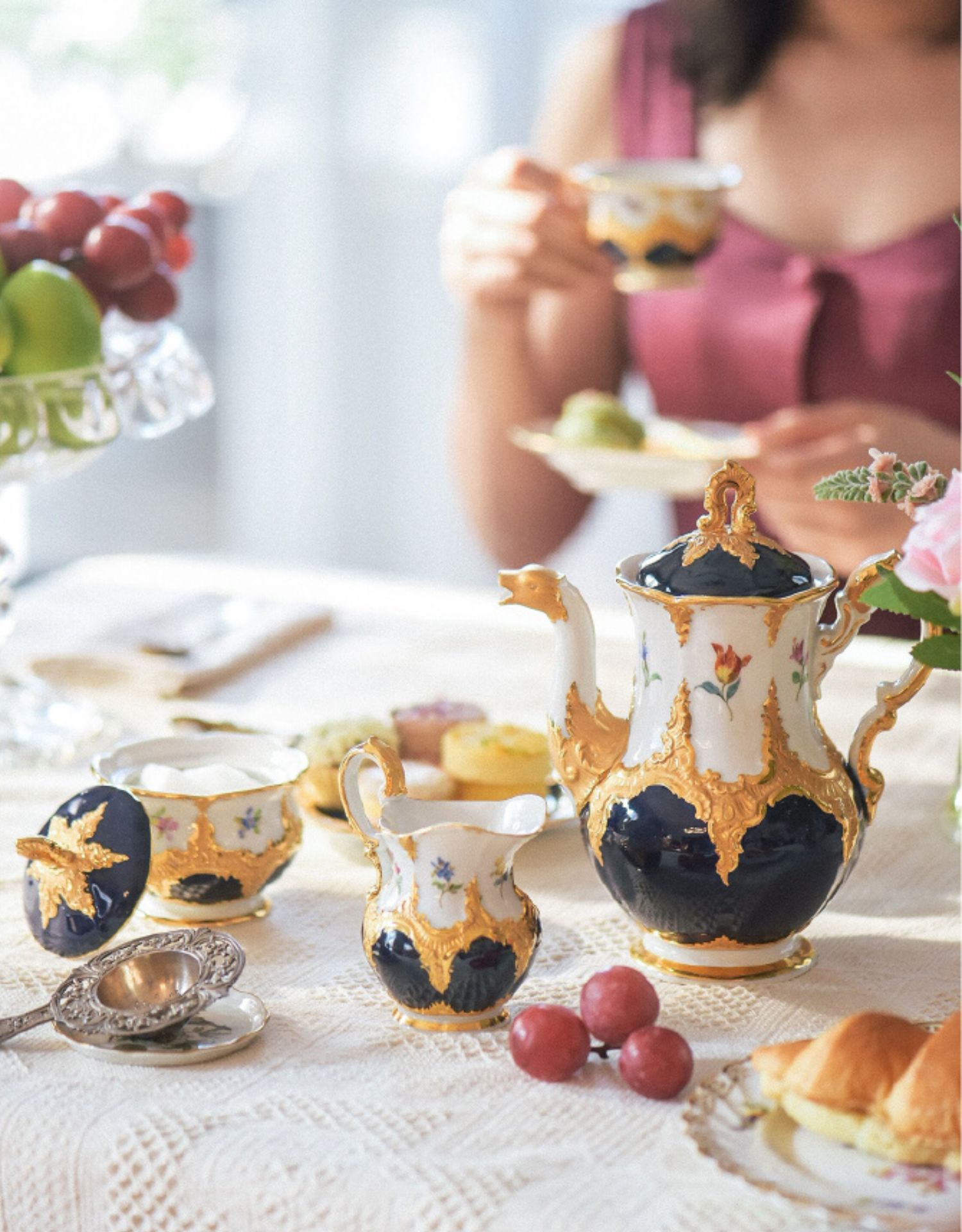 独角鹿西洋古董梅森瓷器花瓶瓷偶摆件杯碟下午茶套装烛台订金