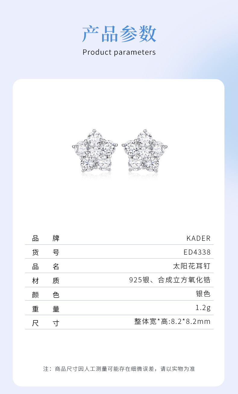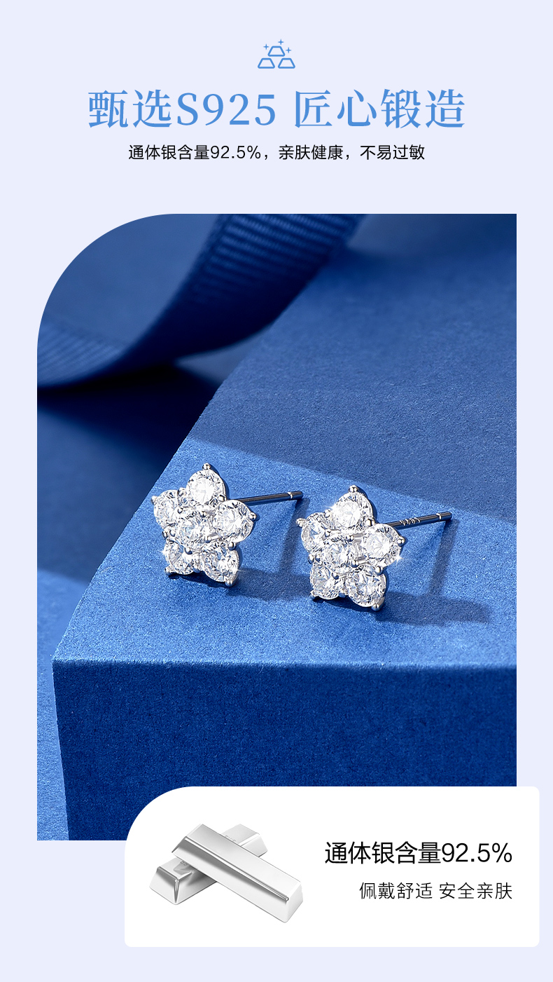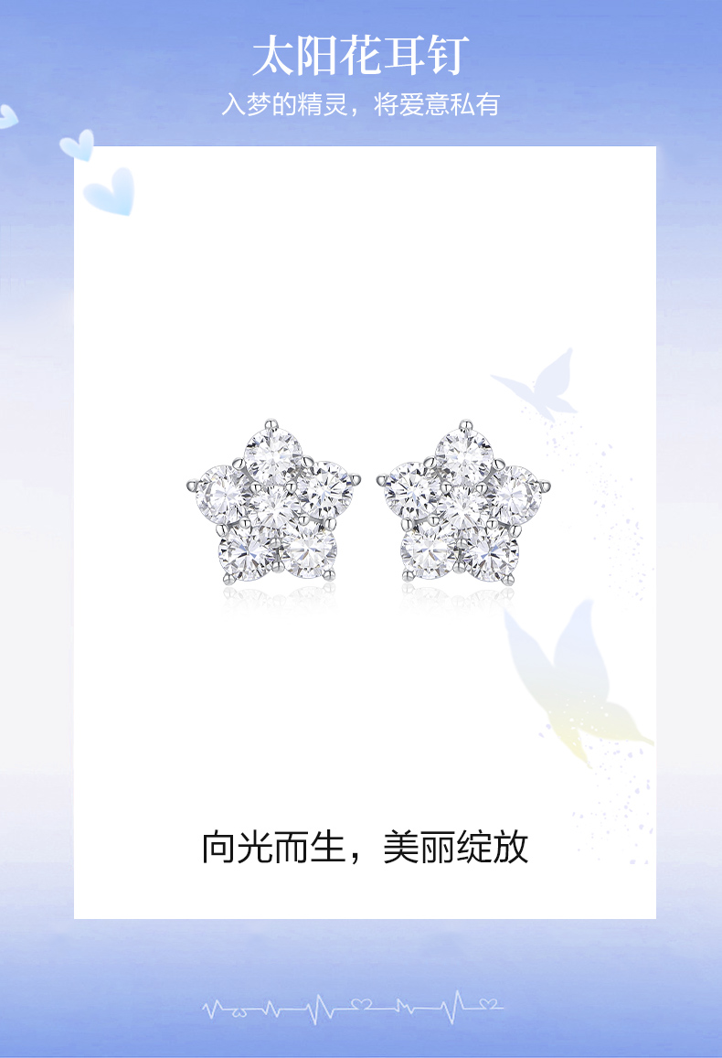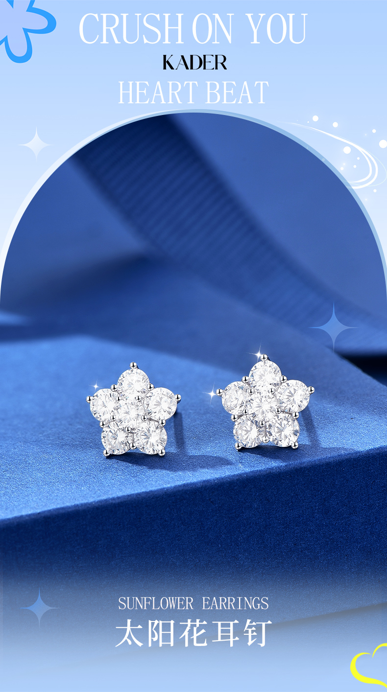 卡蒂罗/KADER 太阳花耳钉 五瓣花系列闪耀繁花满镶宝石轻奢时尚甜美耳饰 时尚五角星养耳洞配饰 925银 送女友