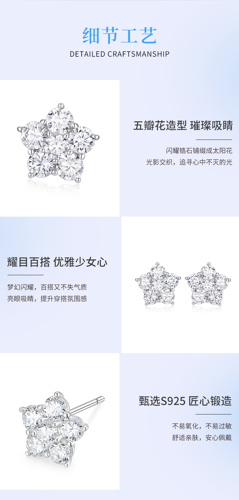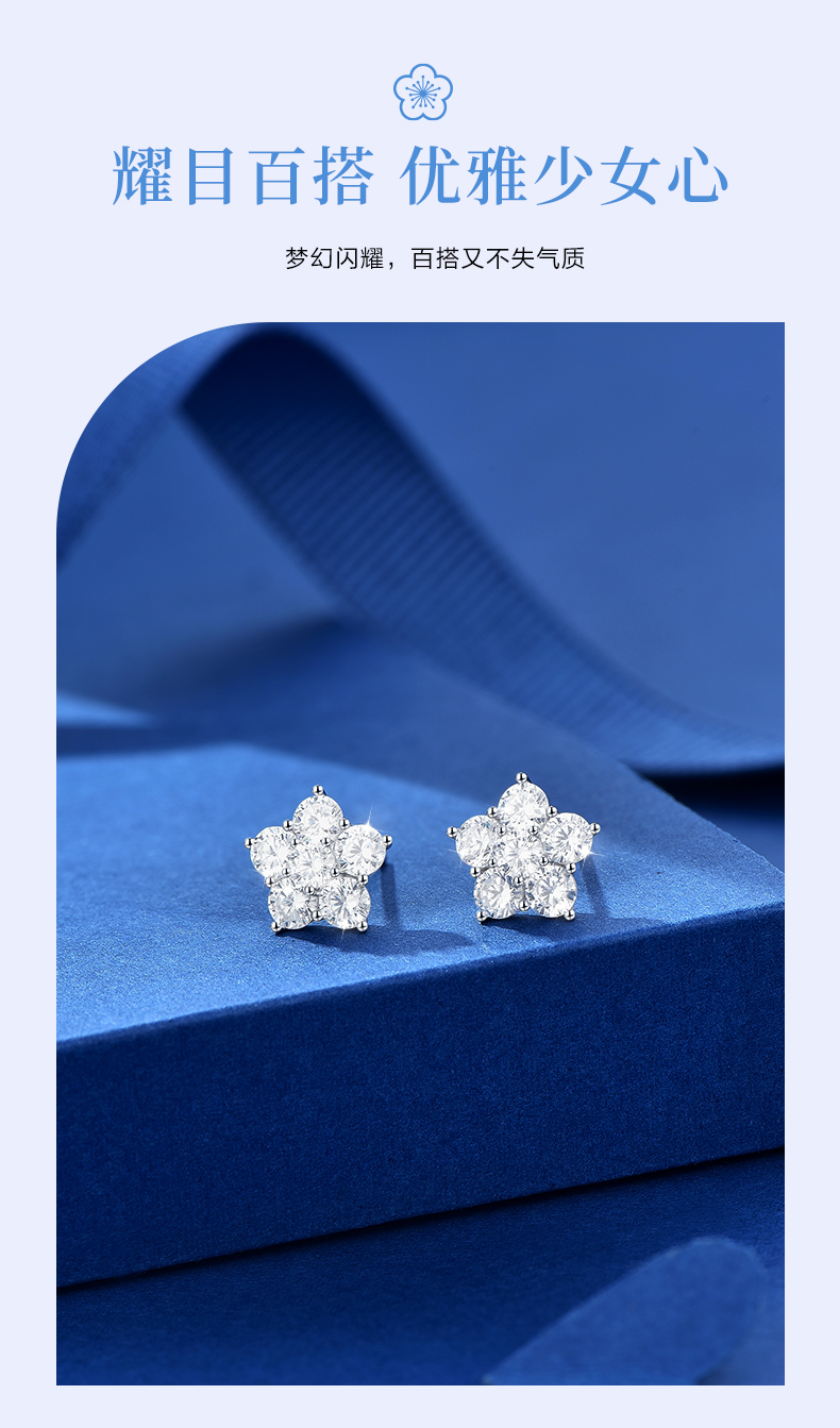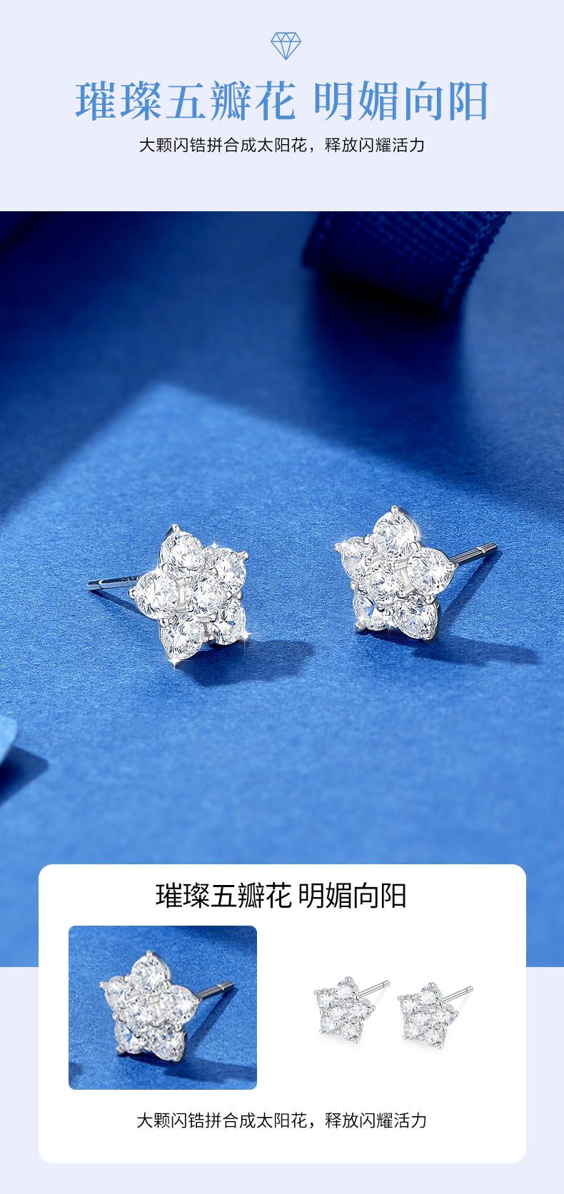 卡蒂罗/KADER 太阳花耳钉 五瓣花系列闪耀繁花满镶宝石轻奢时尚甜美耳饰 时尚五角星养耳洞配饰 925银 送女友