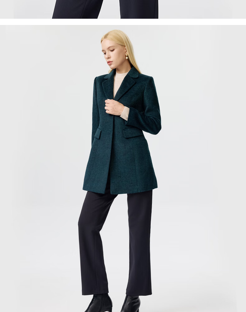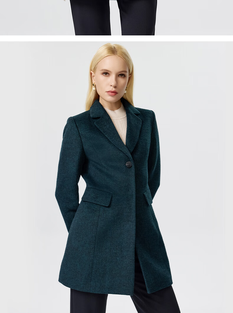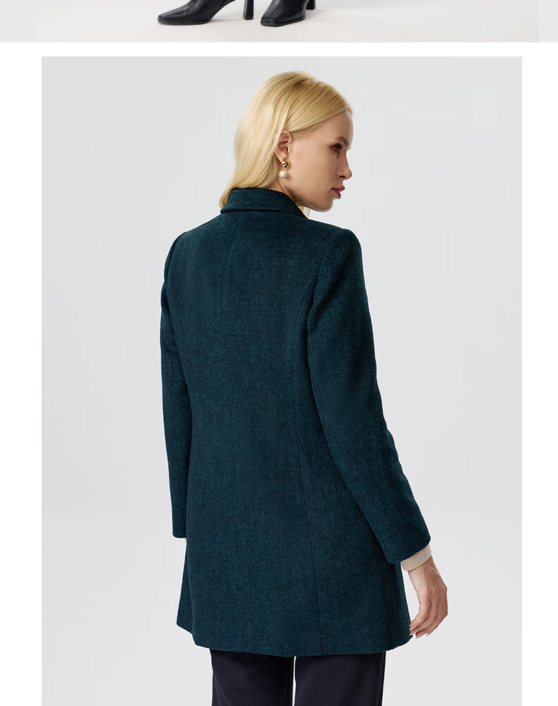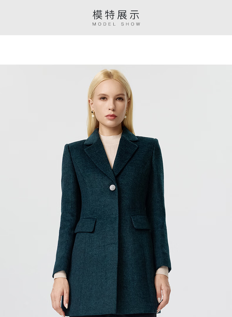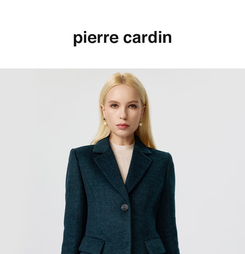 皮尔卡丹女装毛呢外套绿色羊毛复古休闲西装式外套女P2400C2881G0