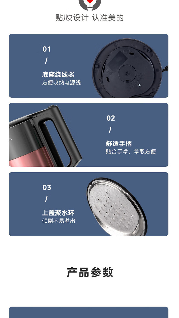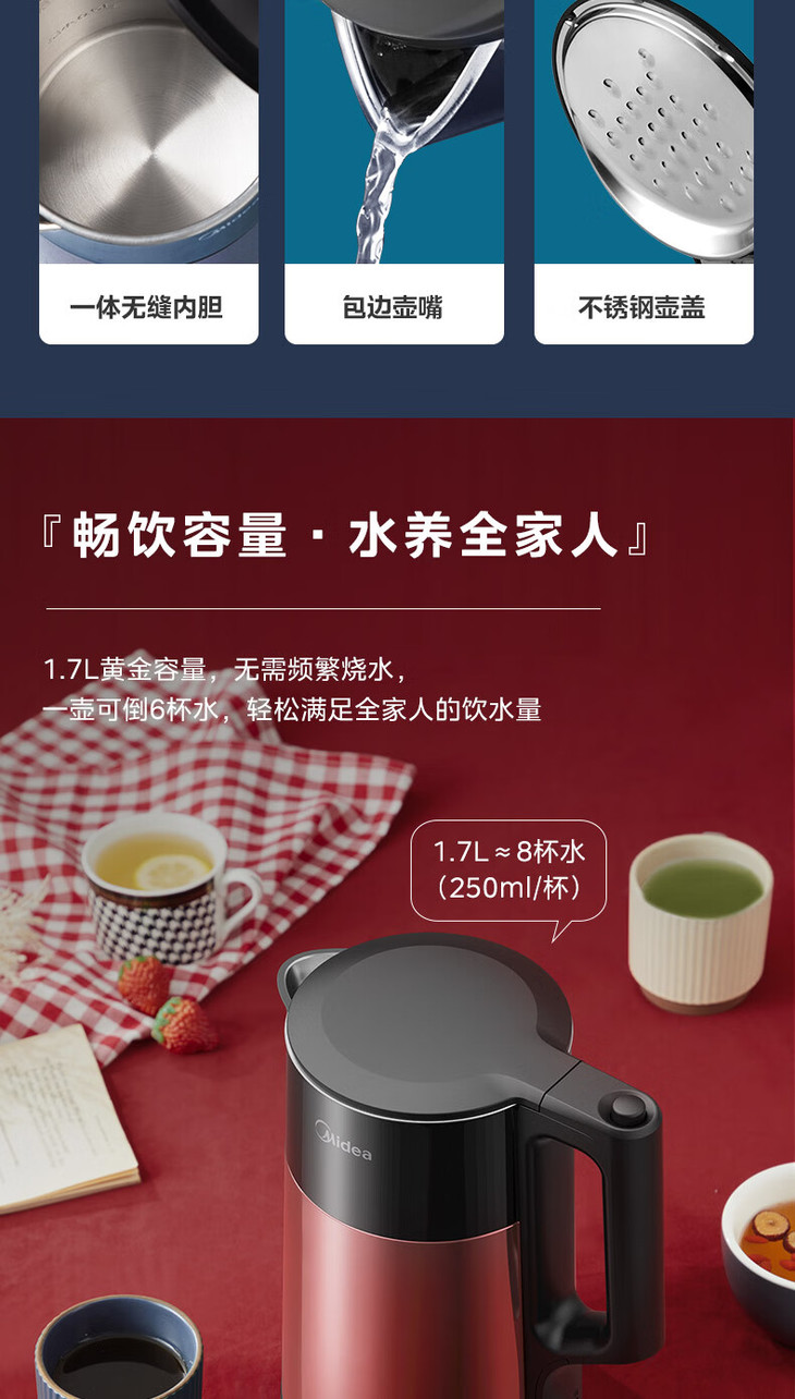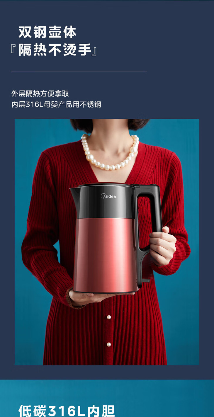 美的(Midea)(510181)电热水壶双层防烫316母婴级不锈钢家用烧水壶1.7升容量长效保温开水壶泡茶自动断电HJ1709