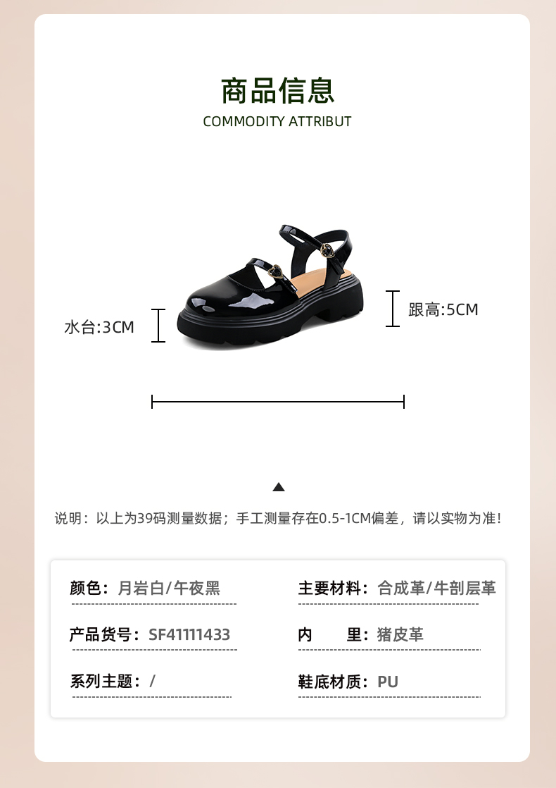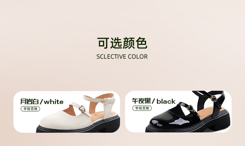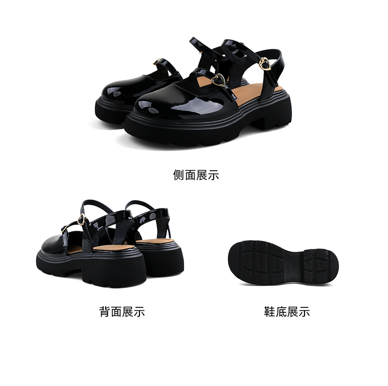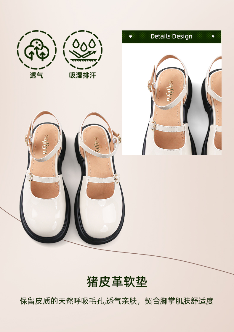 Safiya/索菲娅2024新款 学院风厚底圆头甜酷玛丽珍中后空凉鞋 SF43114401