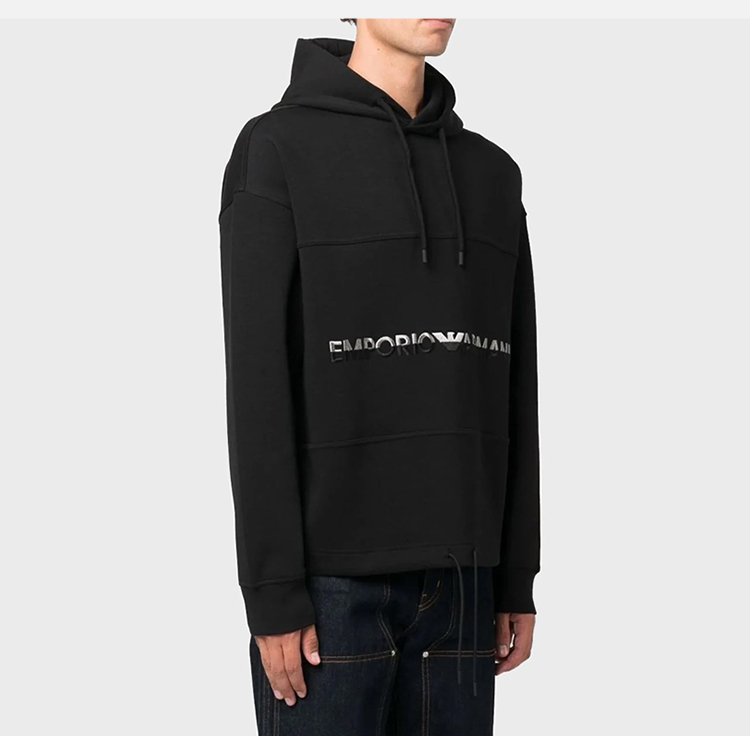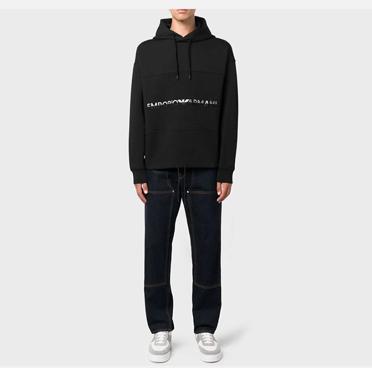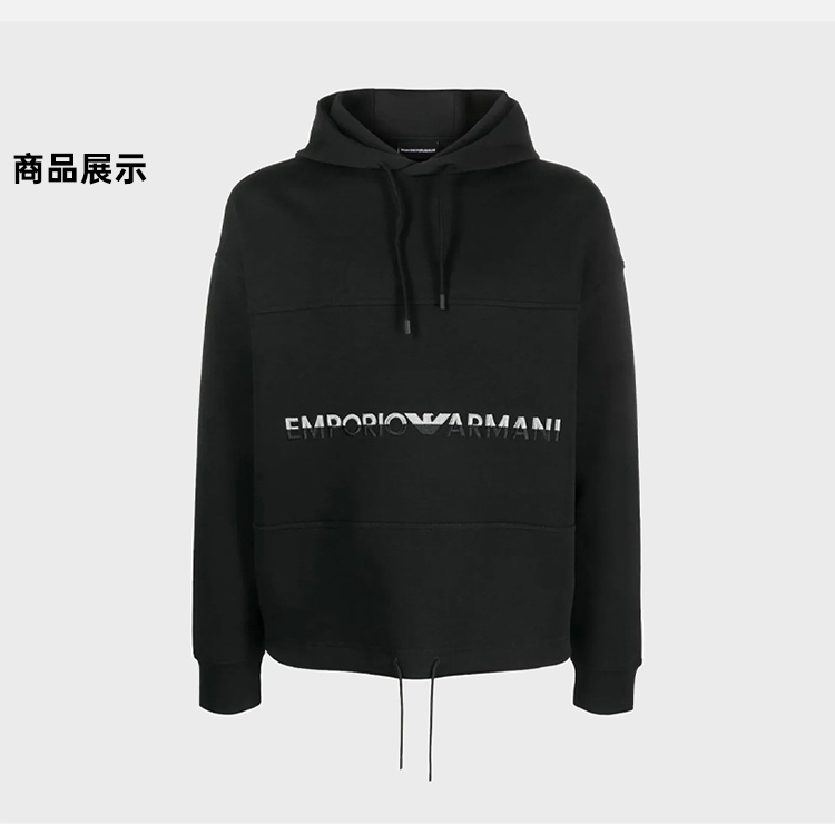 EMPORIO ARMANI 阿玛尼 男士棉质字母徽标印花连帽卫衣 黑色 6R1MCM 1JHSZ 0999