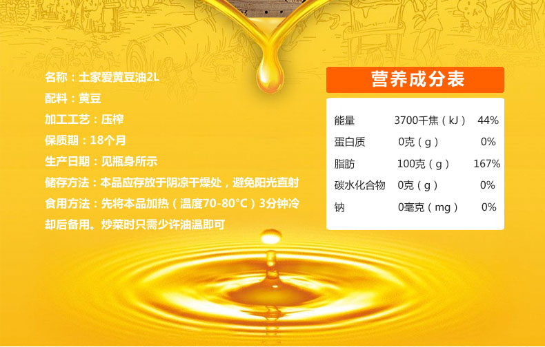 土家爱黄豆油2L