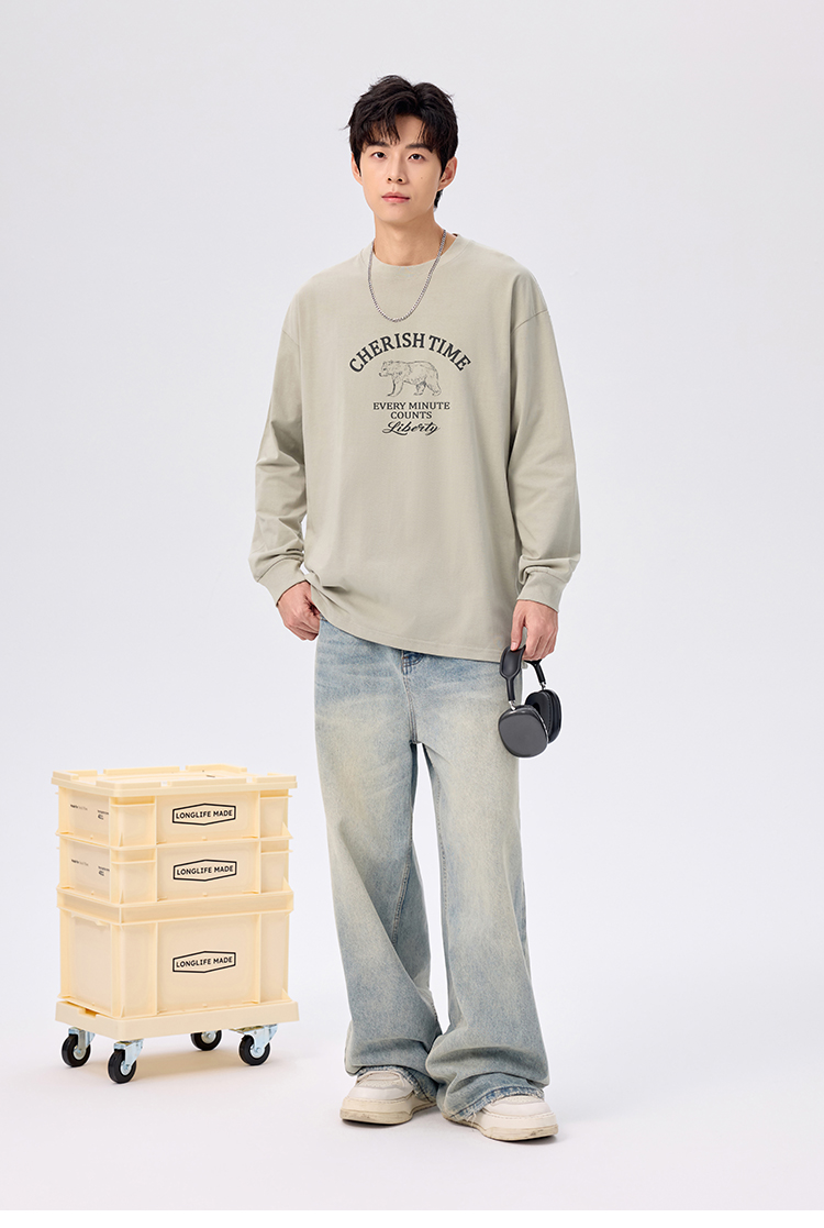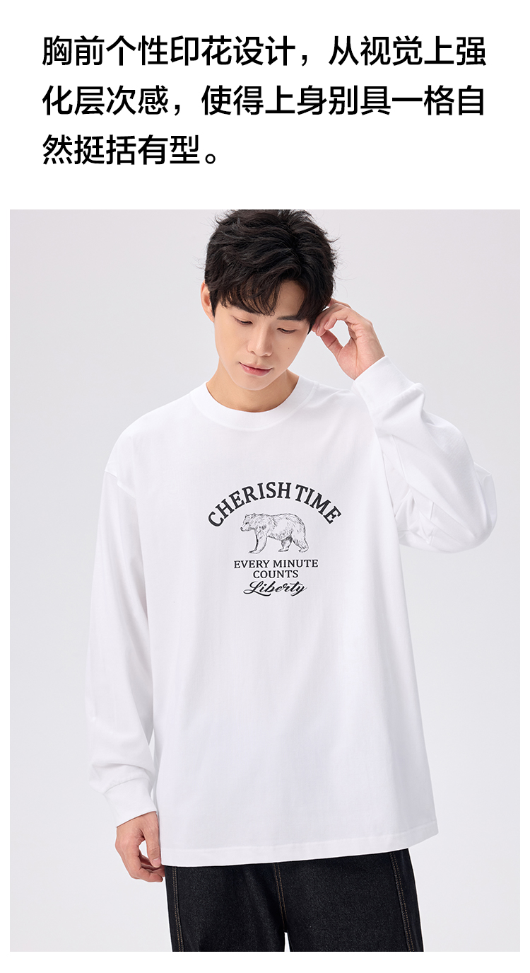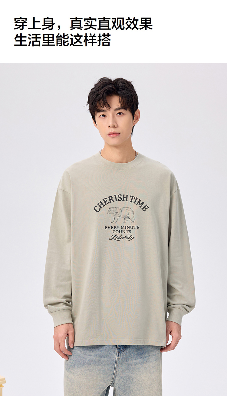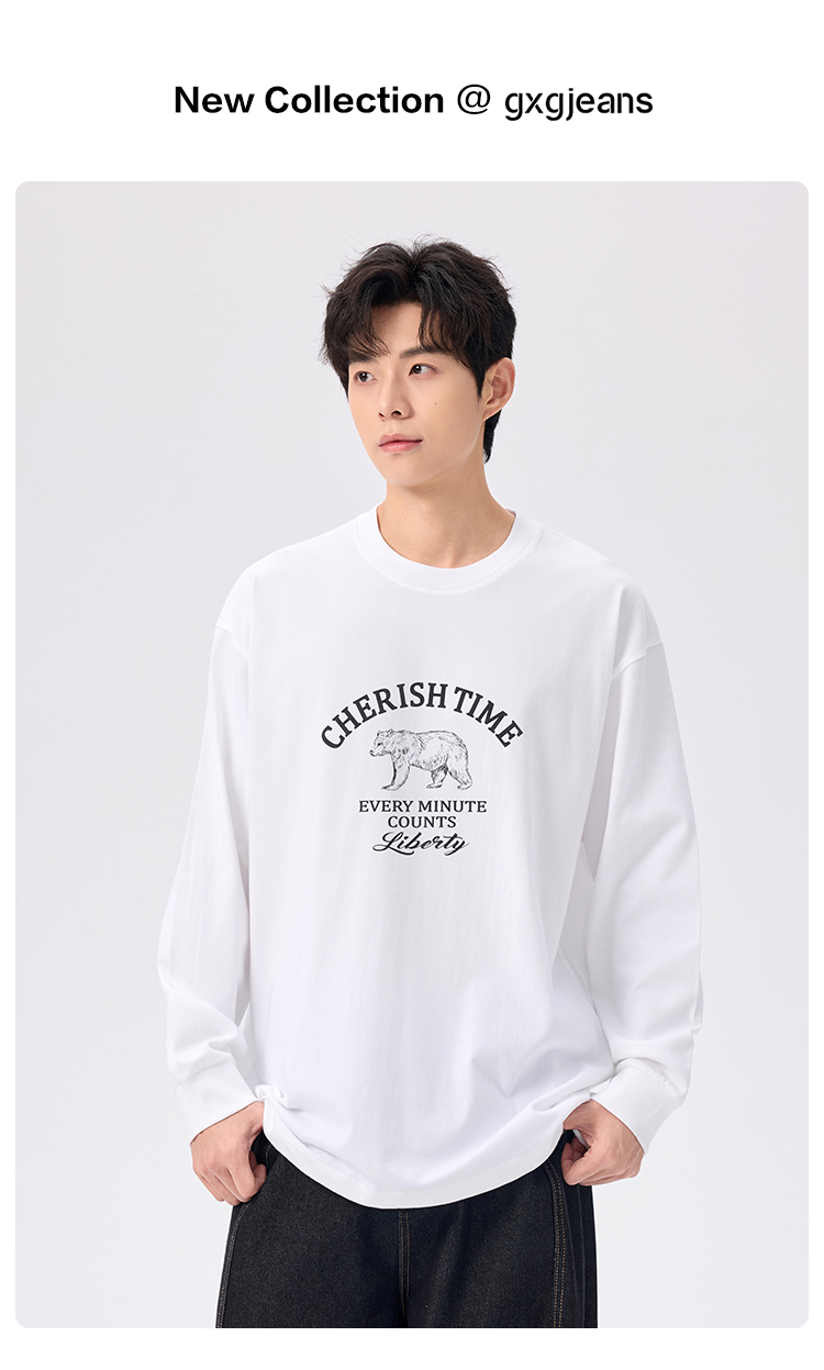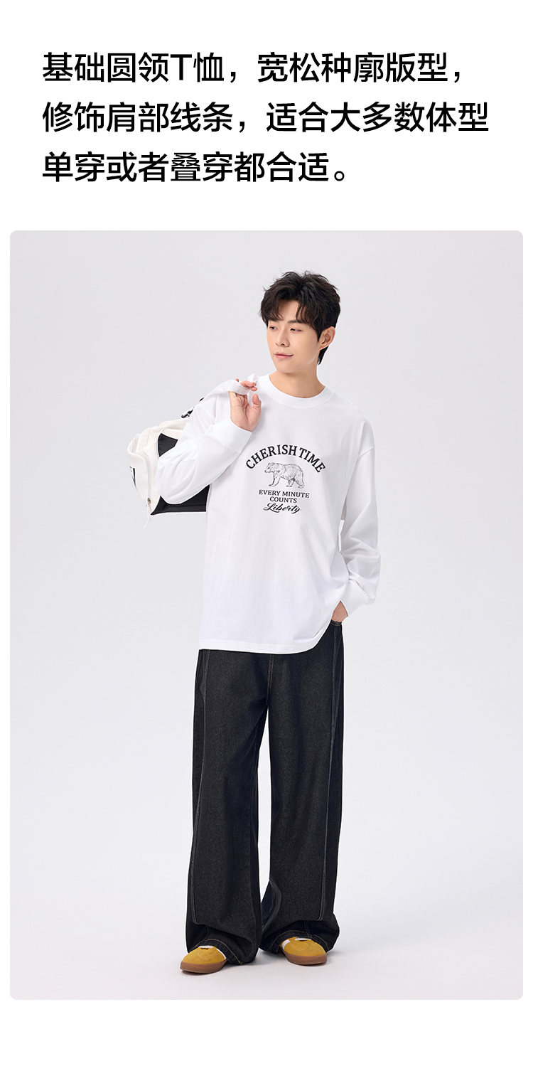 gxgjeans 男装【棉100%】25秋款男士长袖T恤校园户外运动叠穿打底衫上衣K&C