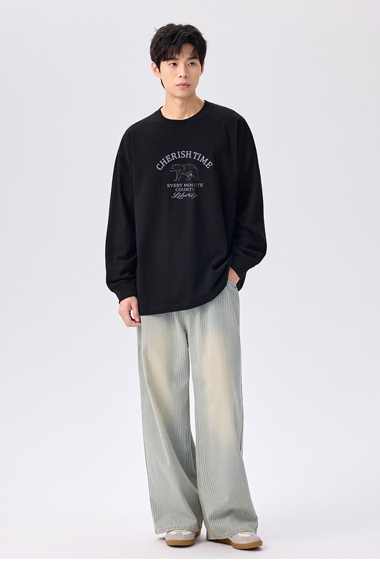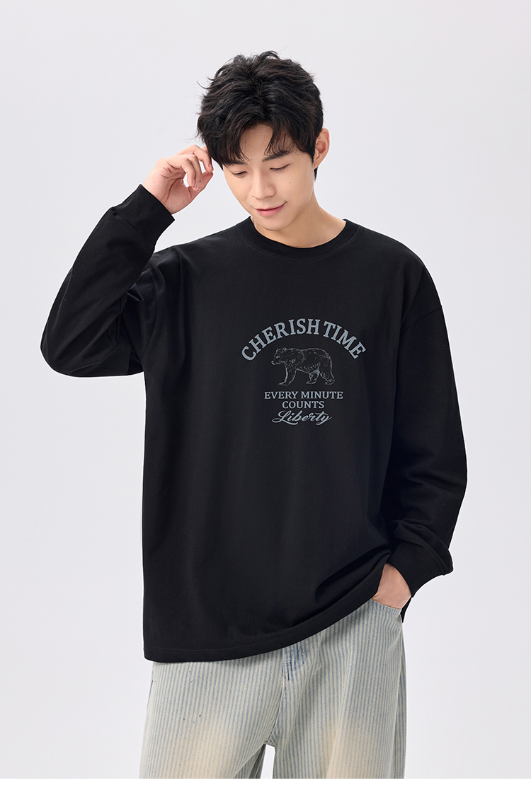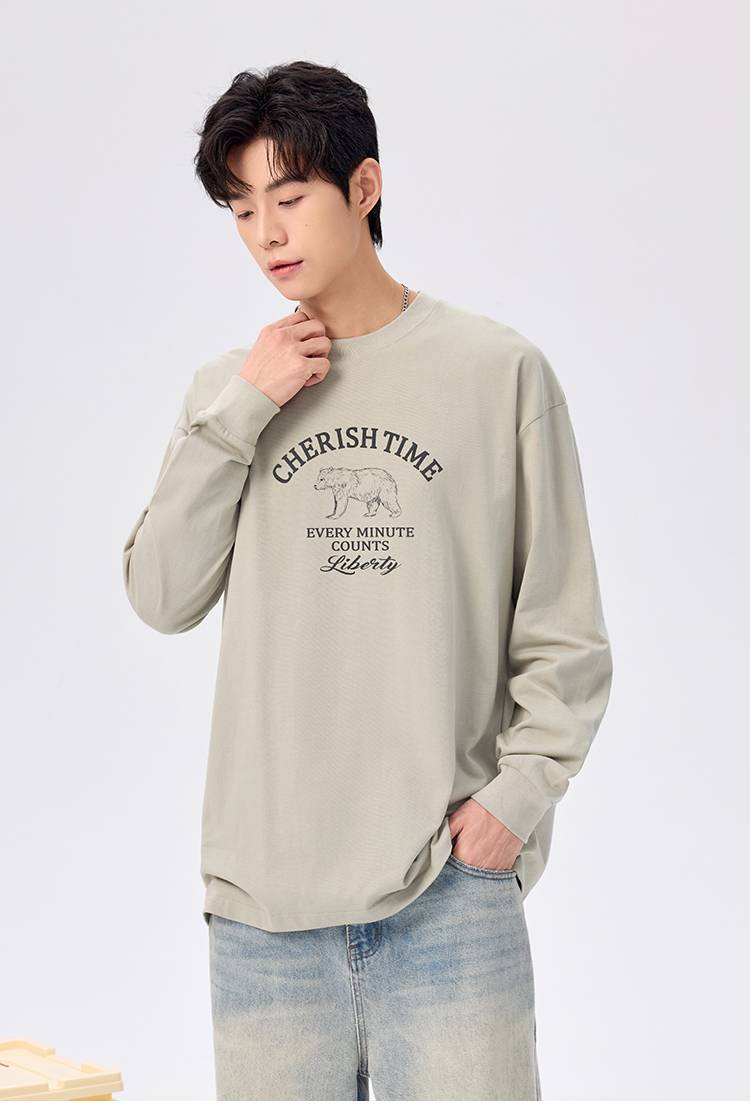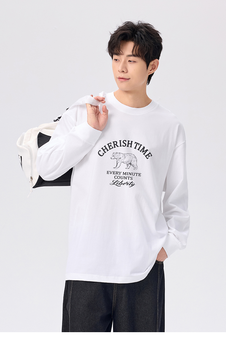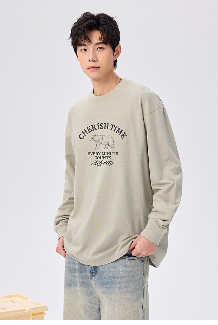 gxgjeans 男装【棉100%】25秋款男士长袖T恤校园户外运动叠穿打底衫上衣K&C