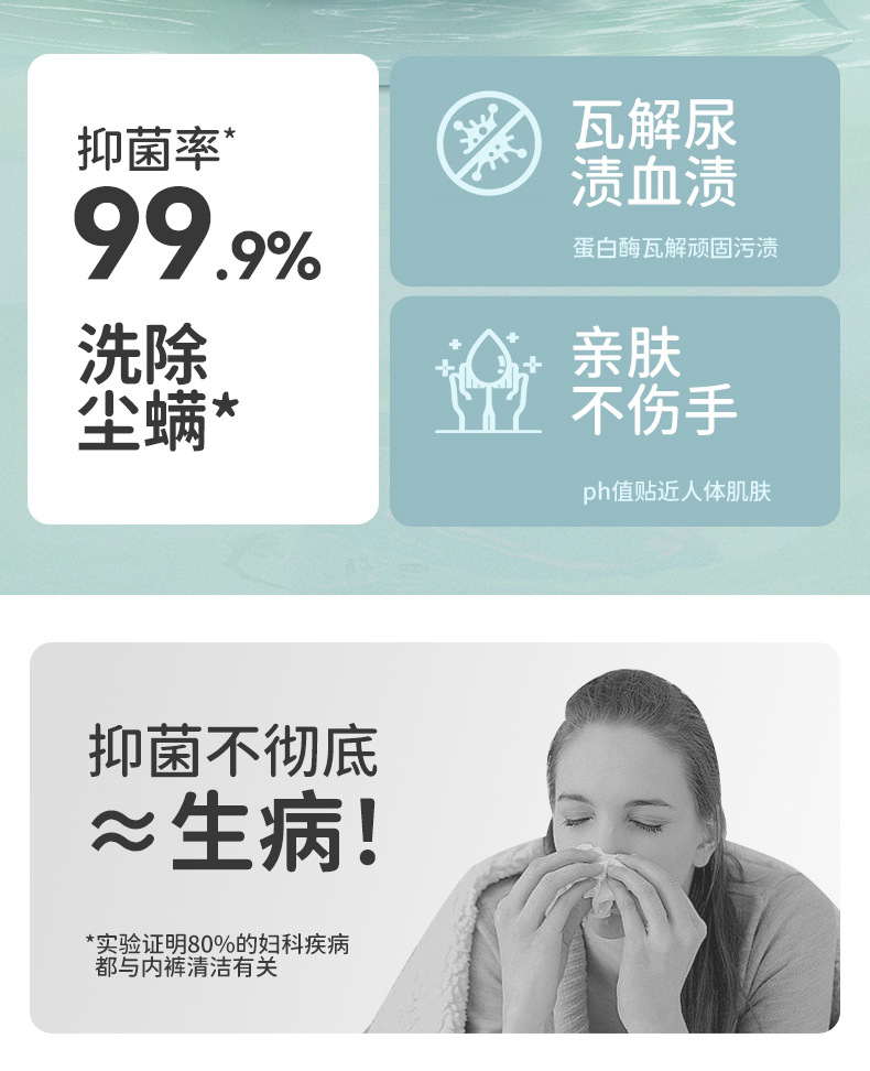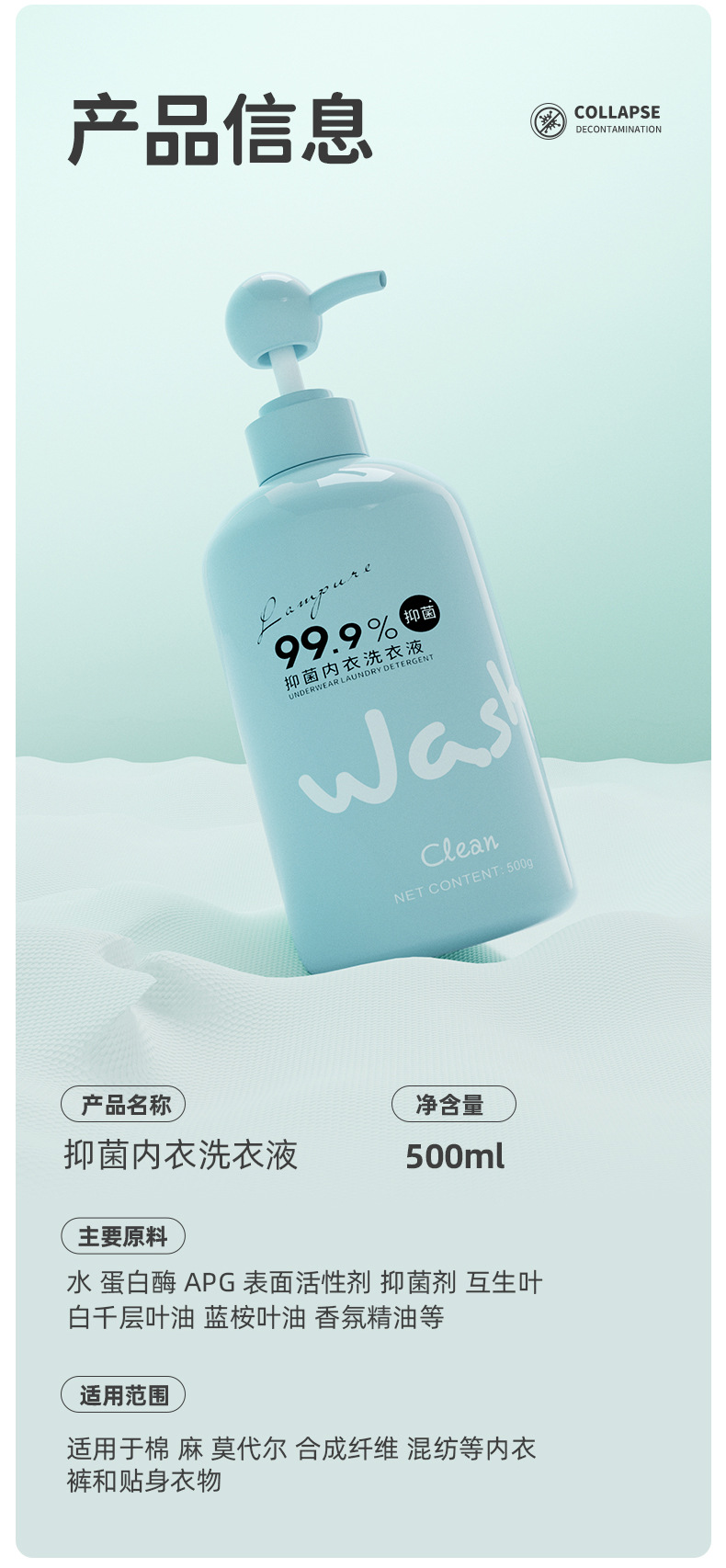 「私密呵护」蓝漂内衣洗衣液 去黄去血渍洗衣液清洁工具