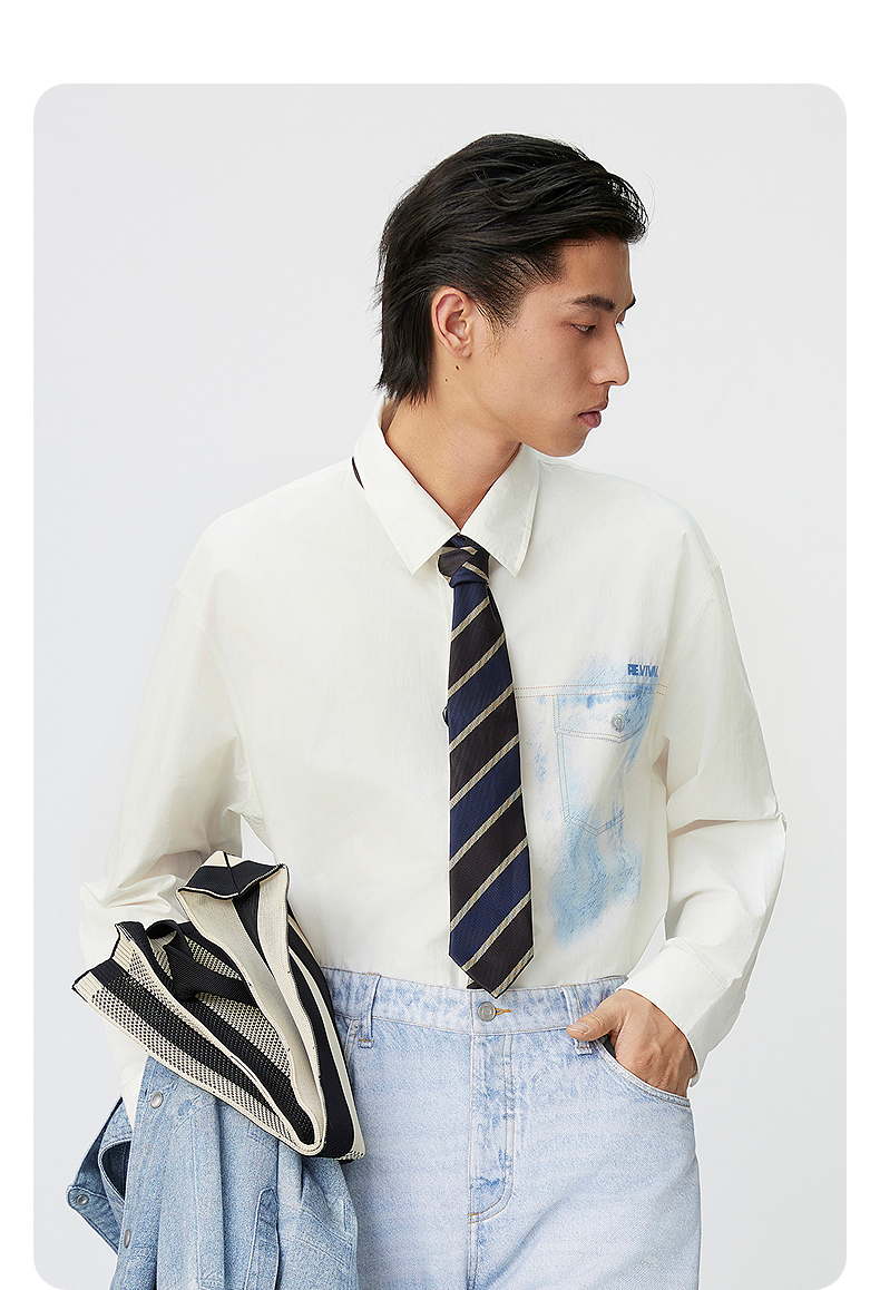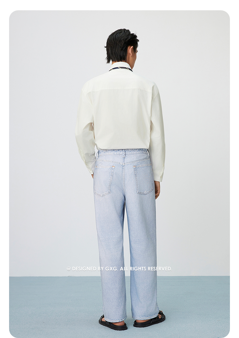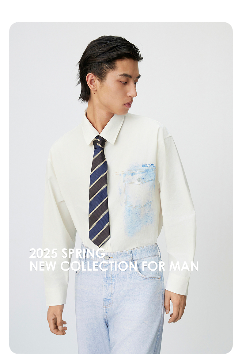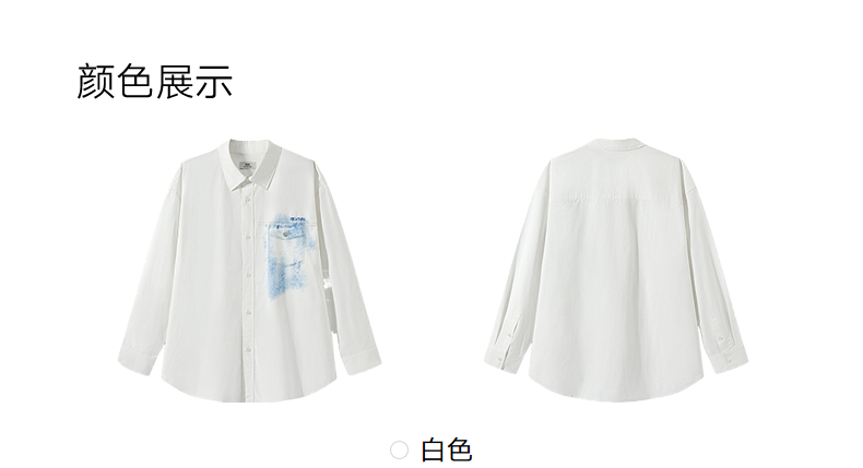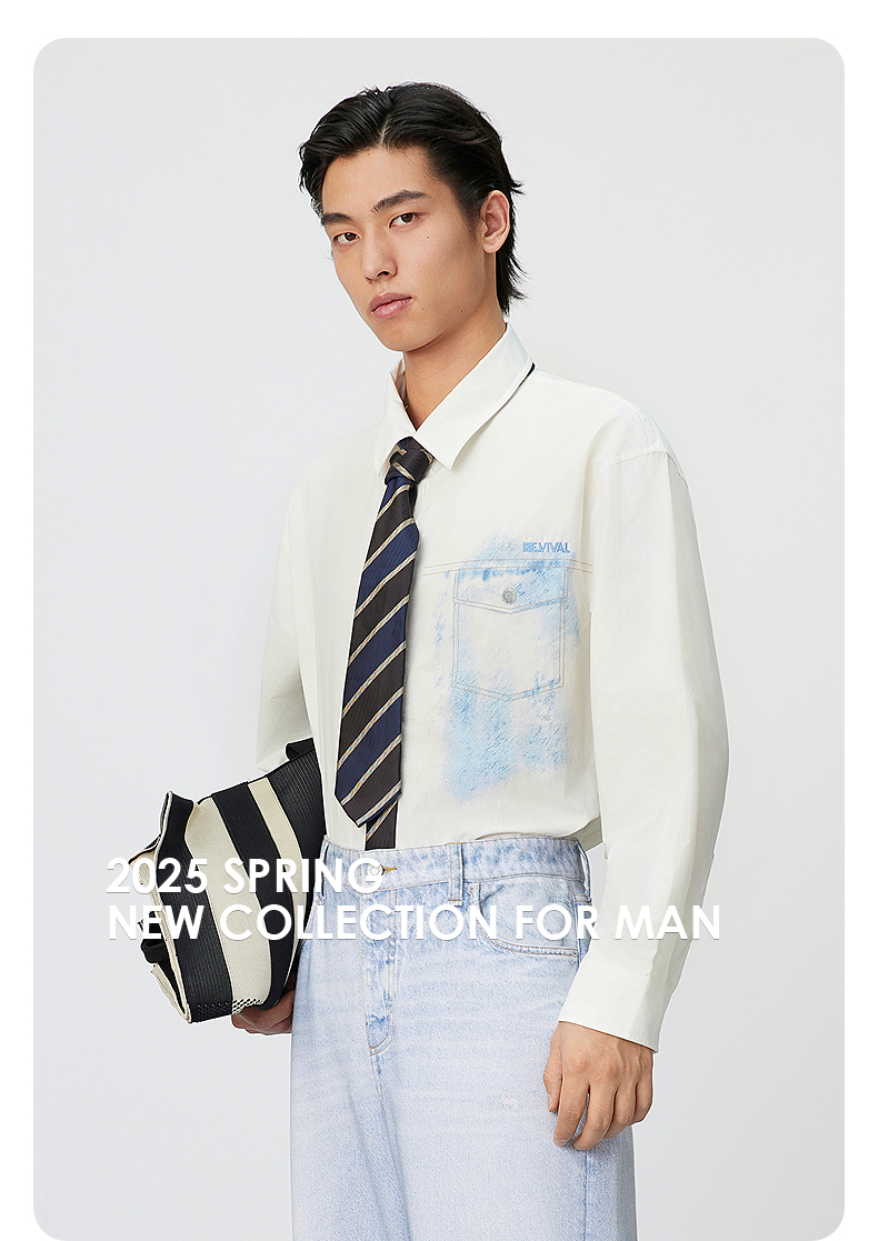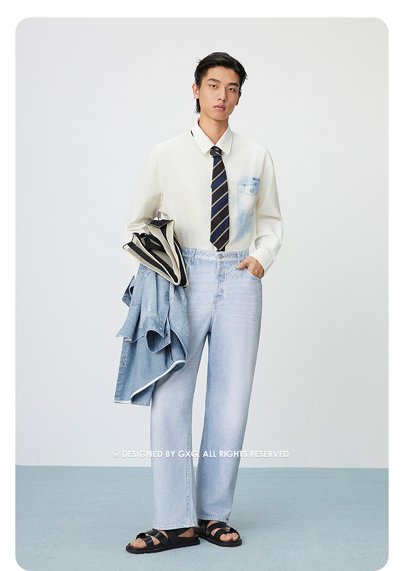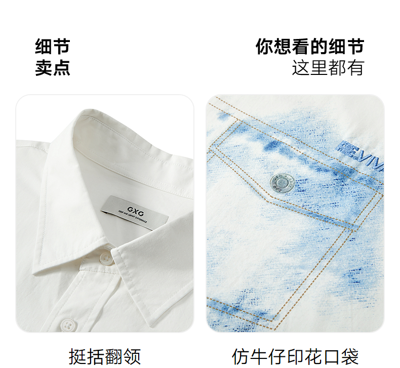 GXG男装 白色仿牛仔口袋设计时尚潮流长袖衬衫 25年春热卖