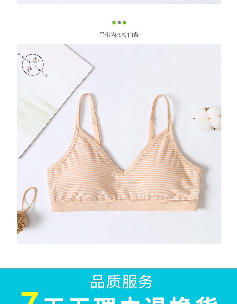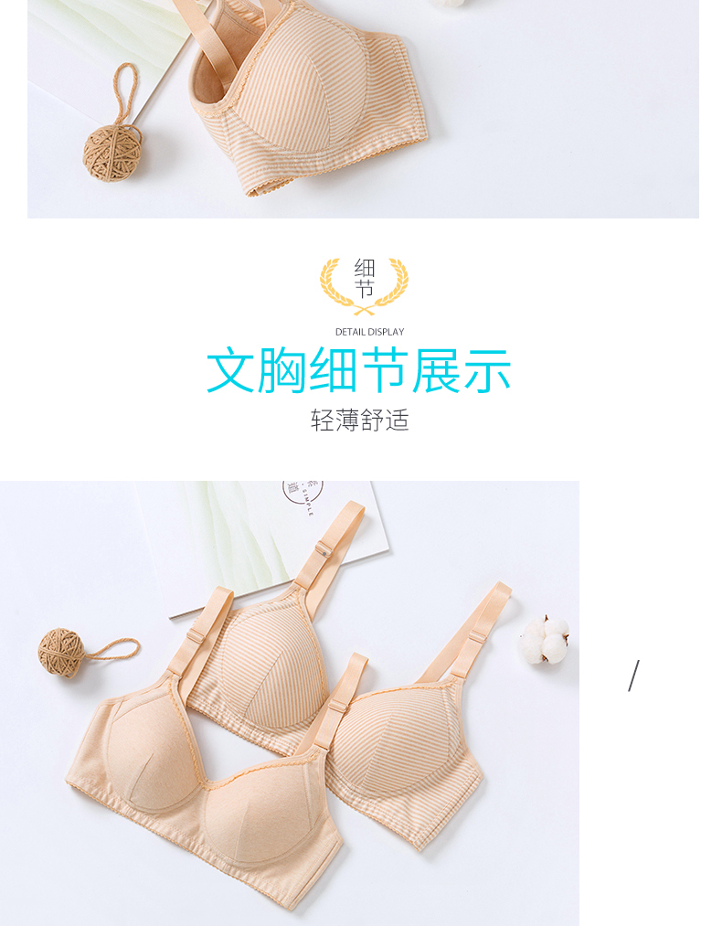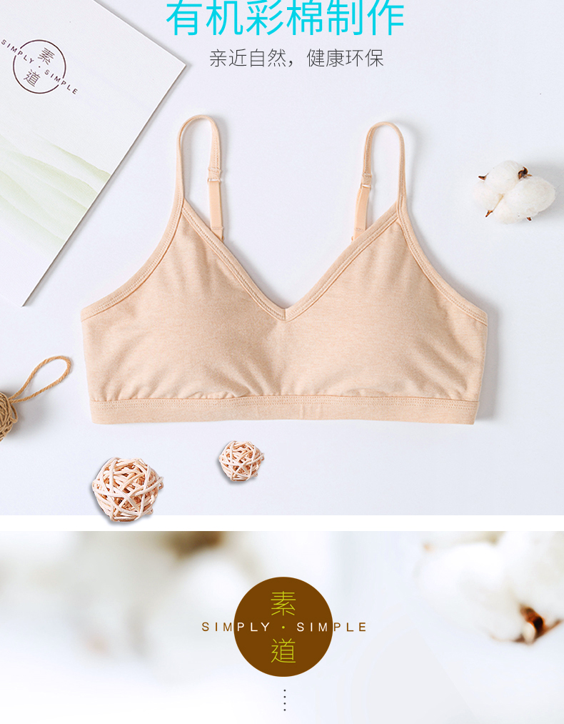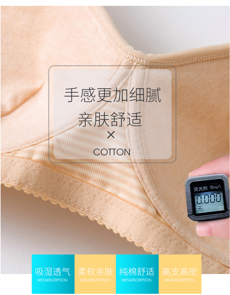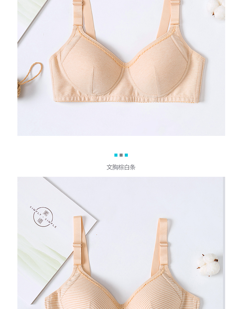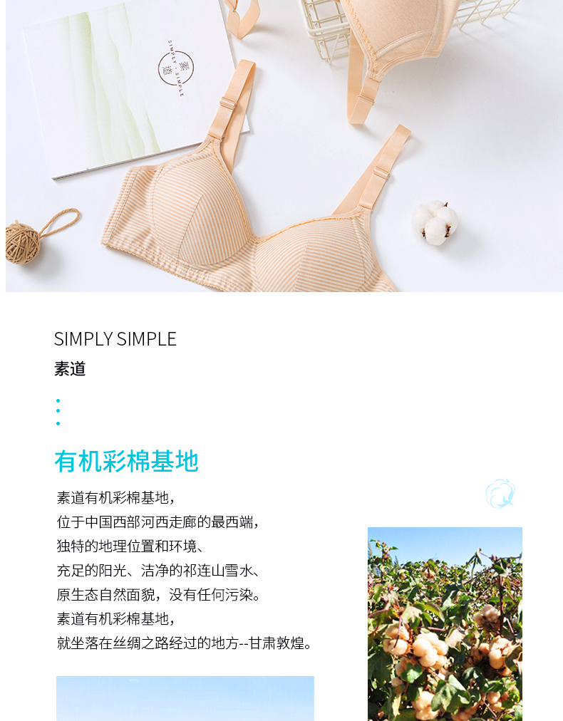 文胸采用让人感受到温暖的棕色调,里料为100%有机棉 更加安全健康。无钢圈 减少束缚感 给您舒适的体验。