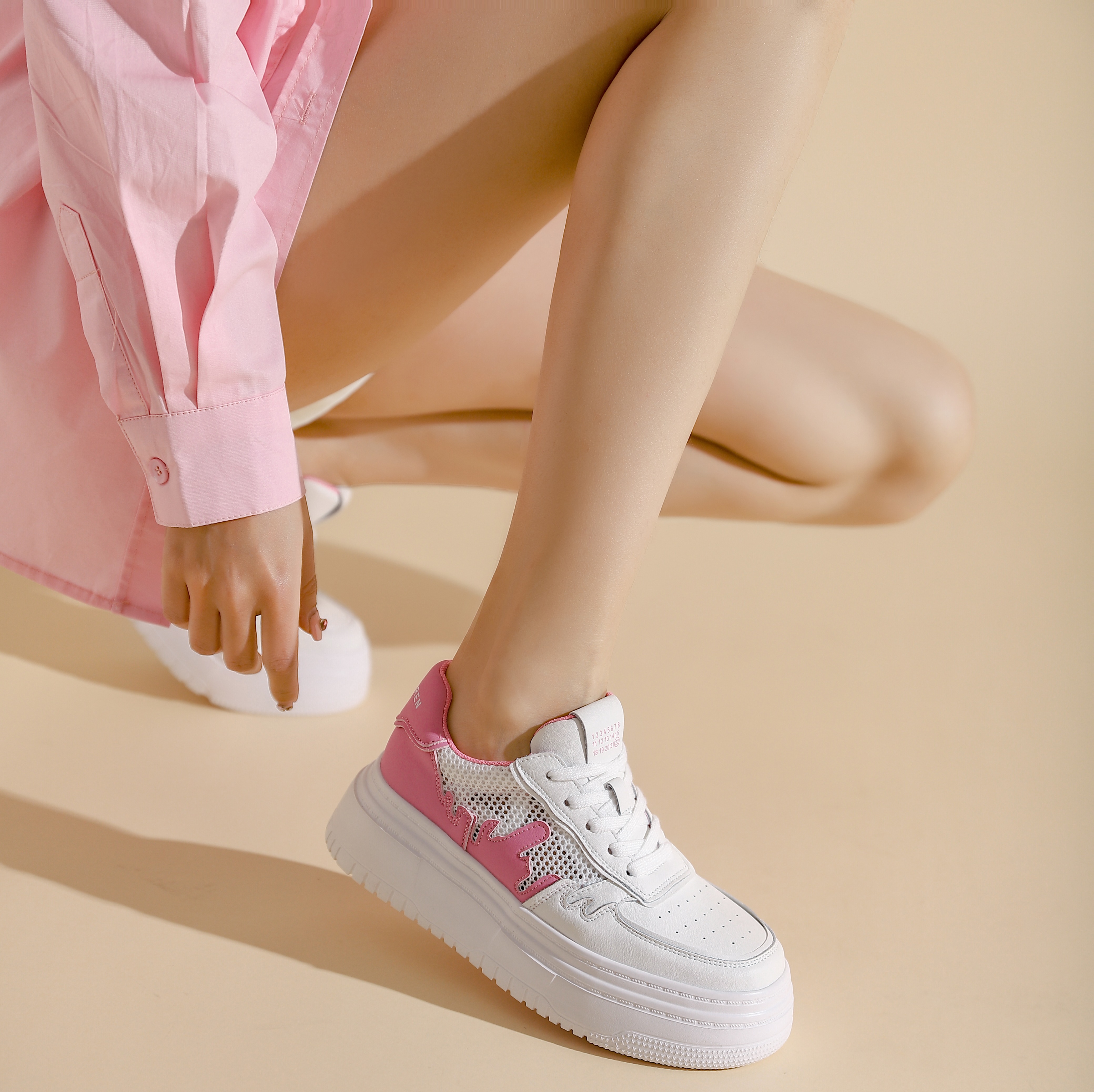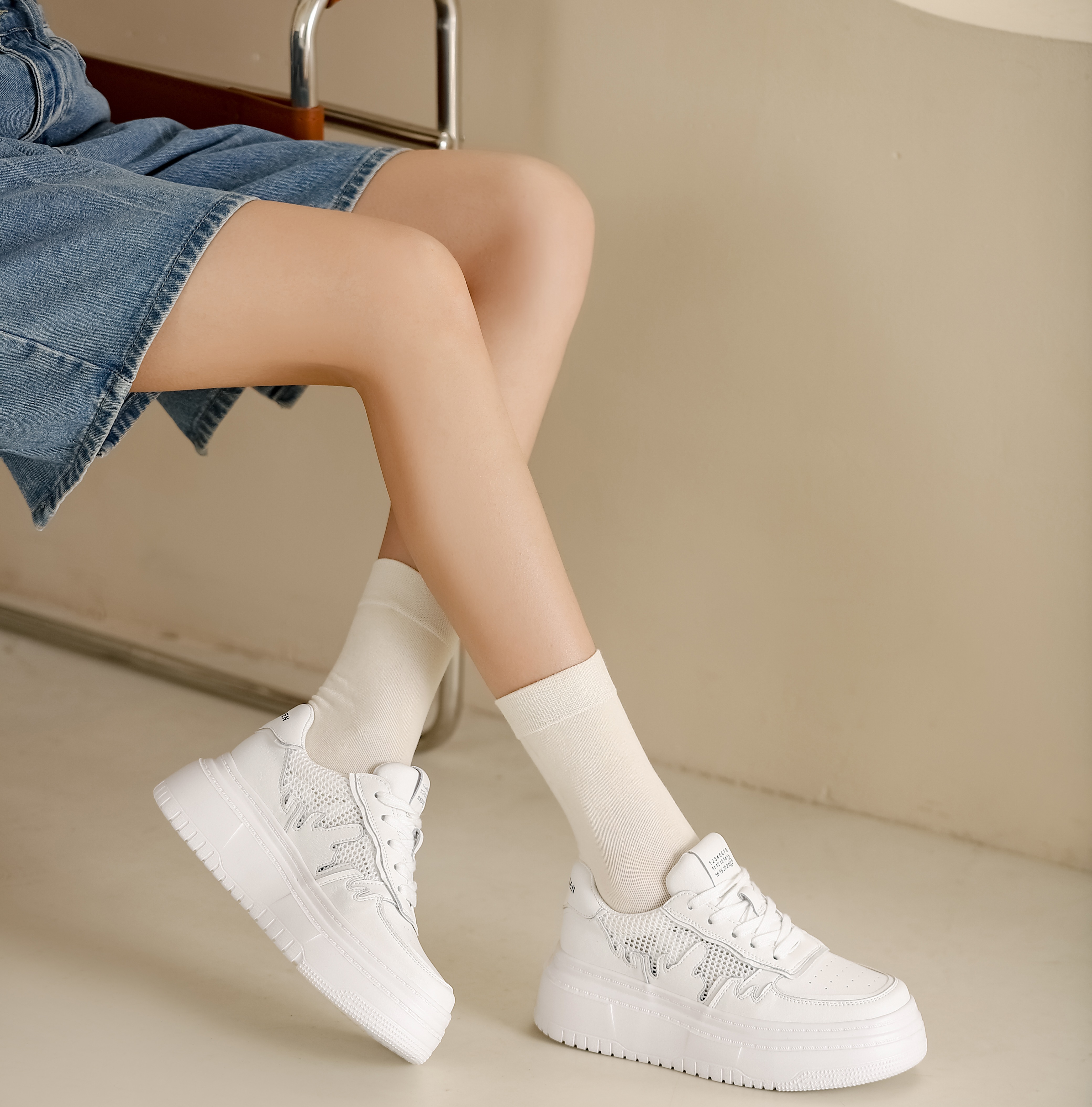 西村名物2023年商场新款运动休闲厚底网面透气板鞋小白女鞋13181