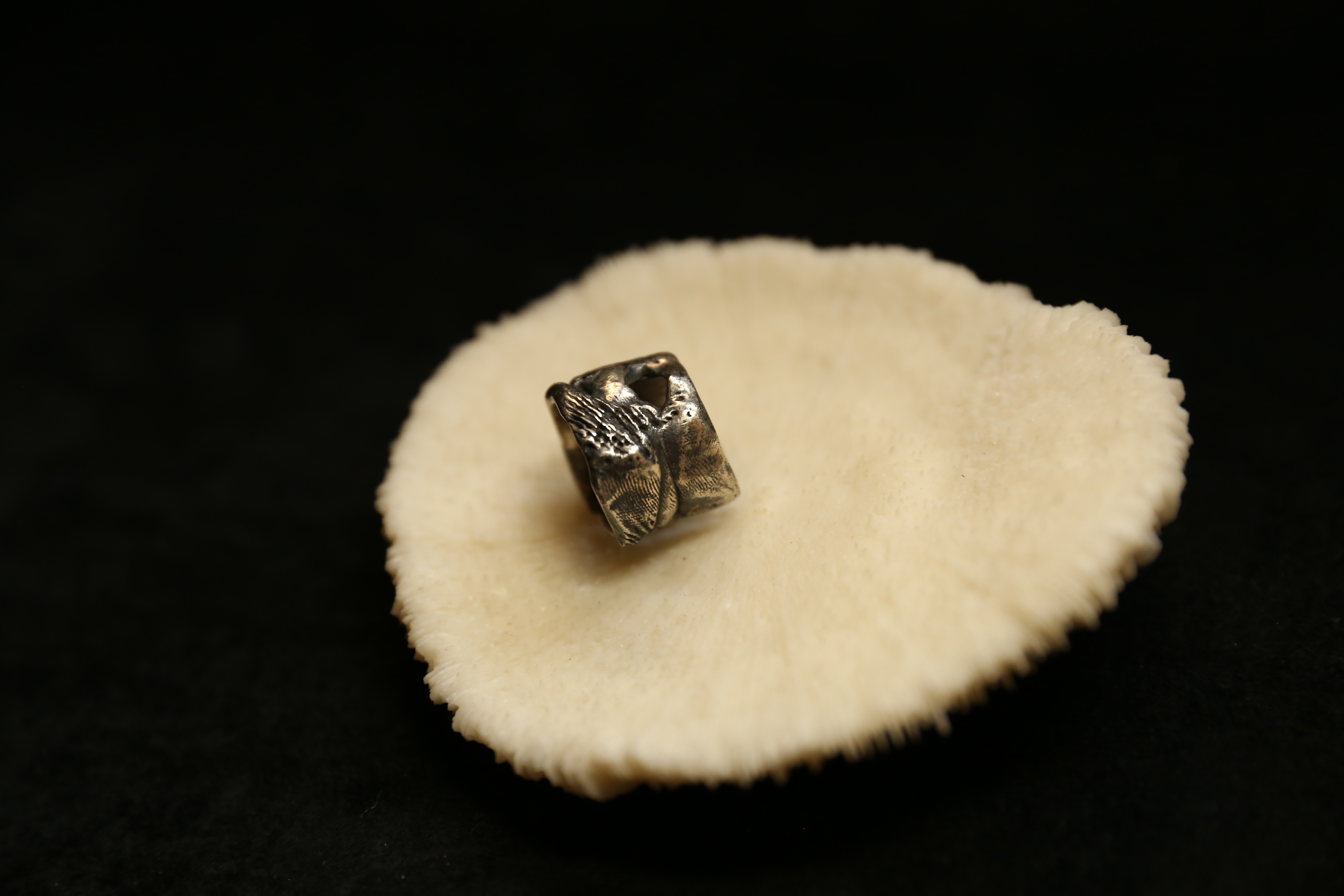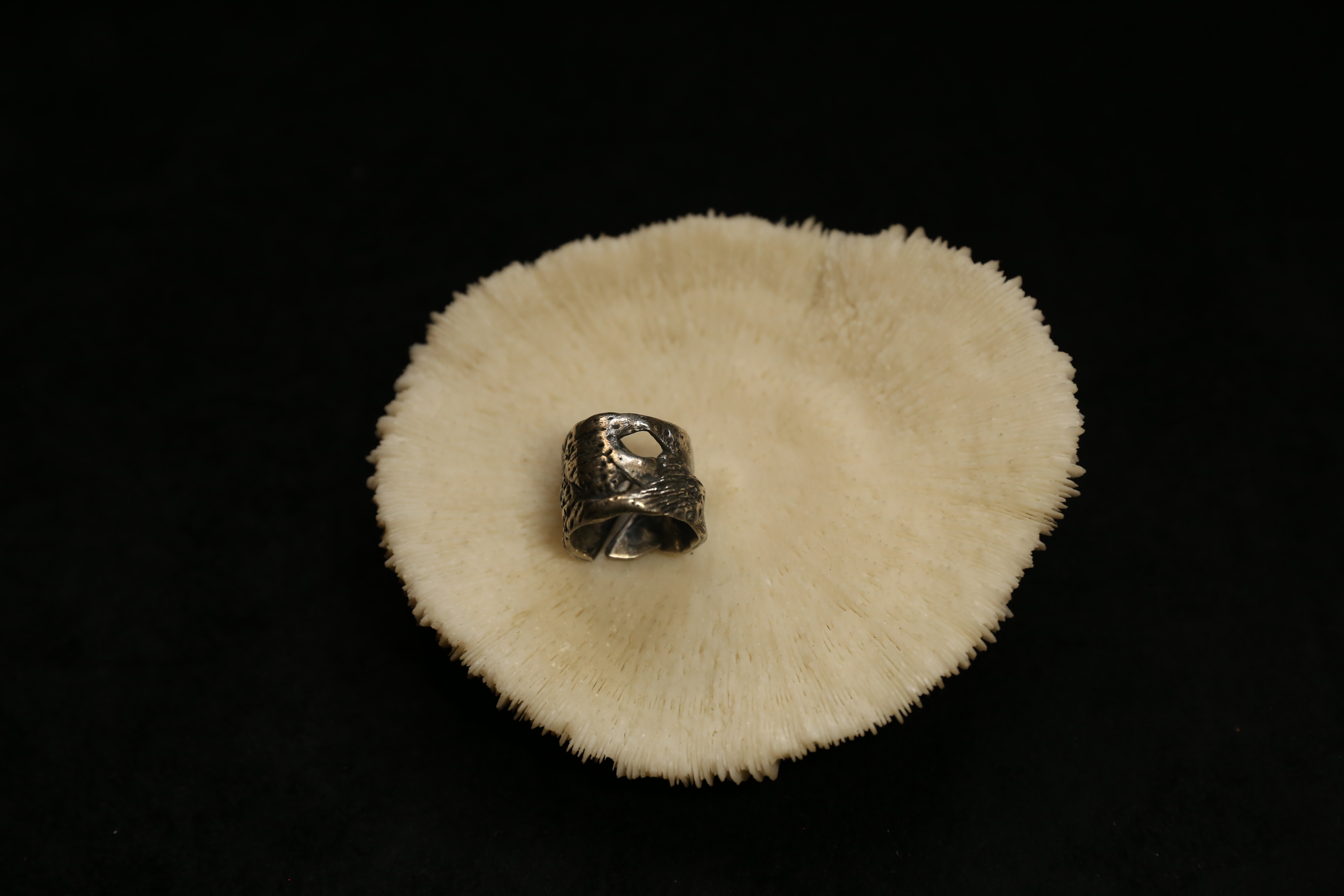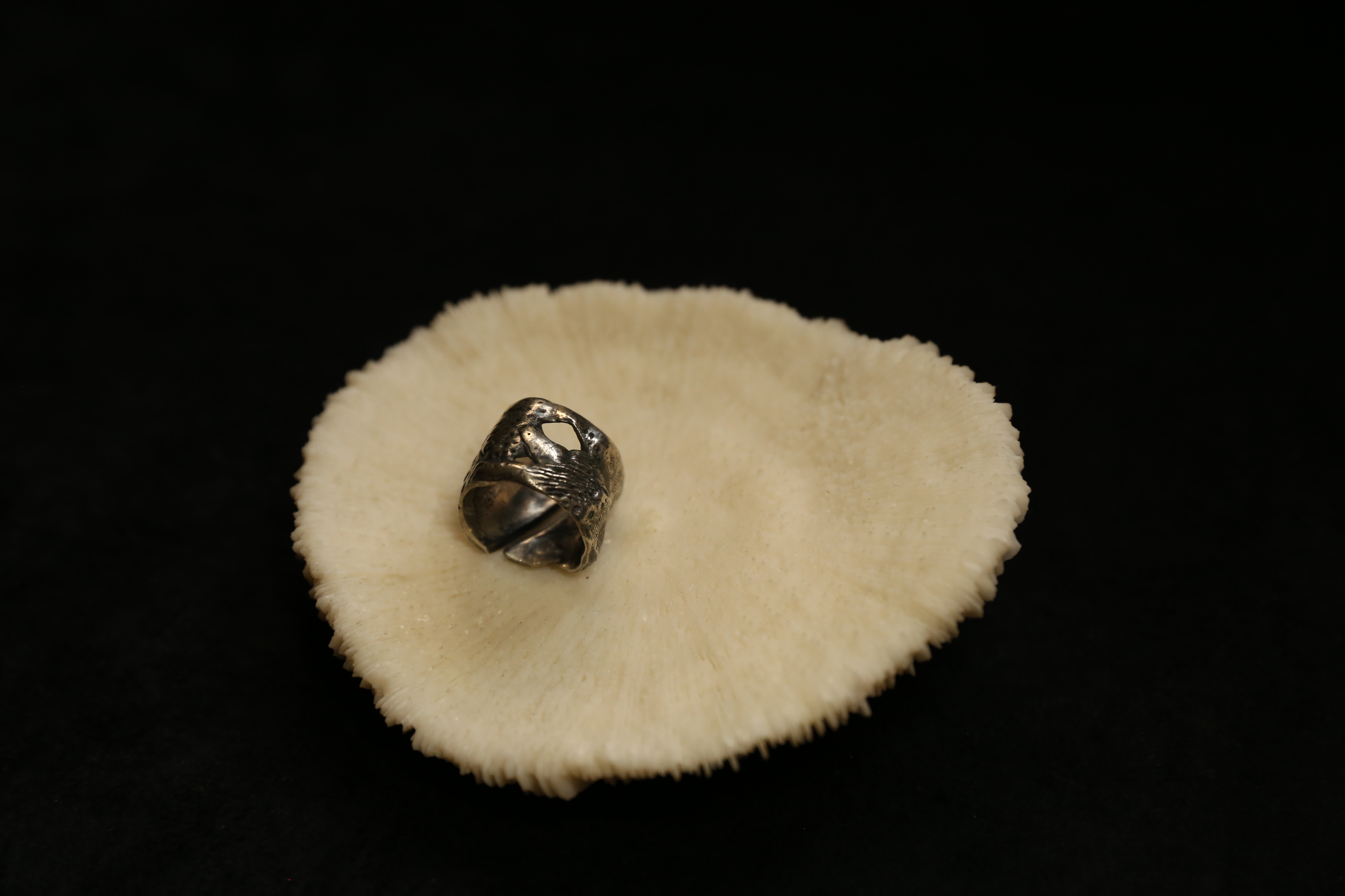 925银做旧手工珊瑚肌理戒指