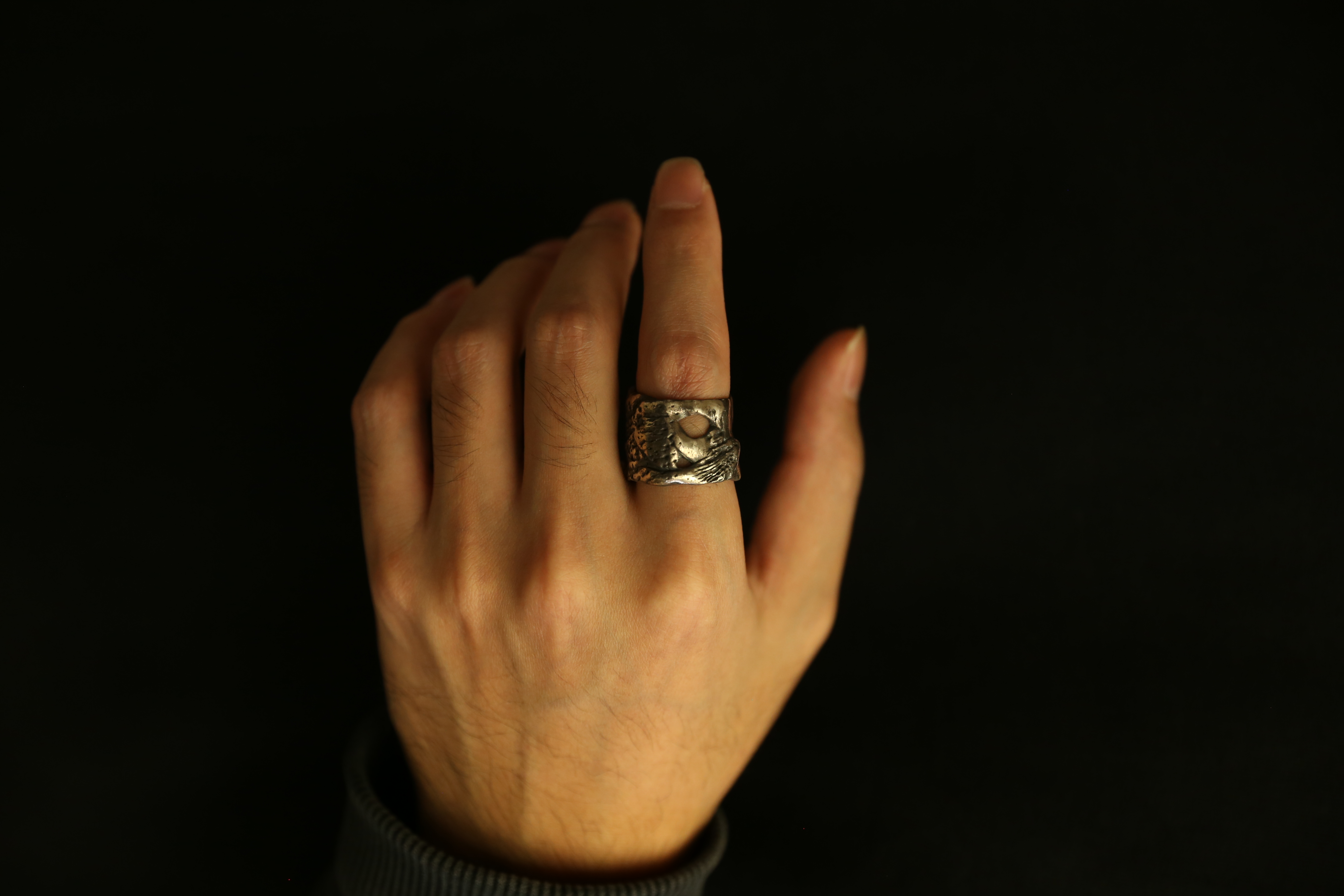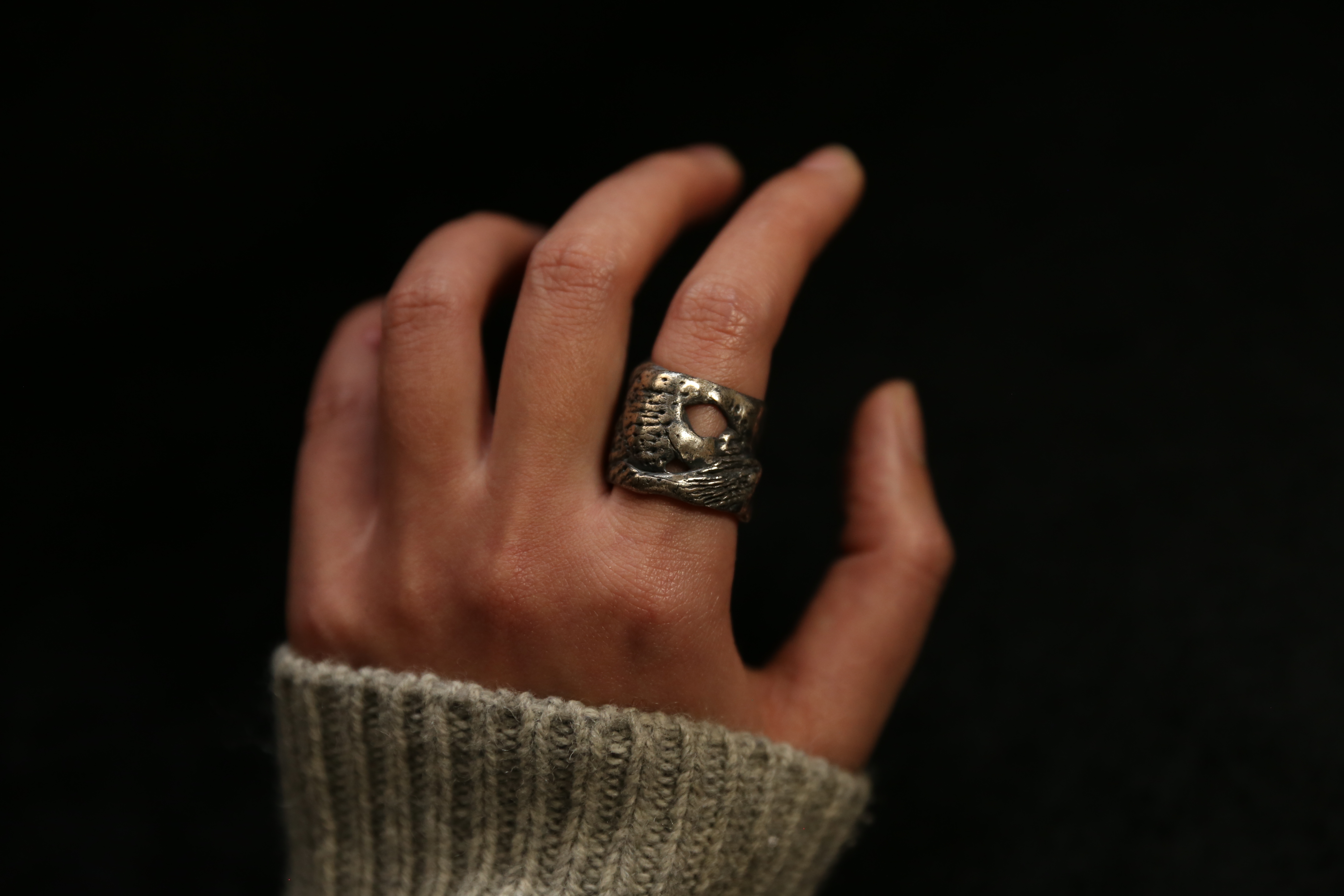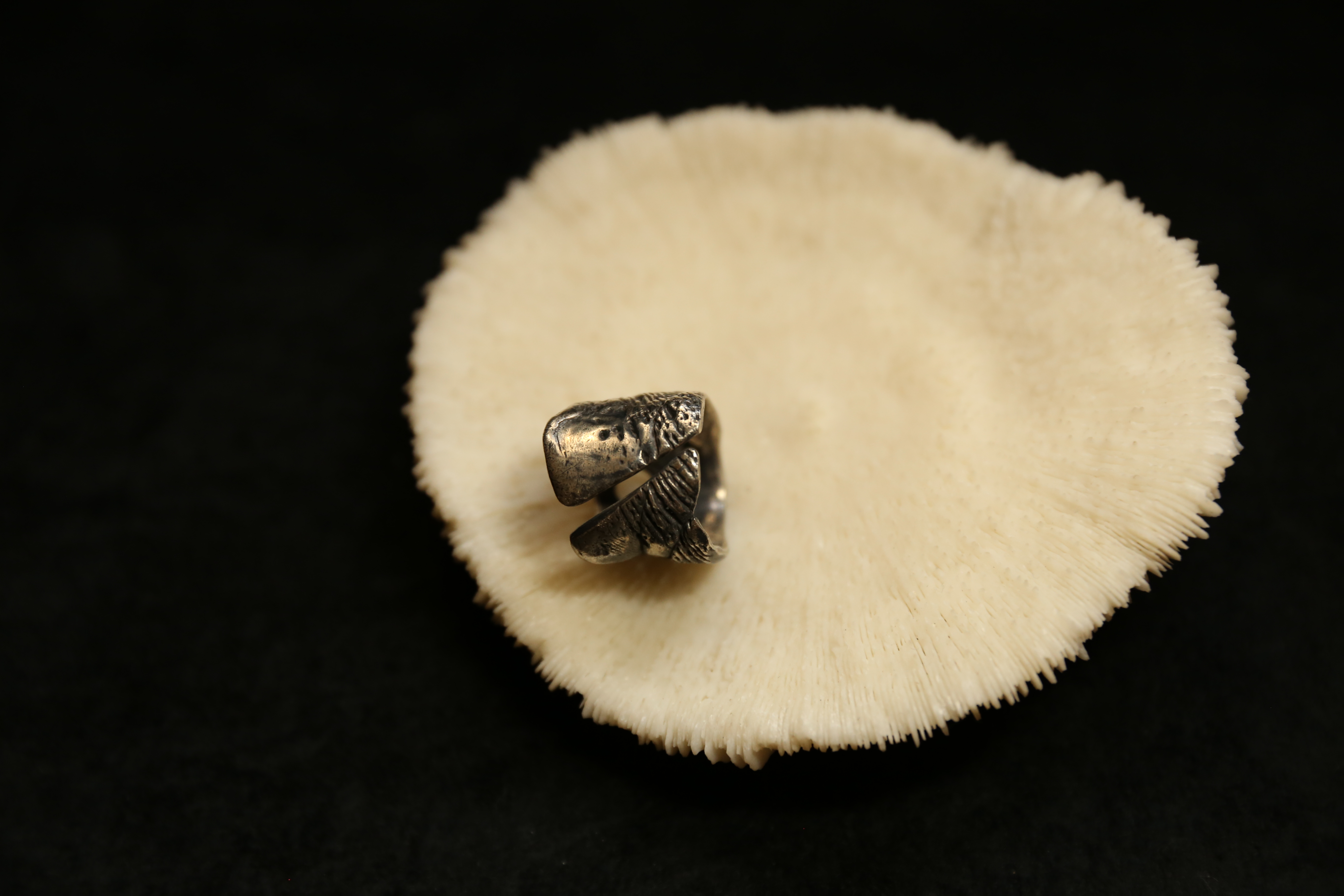 925银做旧手工珊瑚肌理戒指