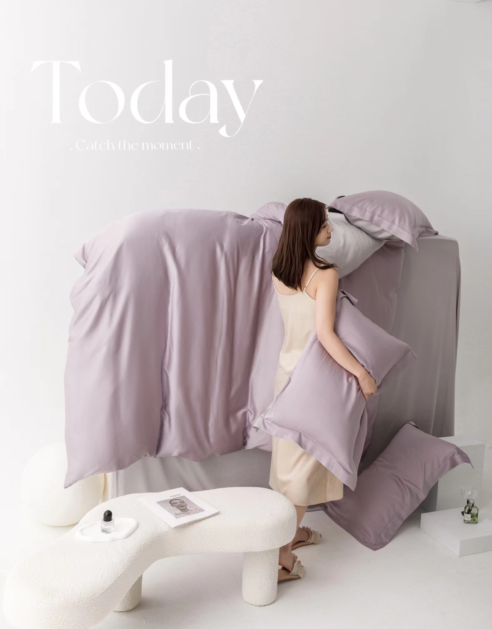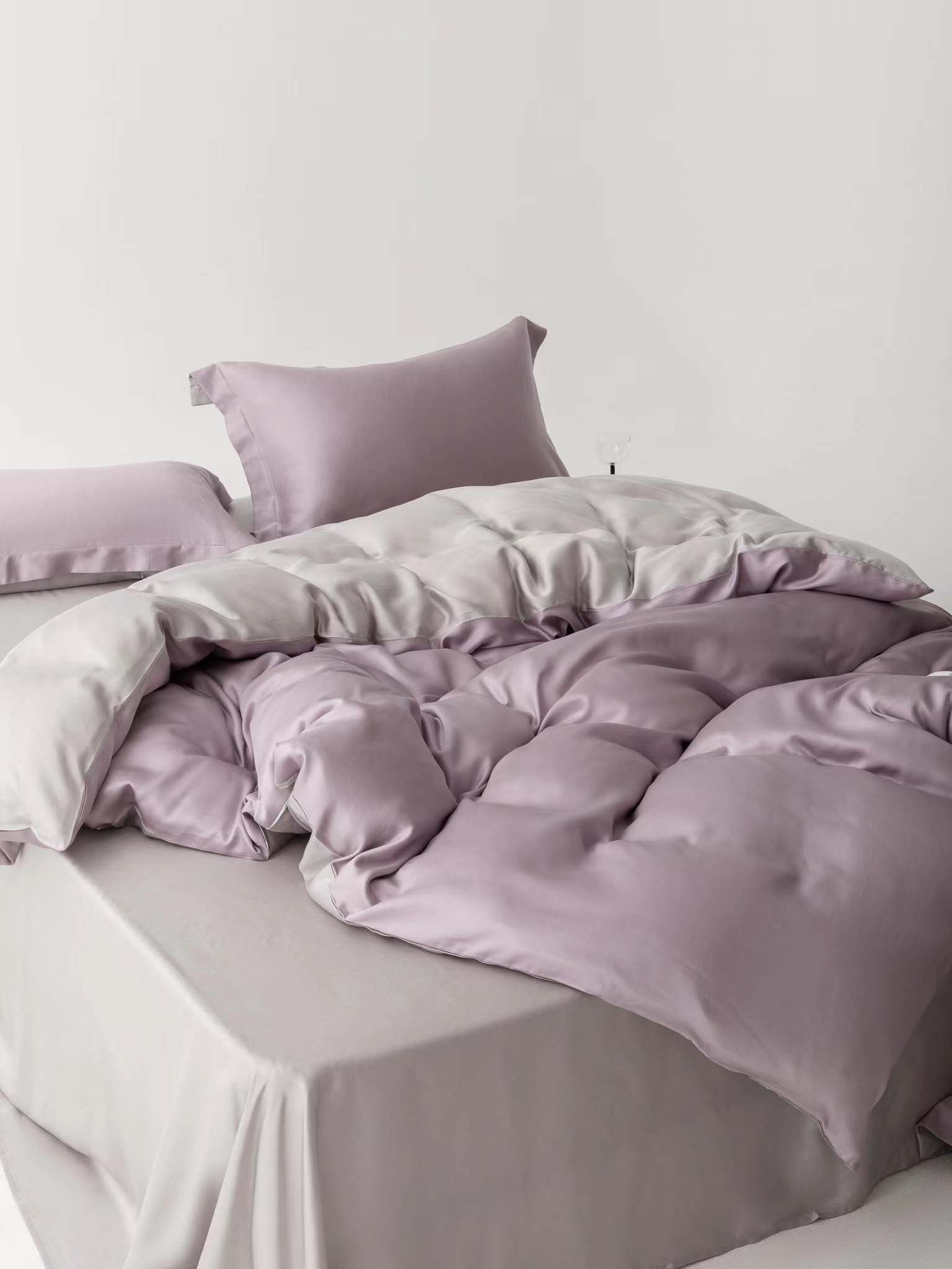 利路米夏季莱赛尔柔滑凉爽60S纯色天丝四件套丁香紫