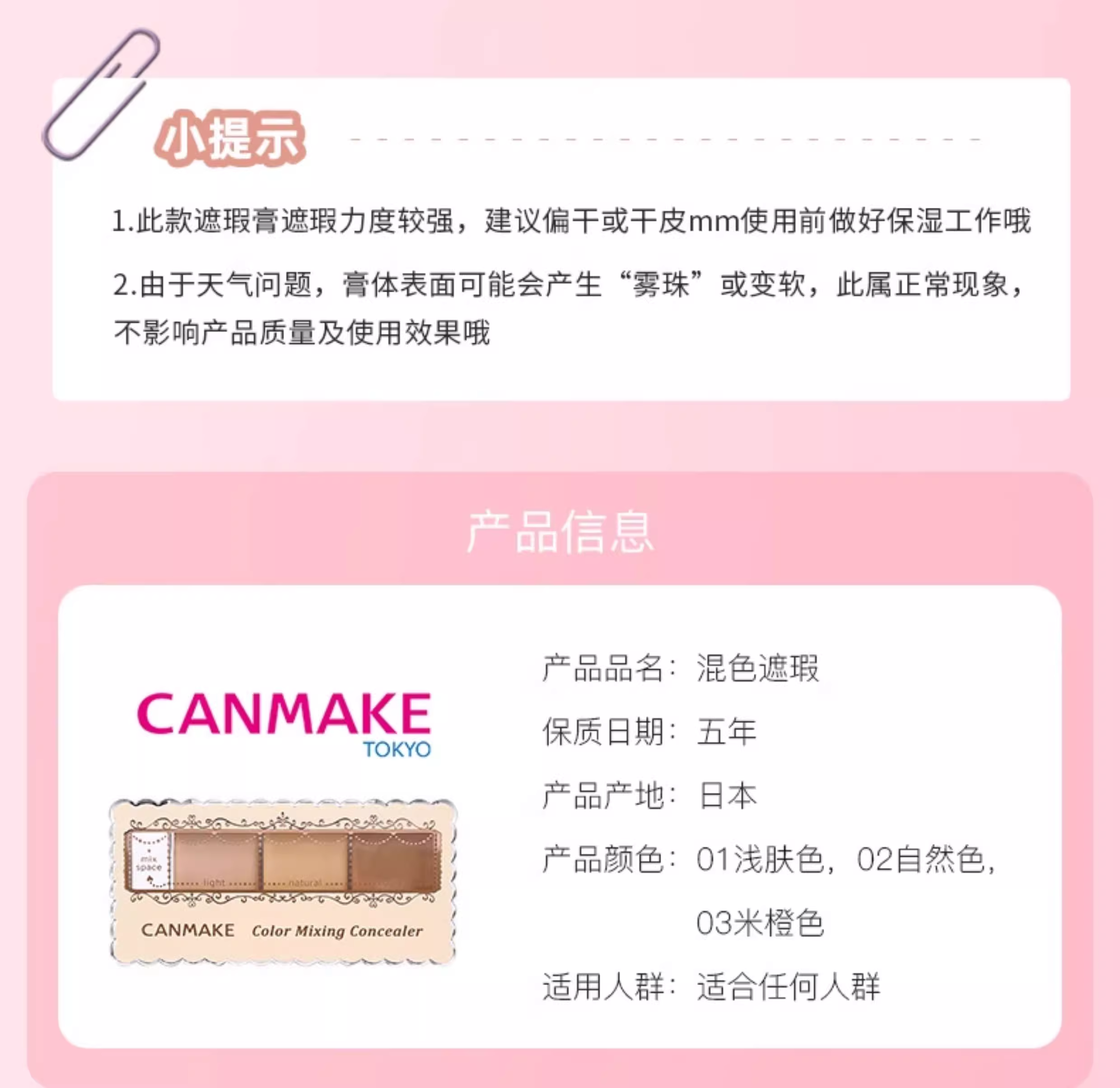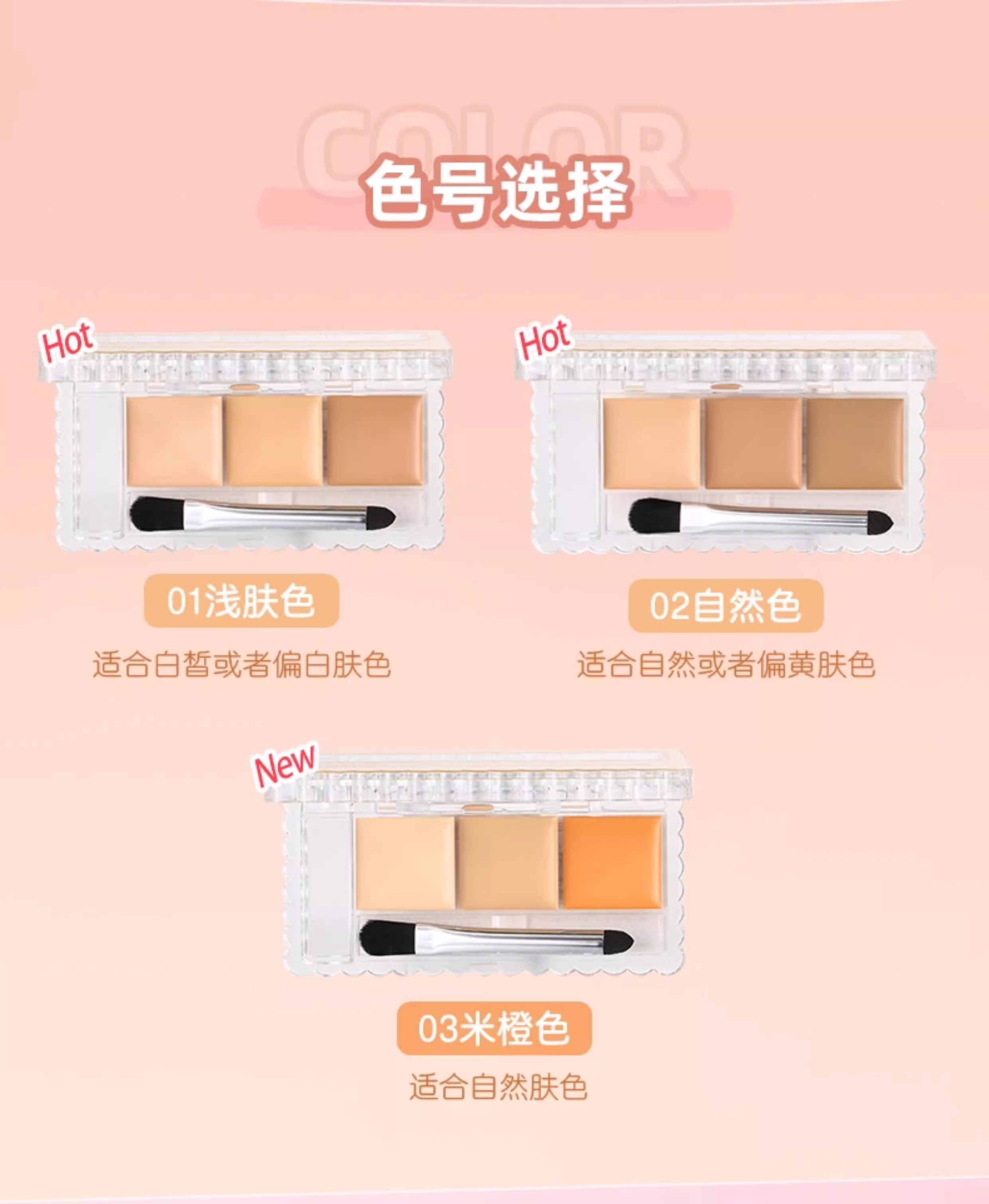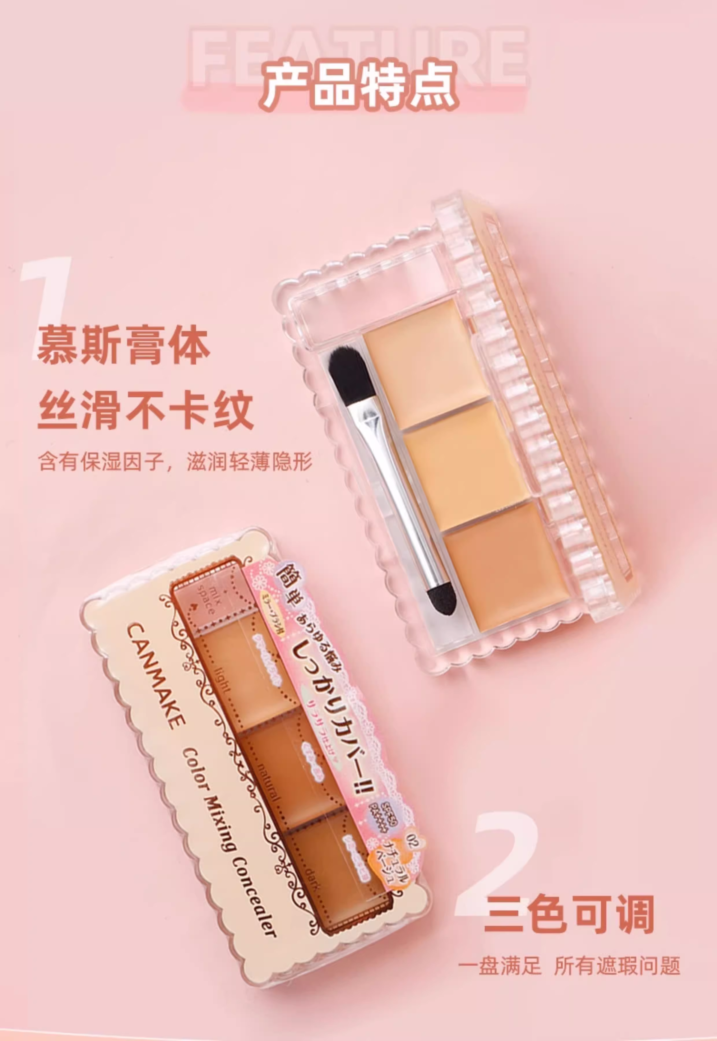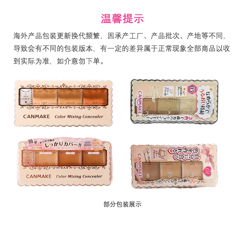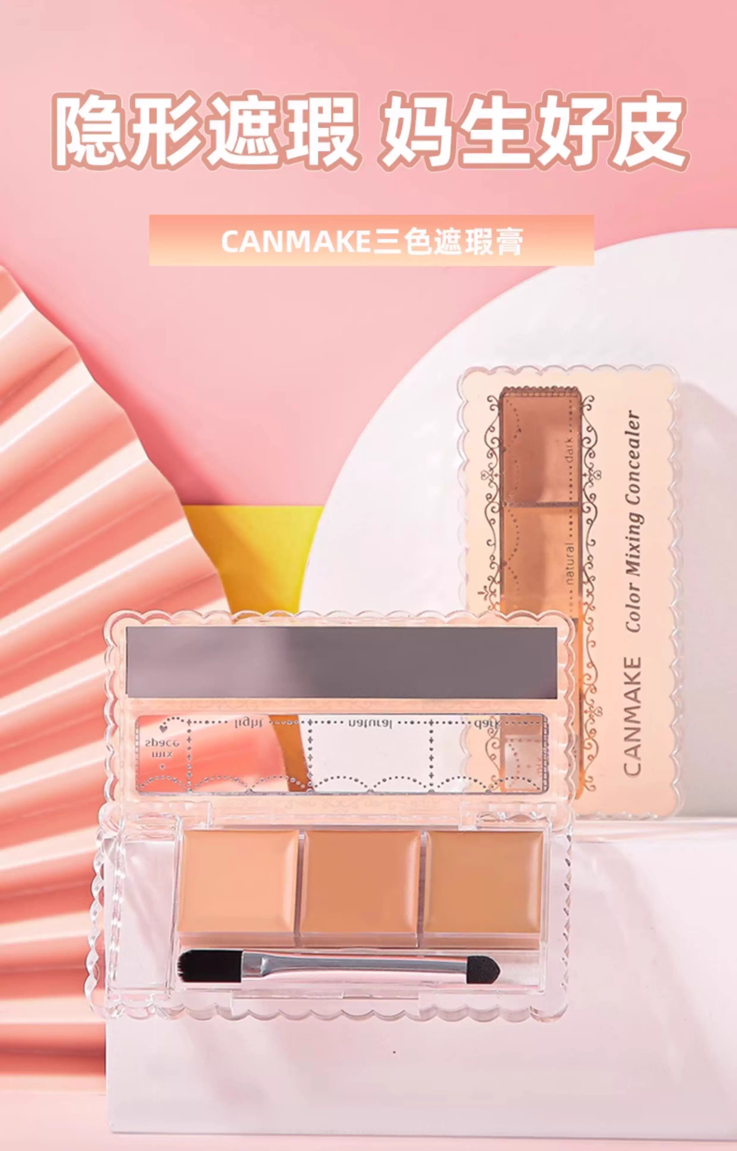 CANMAKE井田遮瑕膏遮斑点黑眼圈痘印01/02/03提亮三色遮瑕盘