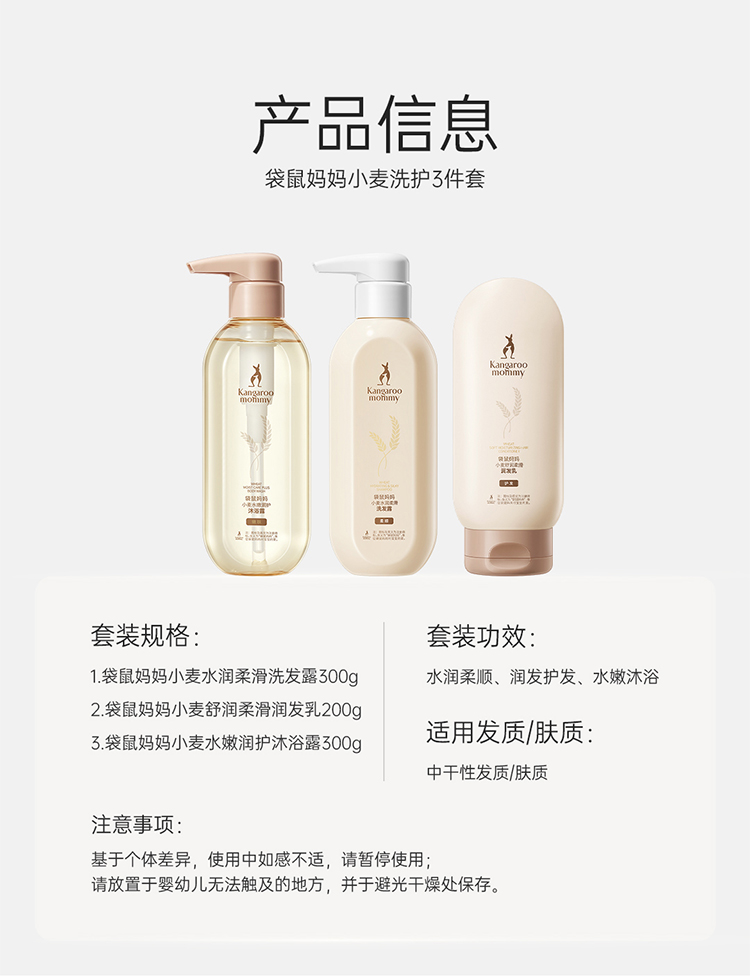 【小麦洗护套装】洗护沐精细护理 柔顺/控油/去屑洗护3件套