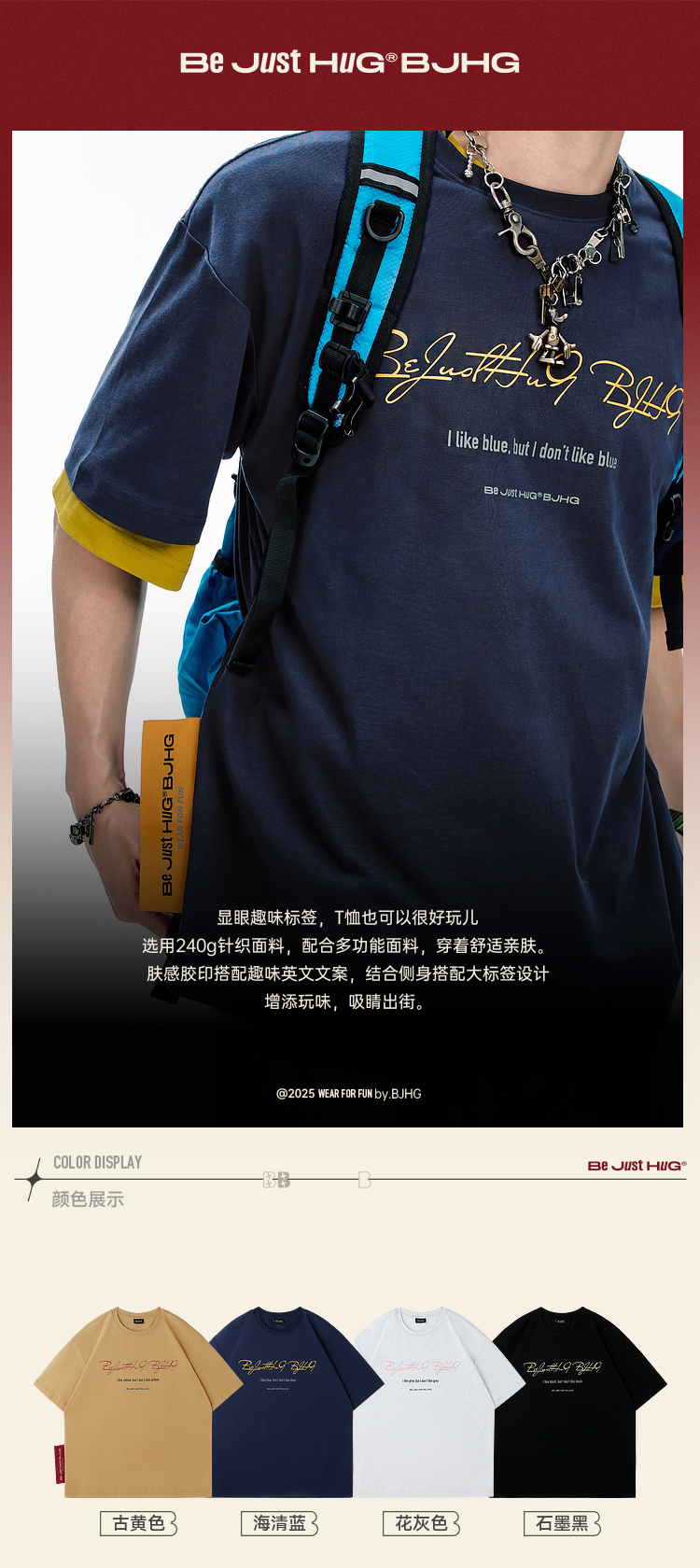 BJHG不计后果 撞色大标短袖t恤男夏季防晒速干凉感抗菌功能性半袖