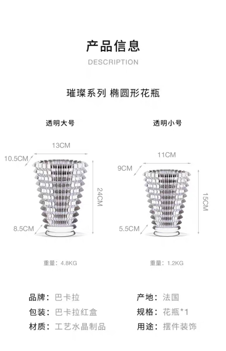 Baccarat巴卡拉EYE璀璨系列花瓶小号大号椭圆形花瓶