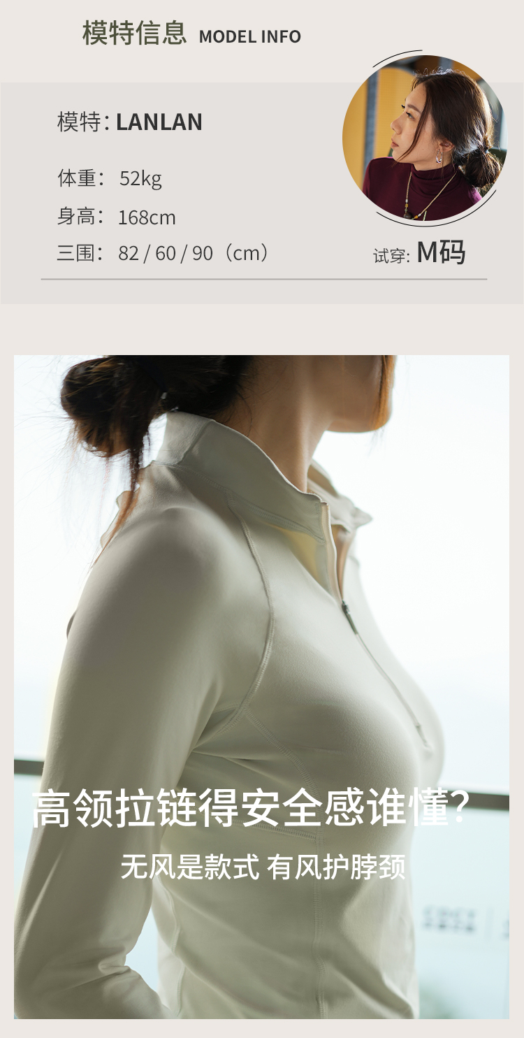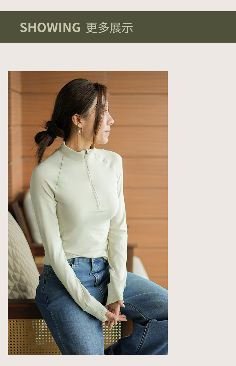 L RECNAVA 半拉链高领套头运动休闲上衣 插肩袖长袖