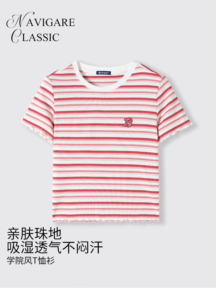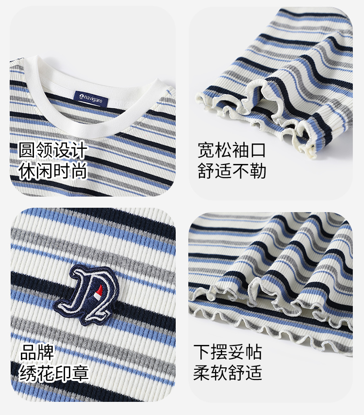 【纳维凯尔】【120-165】Navigare意大利小帆船女童条纹短袖T恤