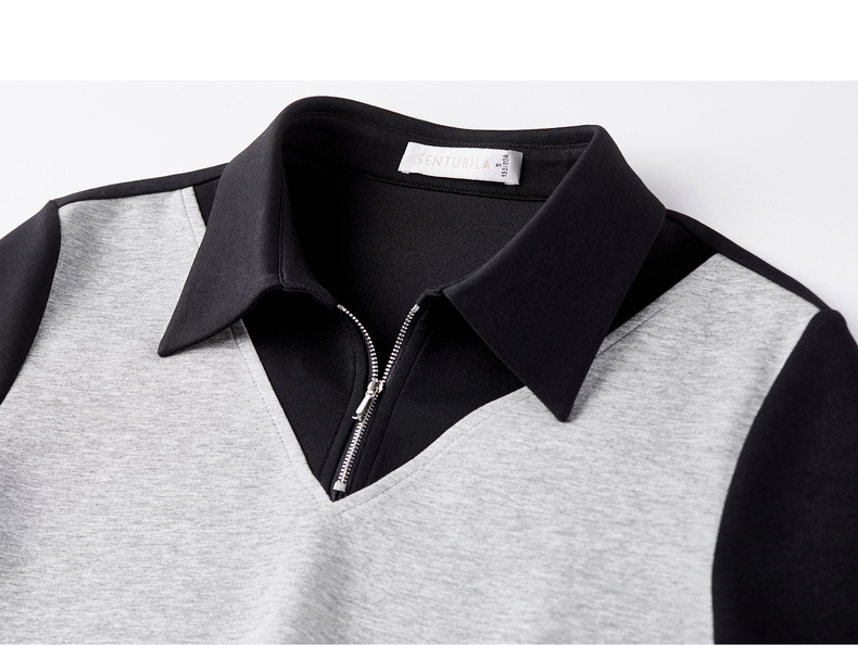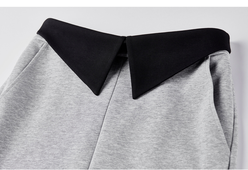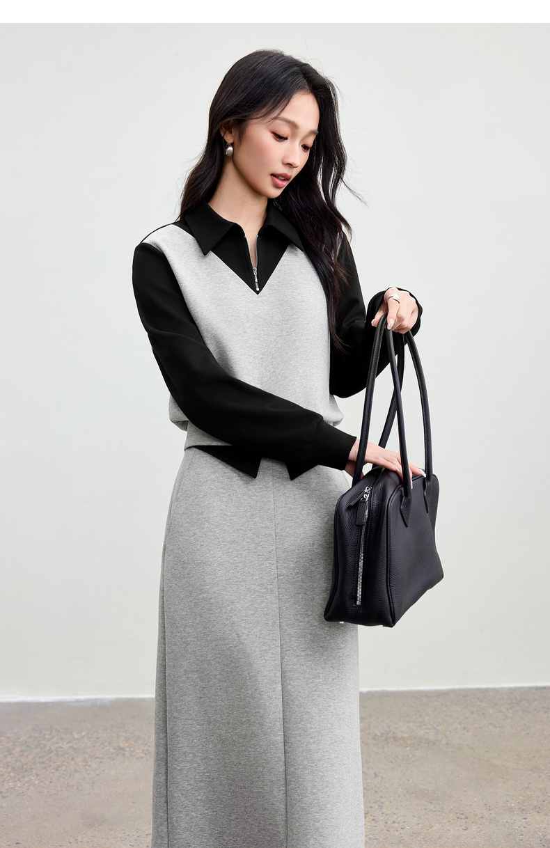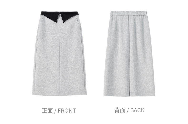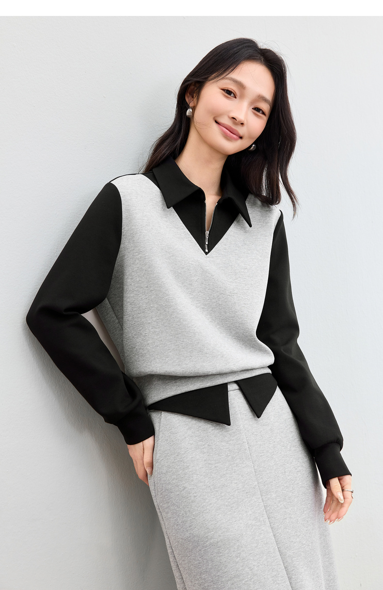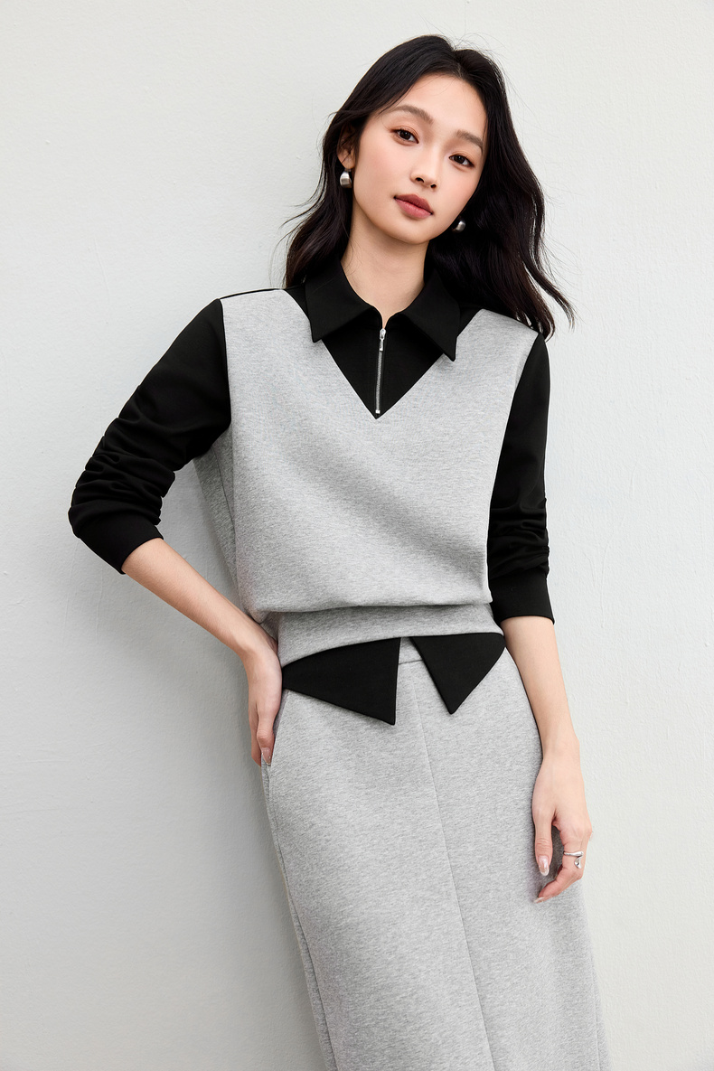 【内购】【免搭配套装】撞色假两件翻领针织卫衣&松紧腰下摆开叉A字半身裙-153ZH2416