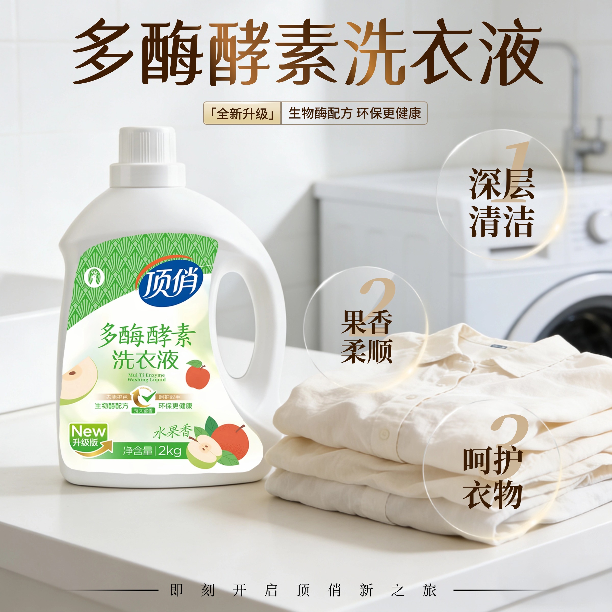自营(顶俏)-水果香多酶酵素洗衣液 2Kg/瓶*6 足足24斤