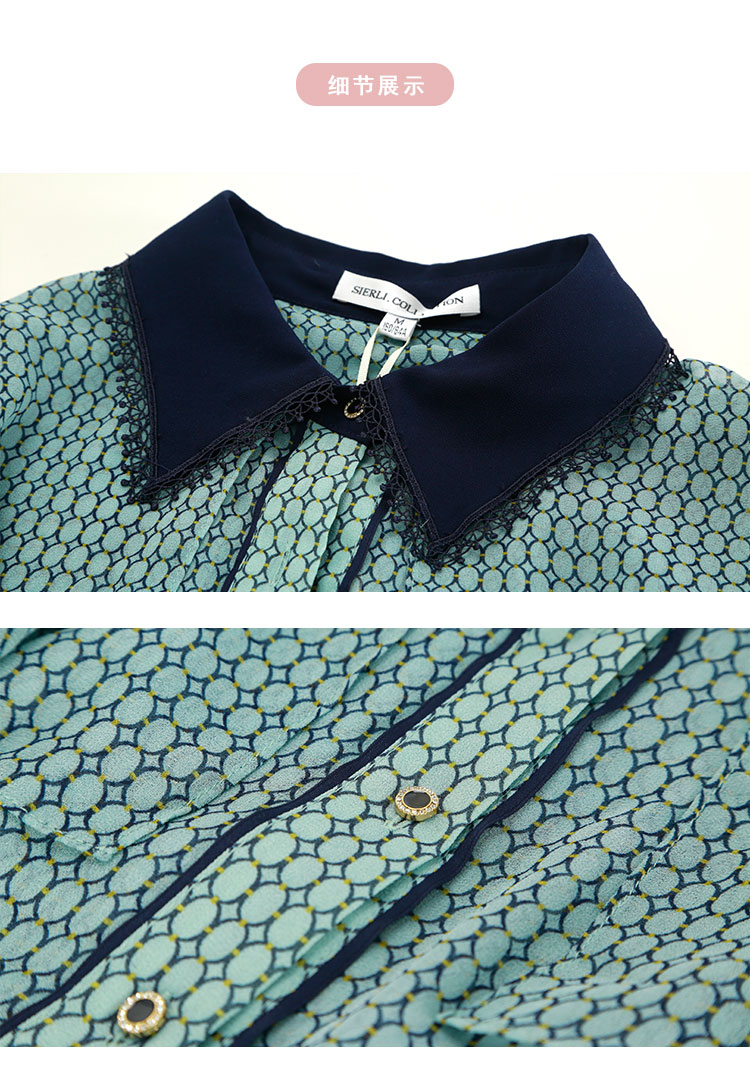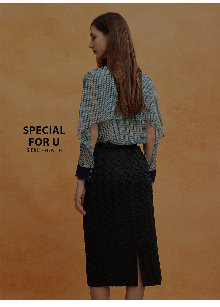 QE22A斯尔丽瑟俪2021年秋季上新撞色蝙蝠袖碎花衬衫