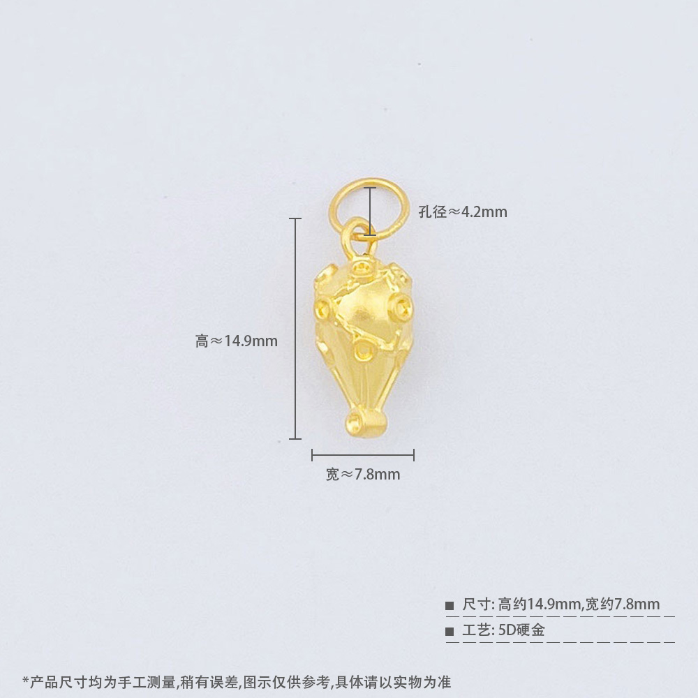 【限时7.5折】【定价黄金】足金 #微硬金 无氰5D硬金空心热气球手串挂件Diy手串配件(U5DSC00175)(预售产品下单后不退款不退货不换货不补差价)