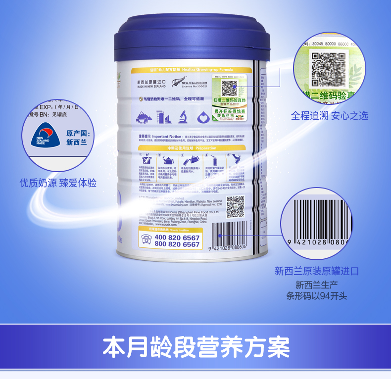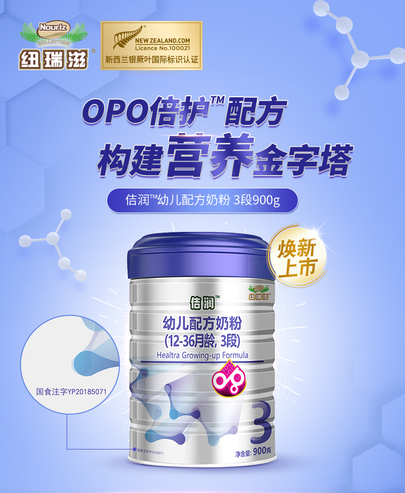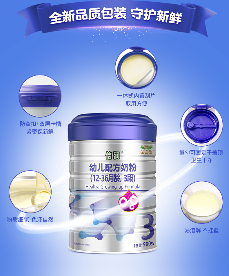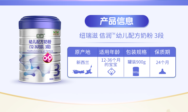 纽瑞滋佶润幼儿配方佶润奶粉3段900克*5罐+赠1罐(12-36个月 新西兰原罐进口)含乳铁蛋白【纽瑞滋】