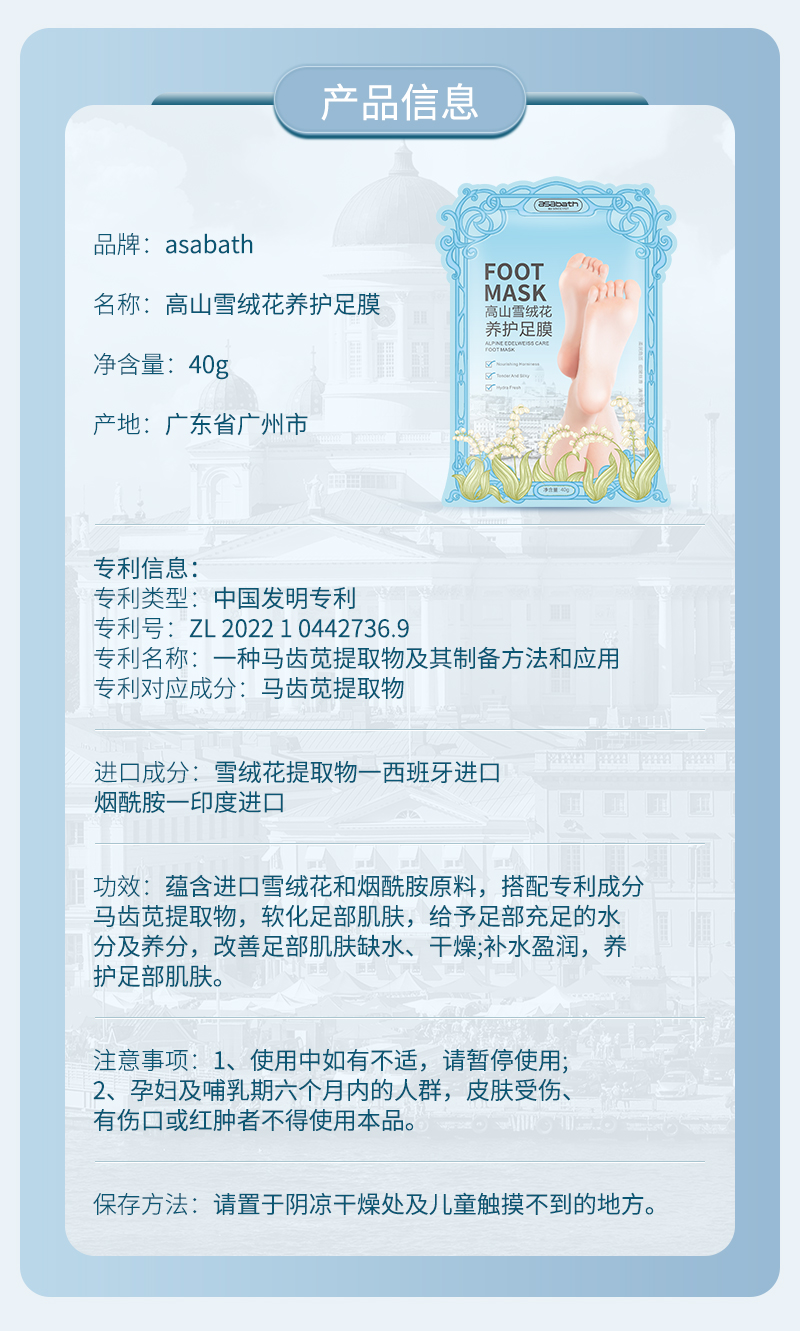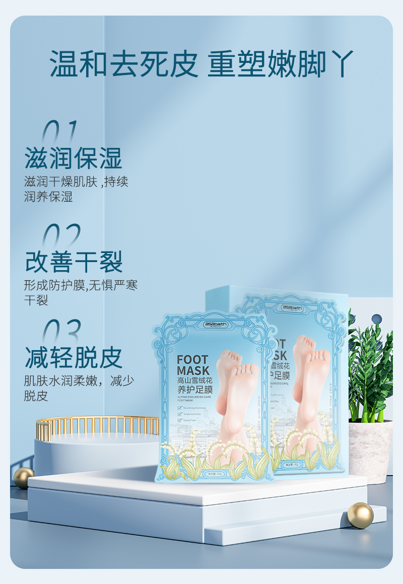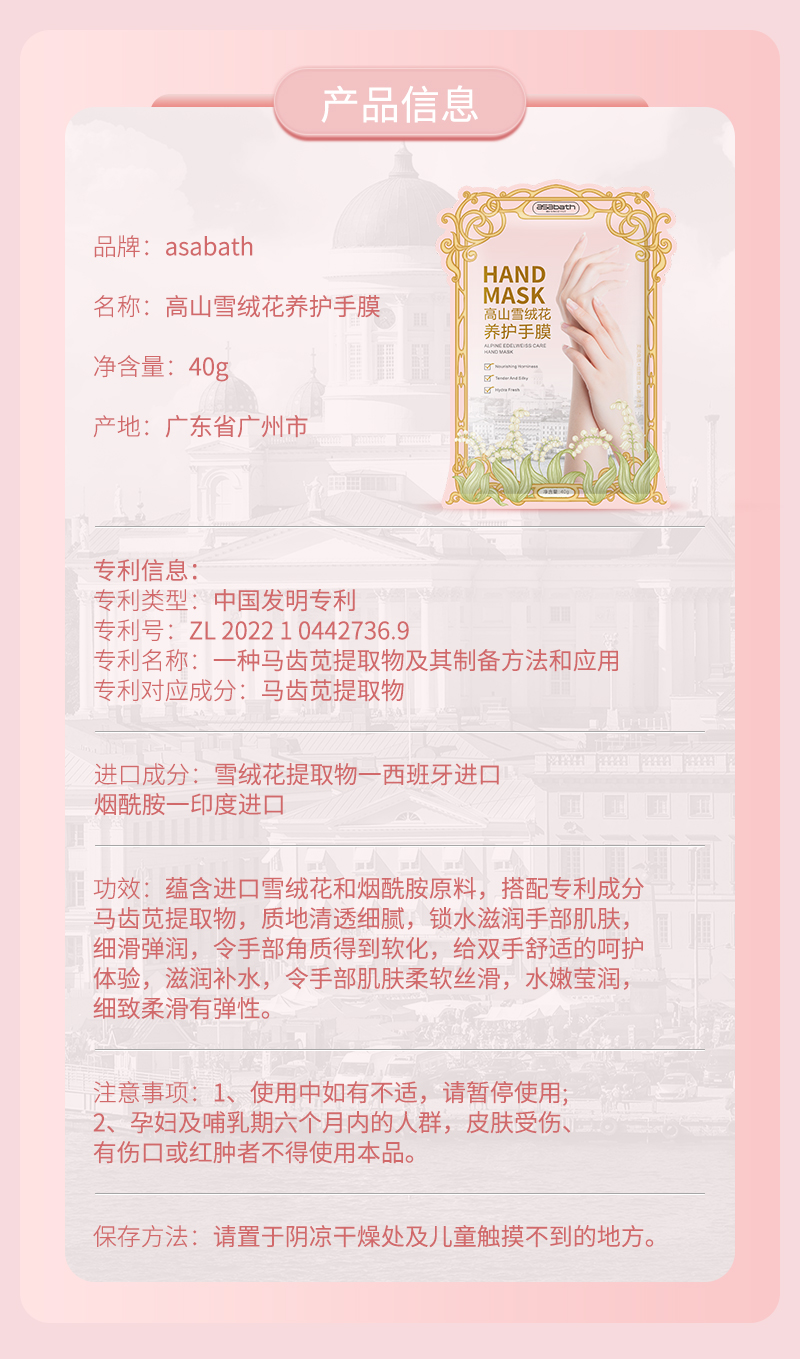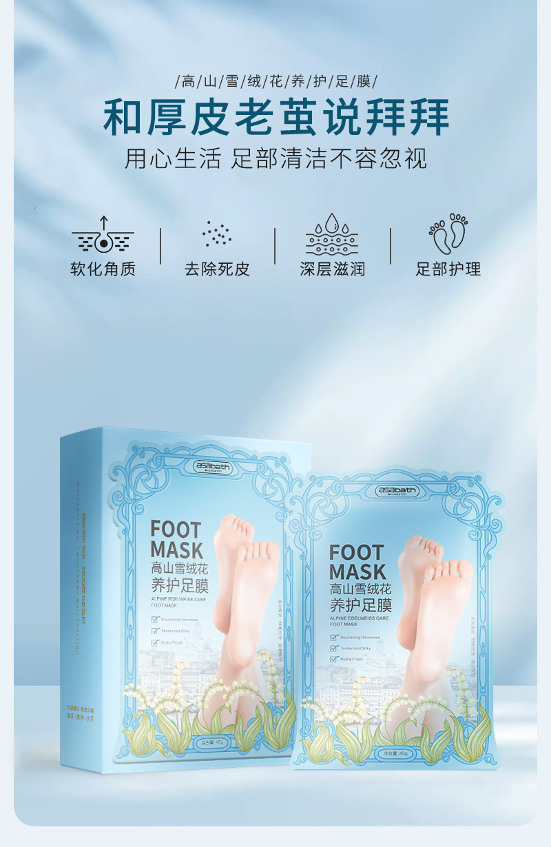 asabth 高山雪绒花水润嫩肤手膜足膜 保湿补水细嫩去死皮 1对/袋