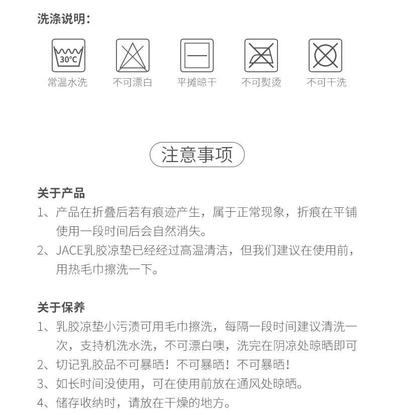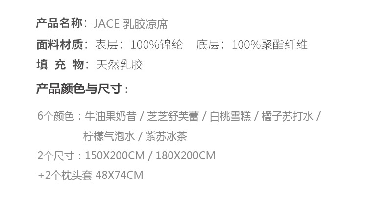 【JACE 乳胶凉席】90%乳胶 99%持久双层抑菌 婴幼儿A类标准 比体温低3-5度 +2个枕头套