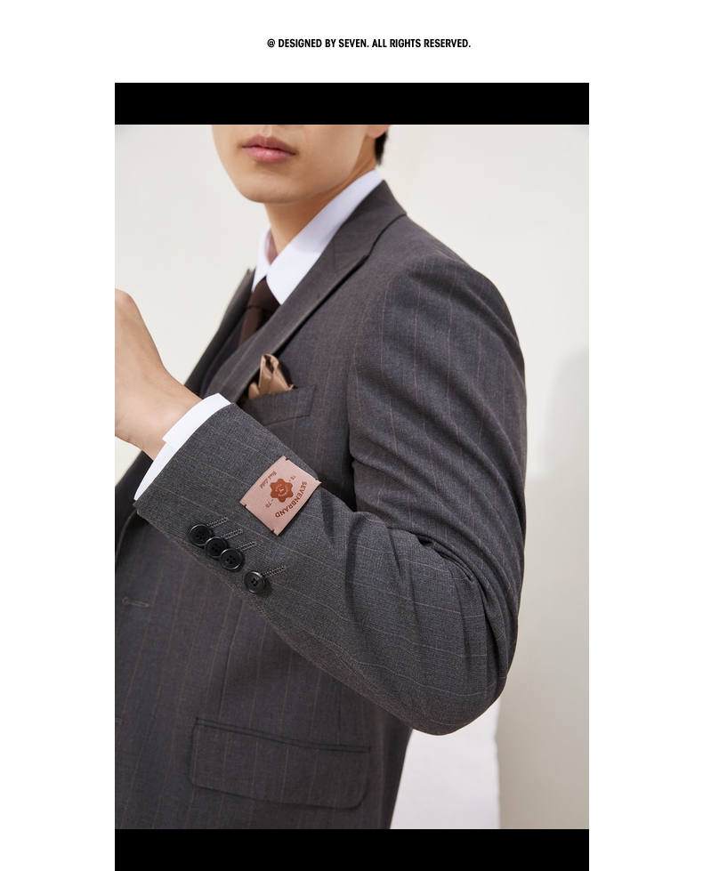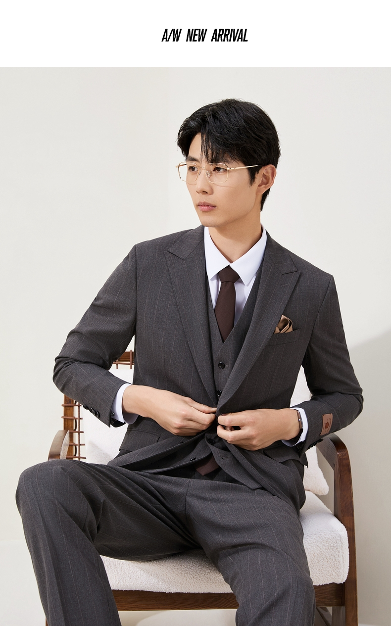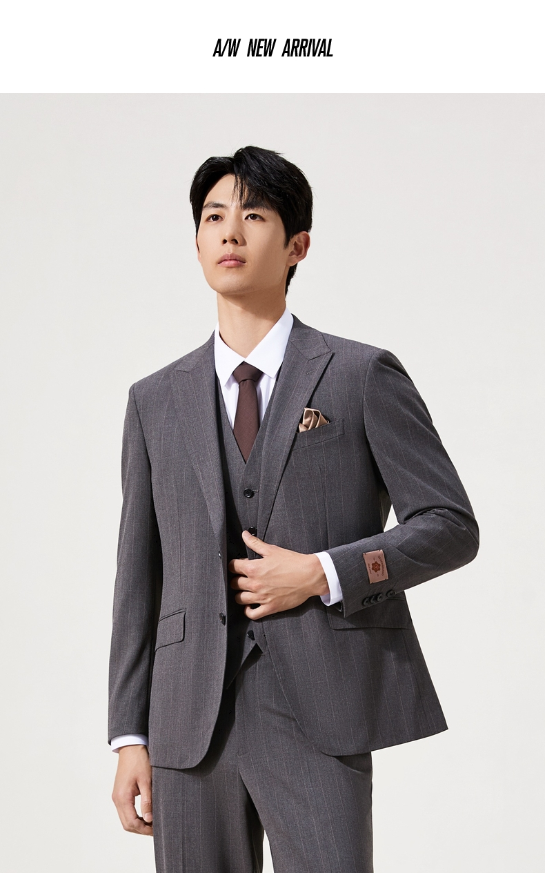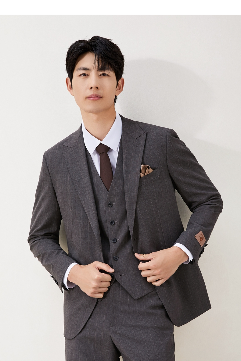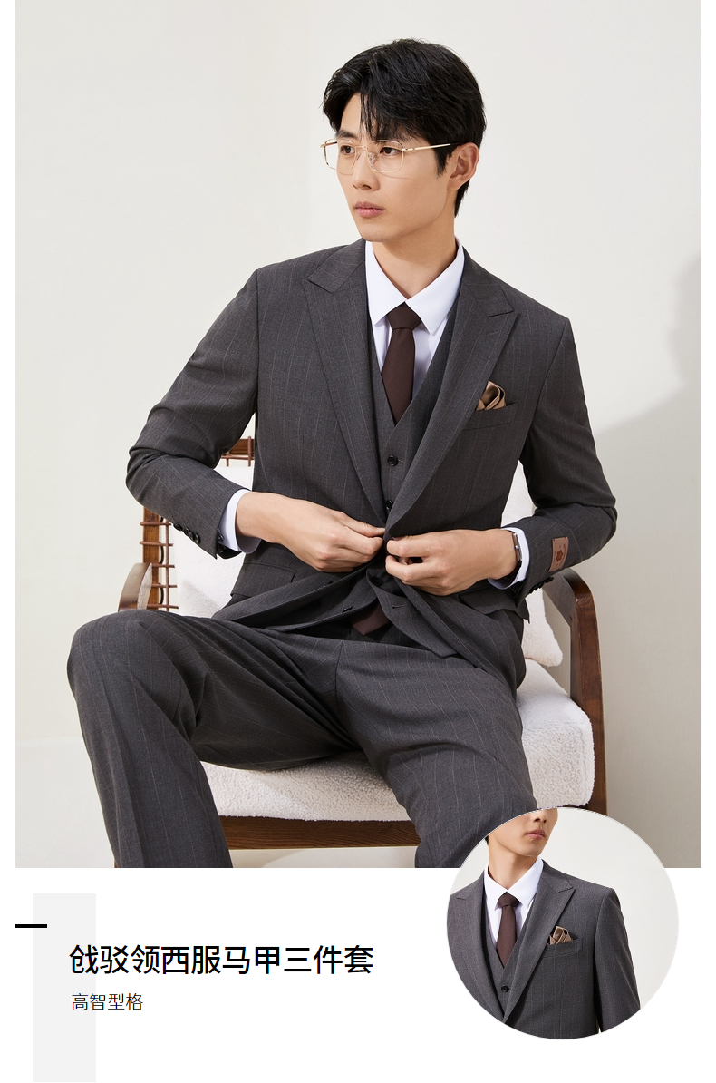 【婚礼季/复古条纹三件套西服】柒牌男装西服色纺花纱戗驳领商务绅士套装129C70090