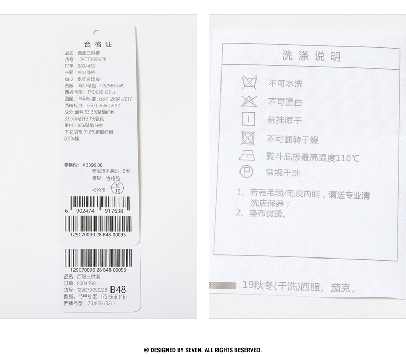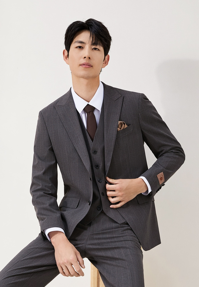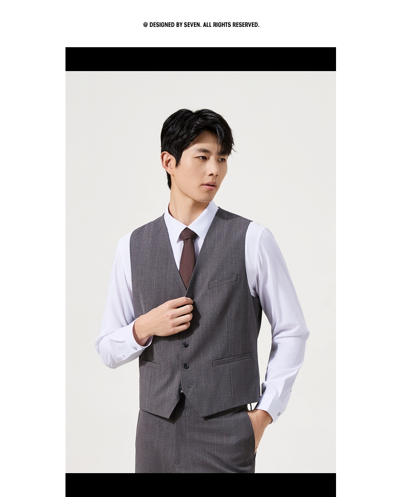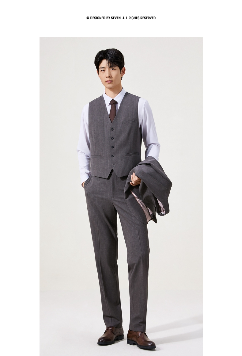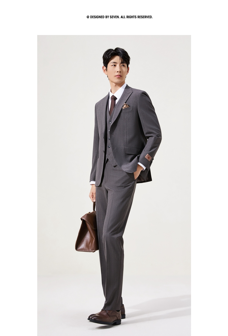 【婚礼季/复古条纹三件套西服】柒牌男装西服色纺花纱戗驳领商务绅士套装129C70090