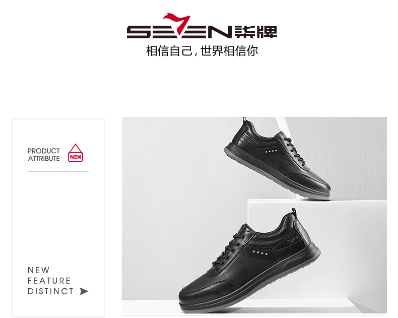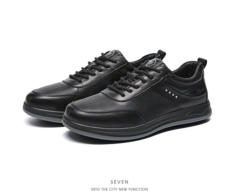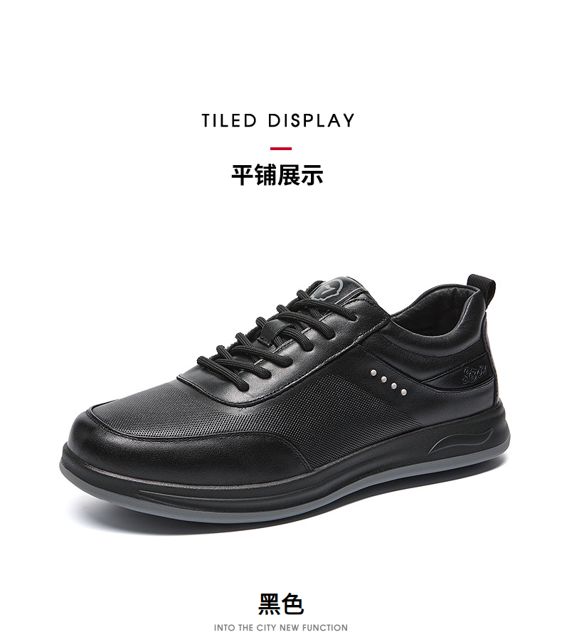 柒牌低帮休闲鞋男2025春夏新品真皮男款时尚百搭潮鞋圆头厚底男鞋128X70150