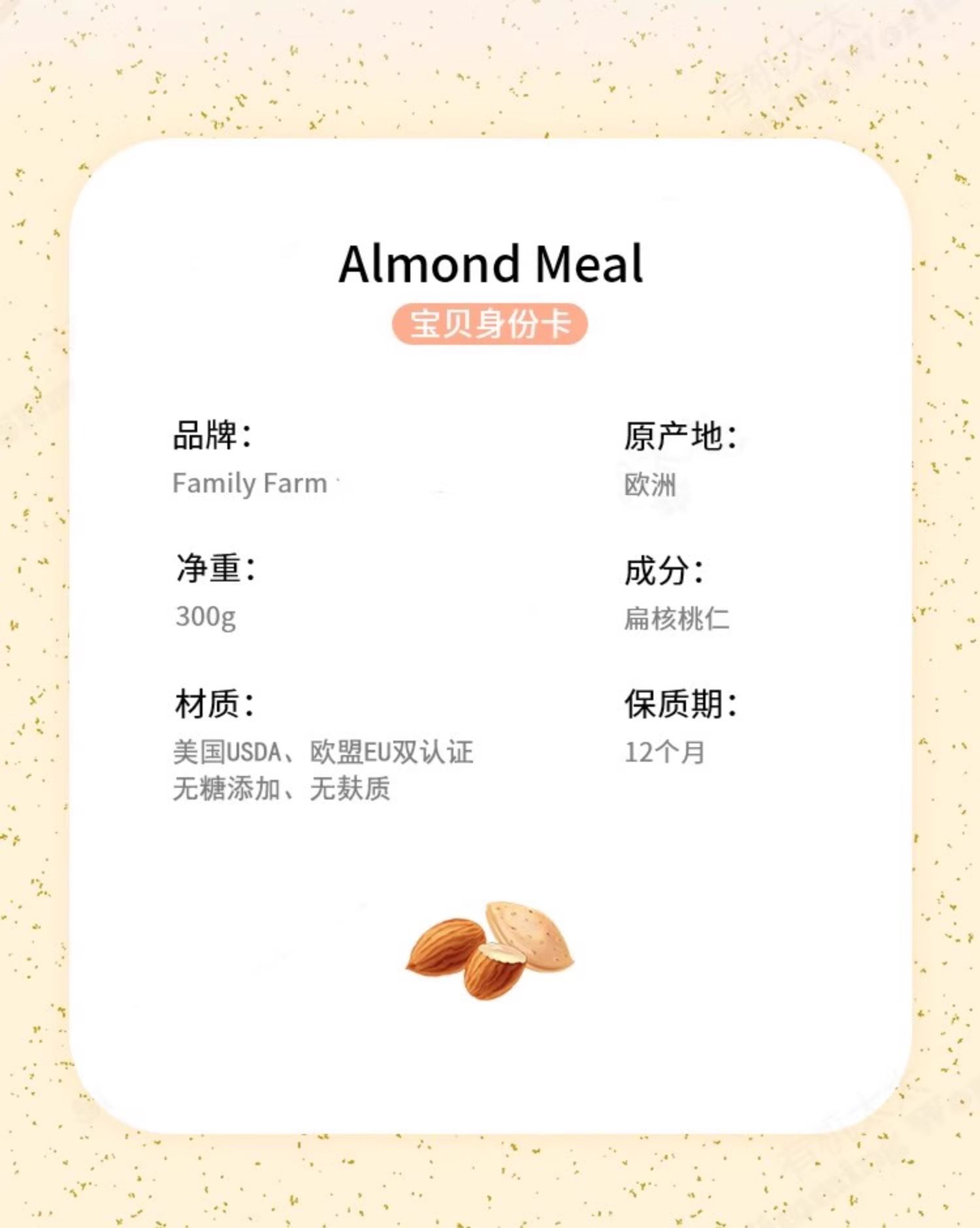Family Farm巴旦木仁粉无糖添加杏仁奶冲饮无麸质椰子面粉烘焙