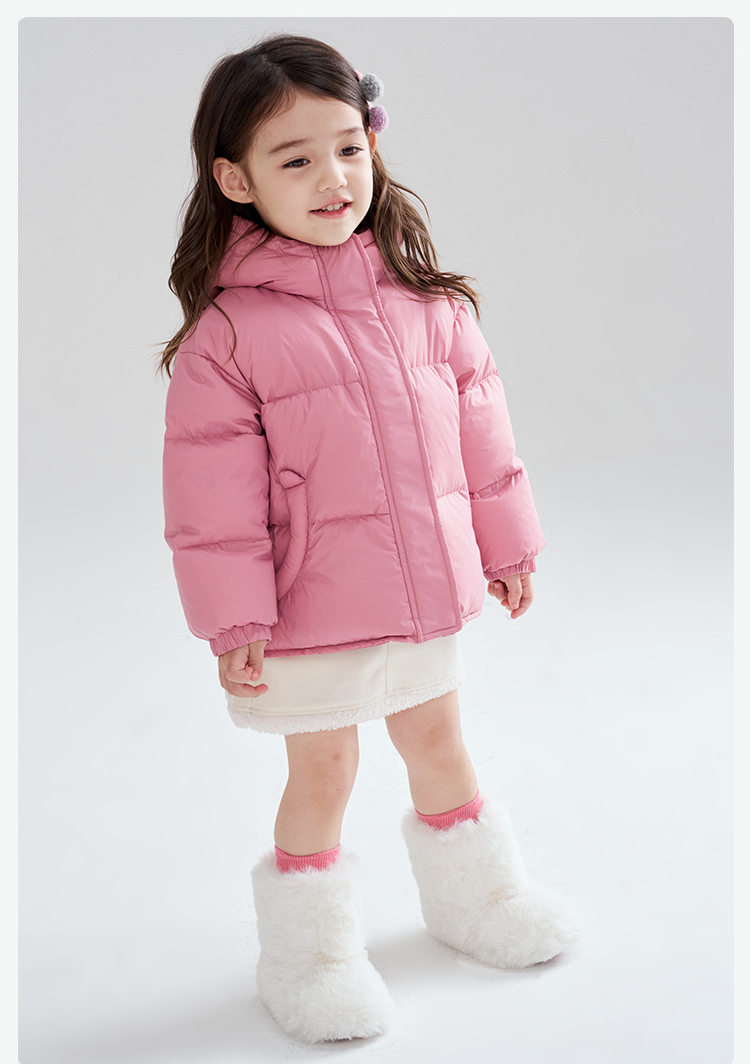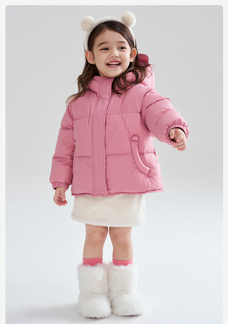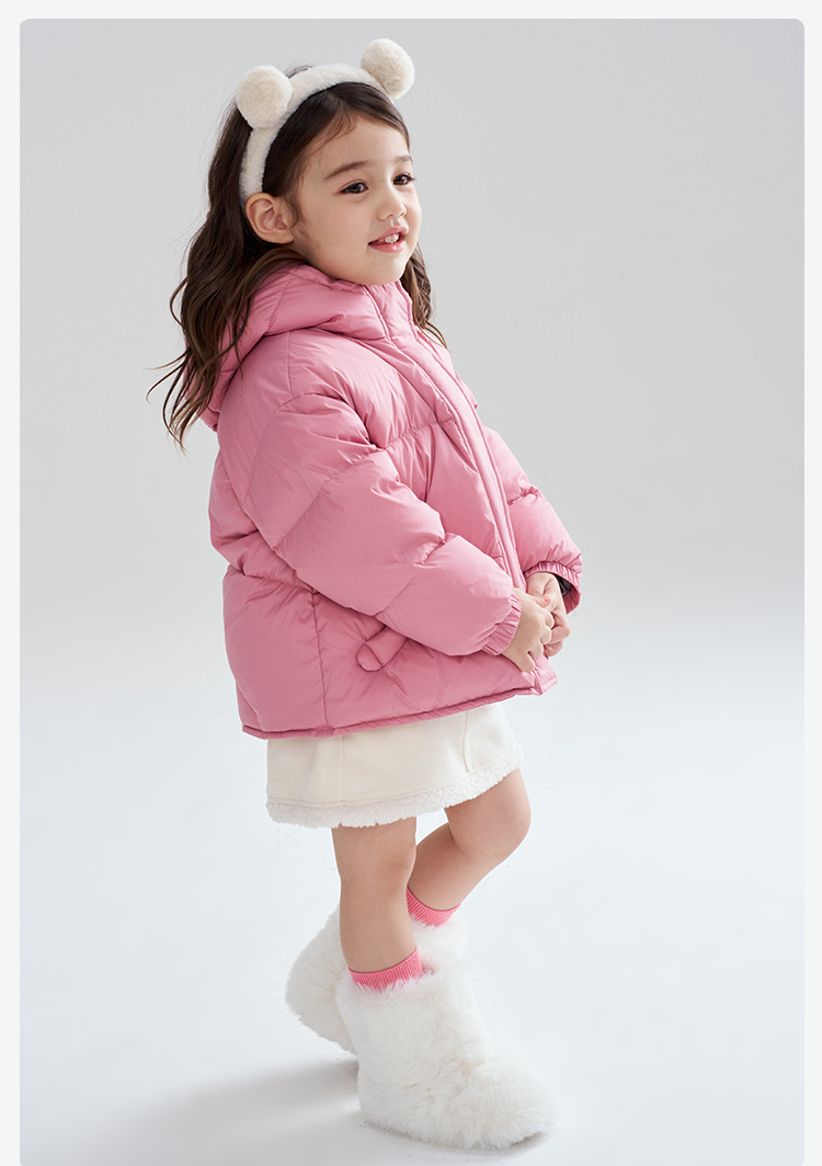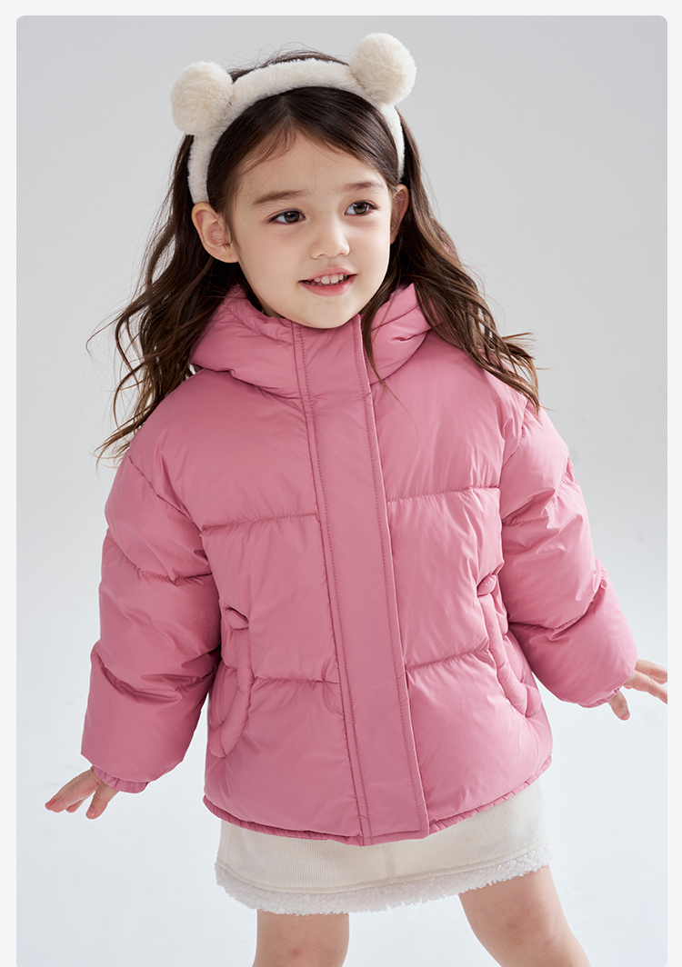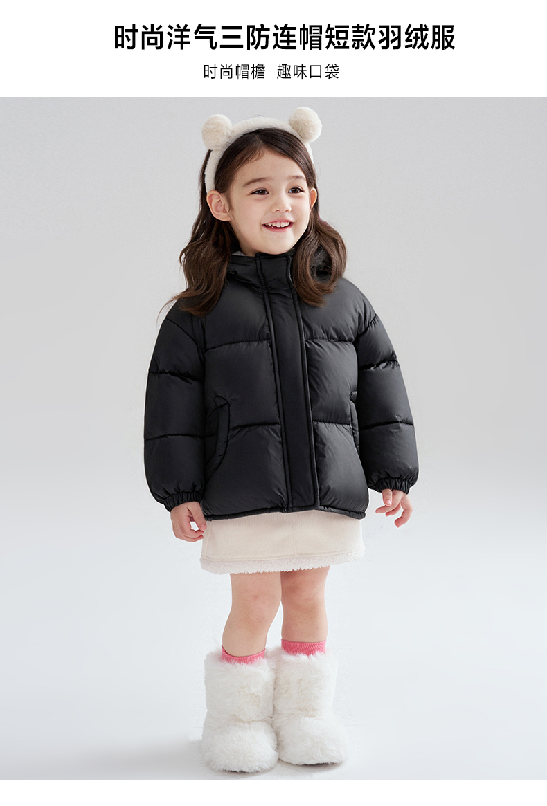 笛莎Deesha 2025冬季女童时尚洋气三防连帽短款羽绒服