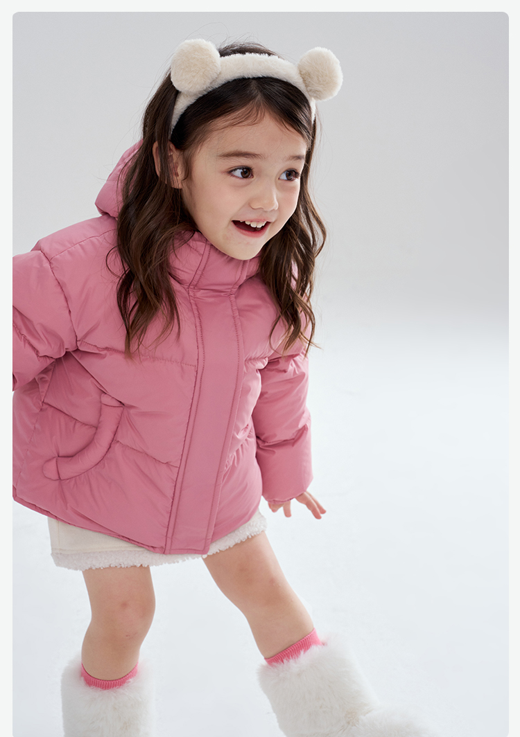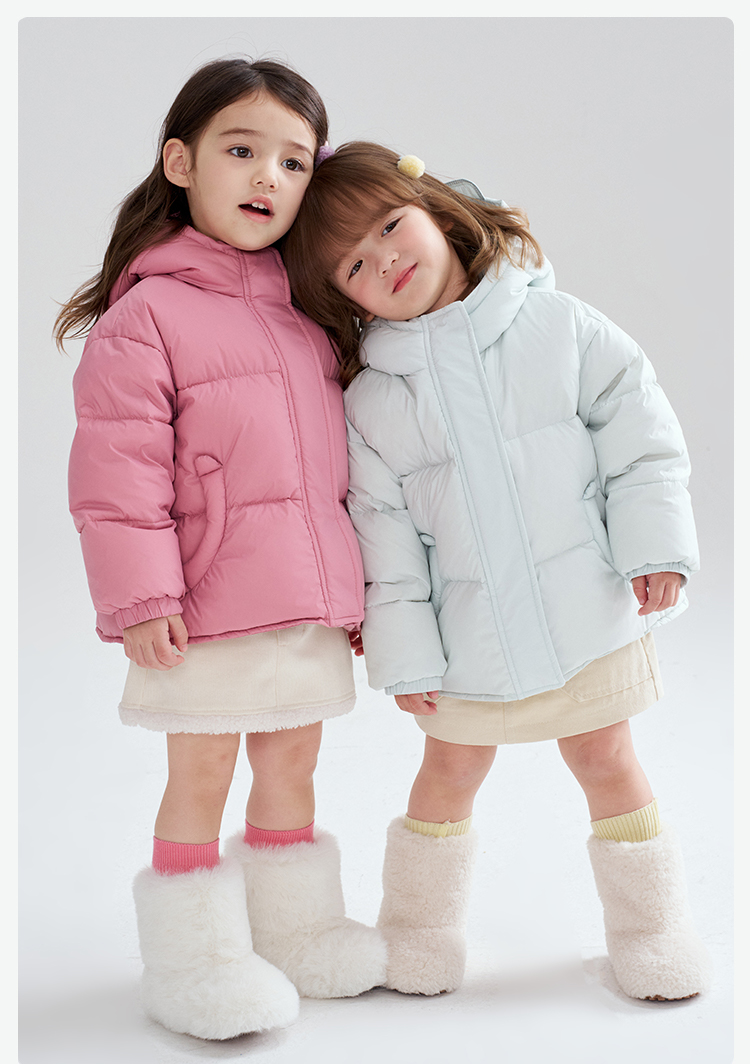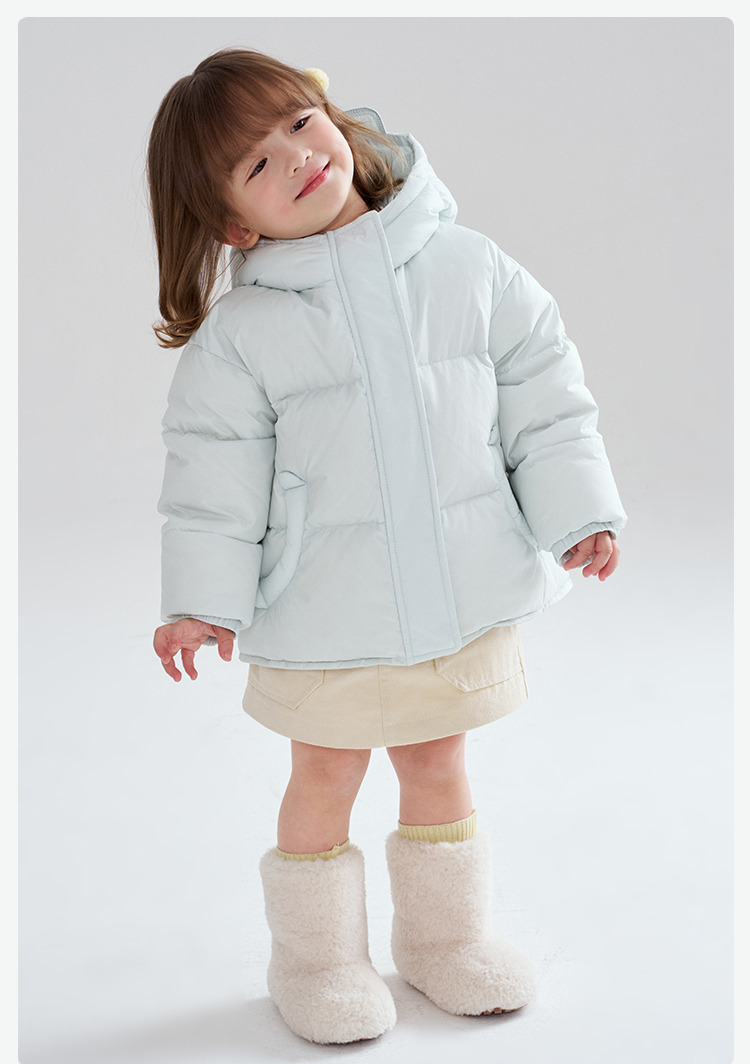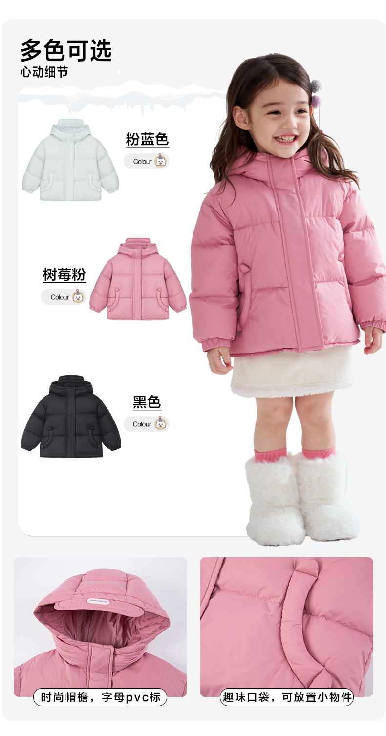 笛莎Deesha 2025冬季女童时尚洋气三防连帽短款羽绒服