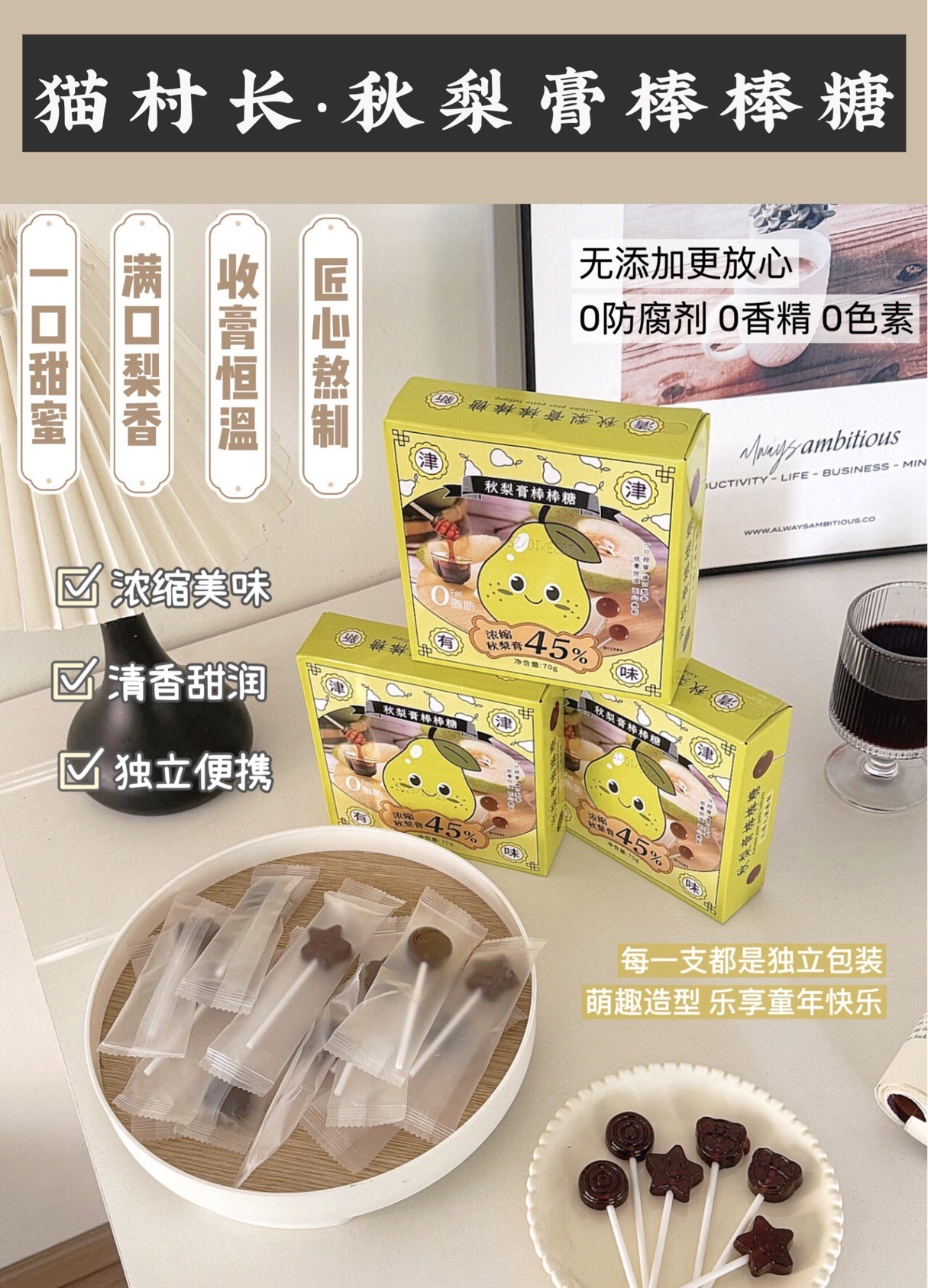 🔥天气变凉 咳不容缓‼️𝟐𝟗.𝟗元到手8盒!!🔥【猫村长秋梨膏棒棒糖8盒】👉家有宝宝咳嗽必囤它❗浓缩秋梨膏45%制成,成分简单,对嗓子超级好👍