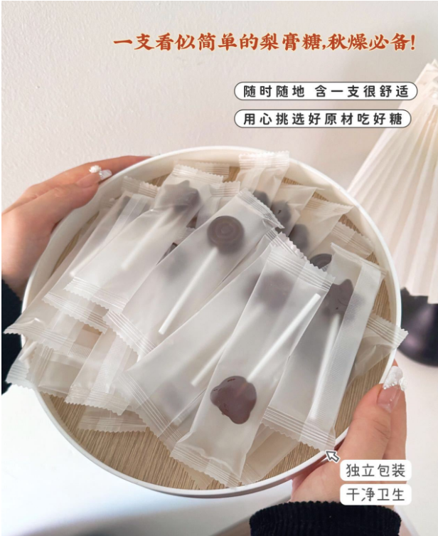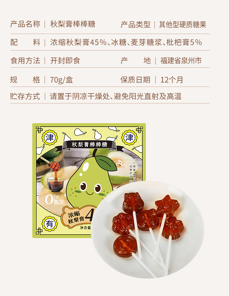 【配料表】冰糖、麦芽糖浆、浓缩秋梨膏45%、枇杷膏5%