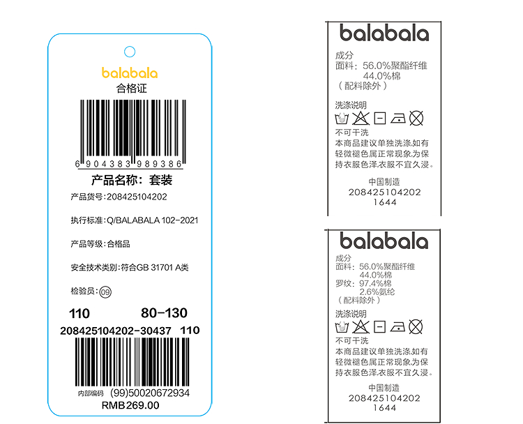 巴拉巴拉balaOne儿童套装女童男童两件套新款童装2025秋冬舒适