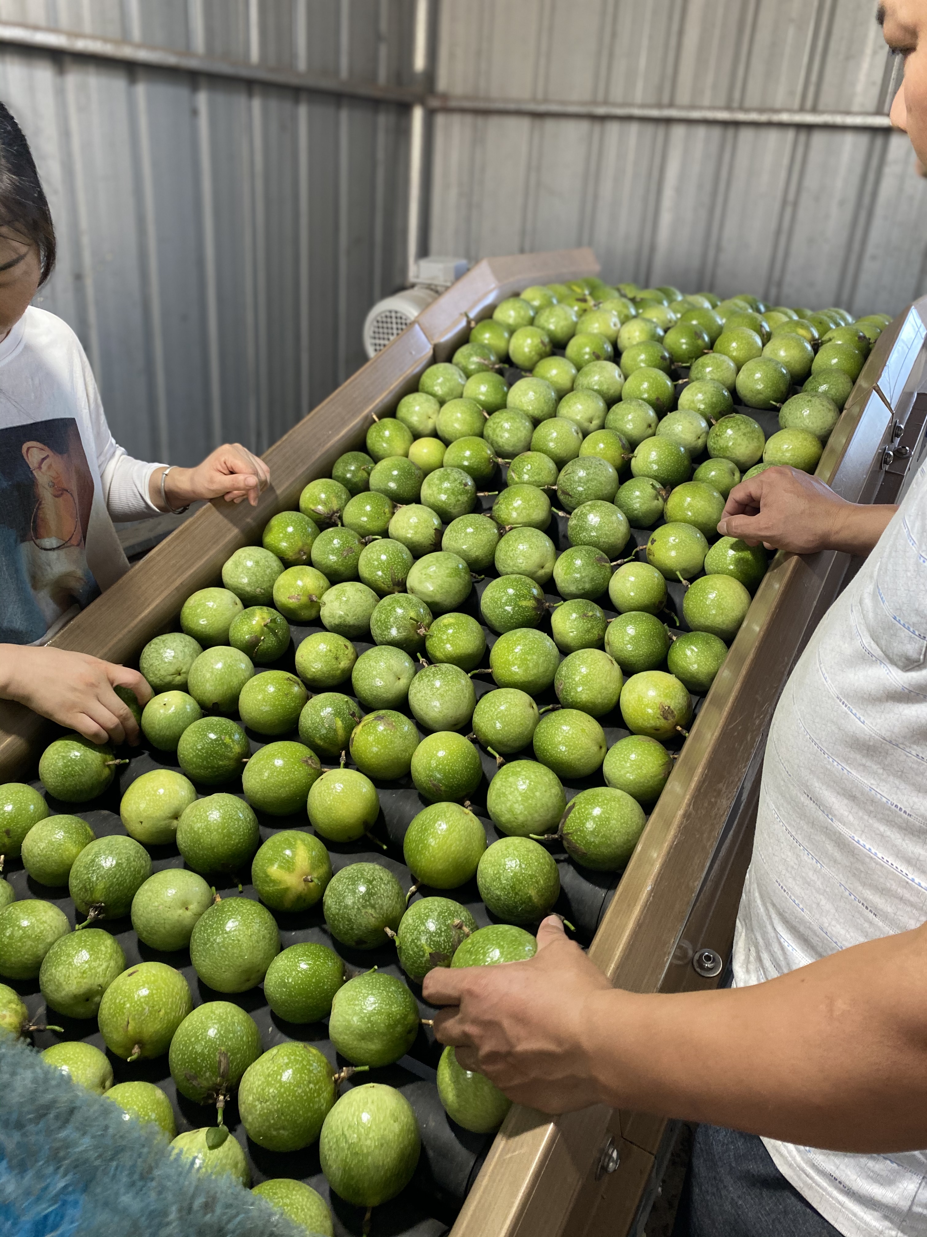 刚采下来的百香果表皮呈草绿色,刚采的果子果酸略高,放置2-3天后颜色逐渐变黄退酸,果子口感提升;4-6天后果皮呈金黄色,这个时候接近纯甜微酸,等到微皱的时候口感跟好吃的。