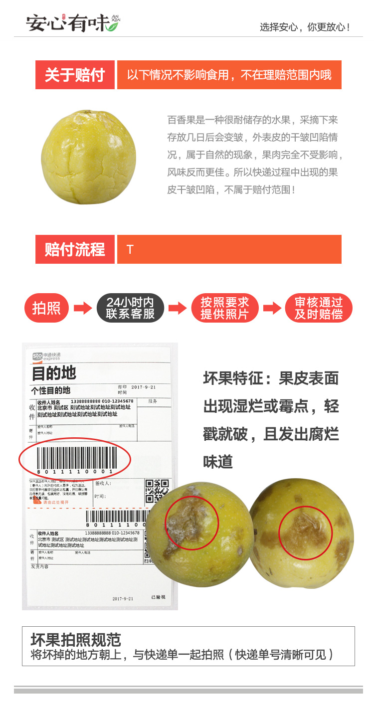 【售后】签收快递时请开箱检查,食品安全问题一直是首品放在首要位置的,因此产品有质量问题,一定要及时(24小时内)附上问题图片和快递面单(这些附件,对我们很重要)和我们业务员联系,关于您的问题我们会竭力为你处理~~