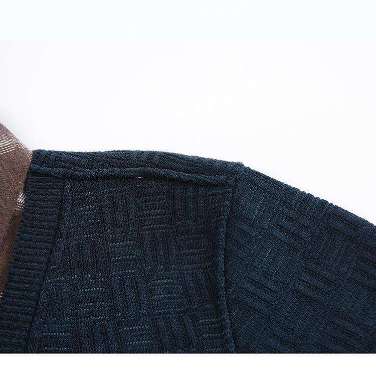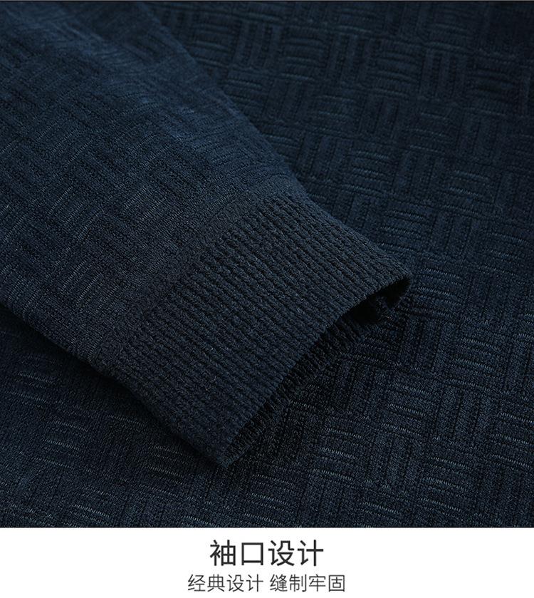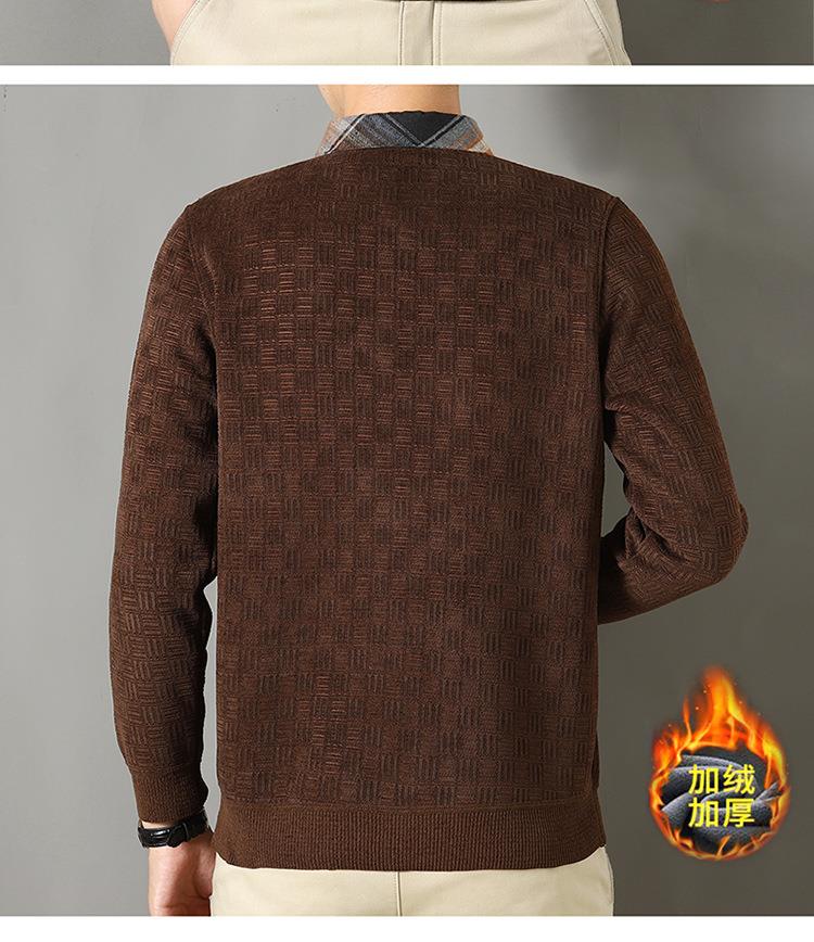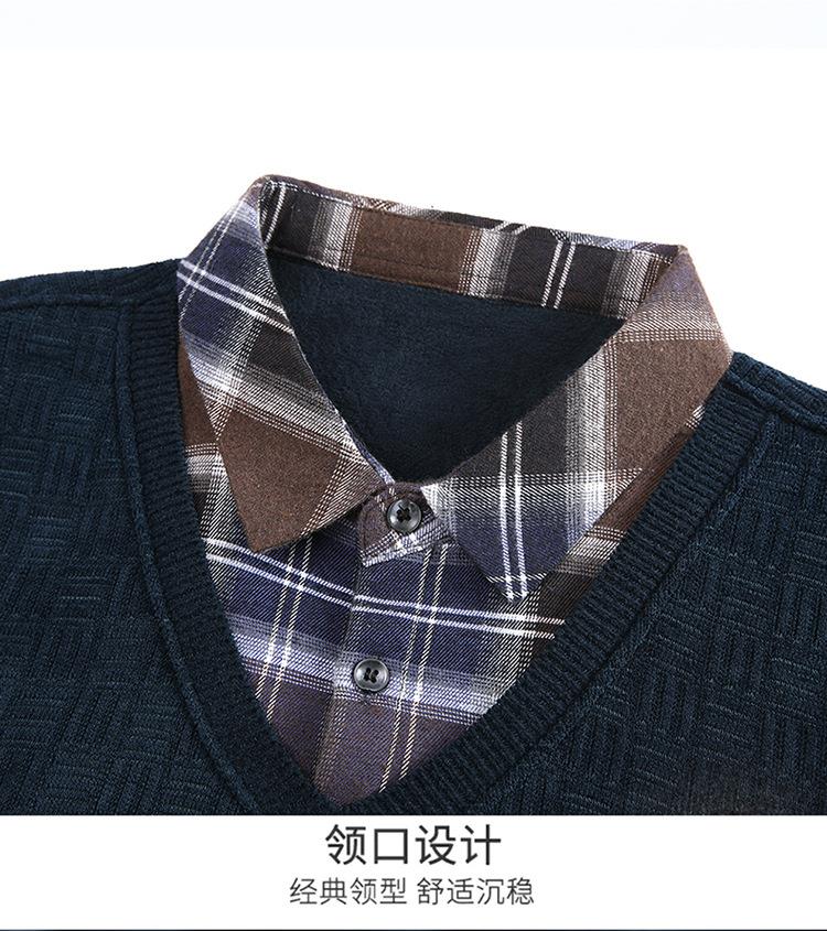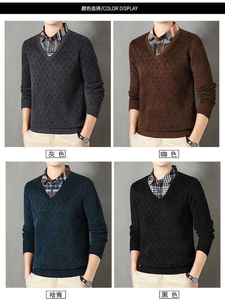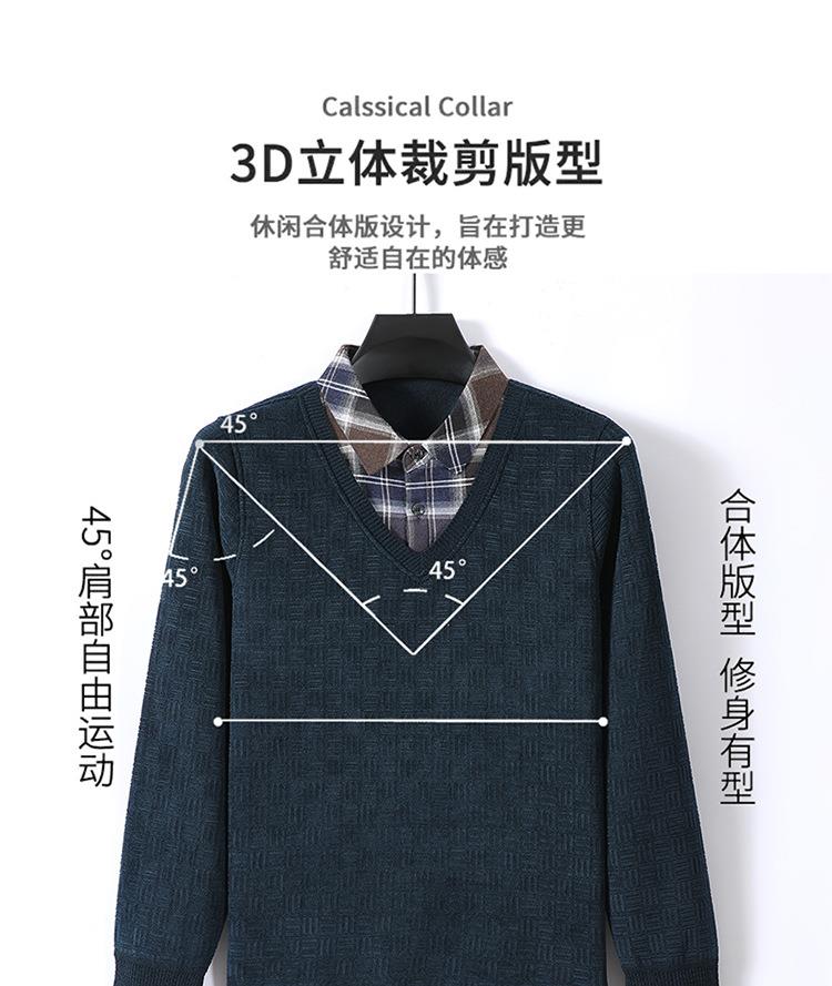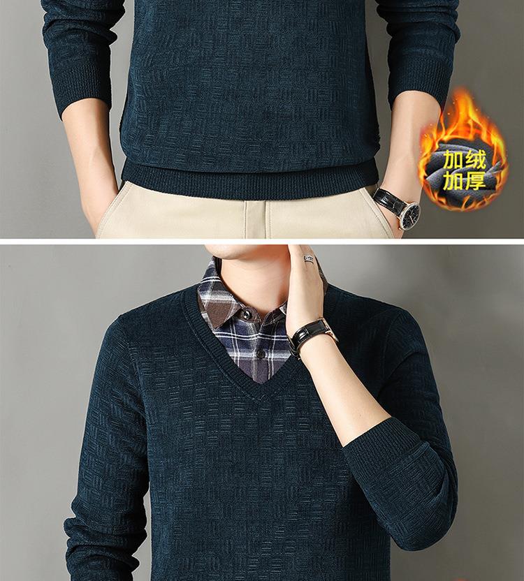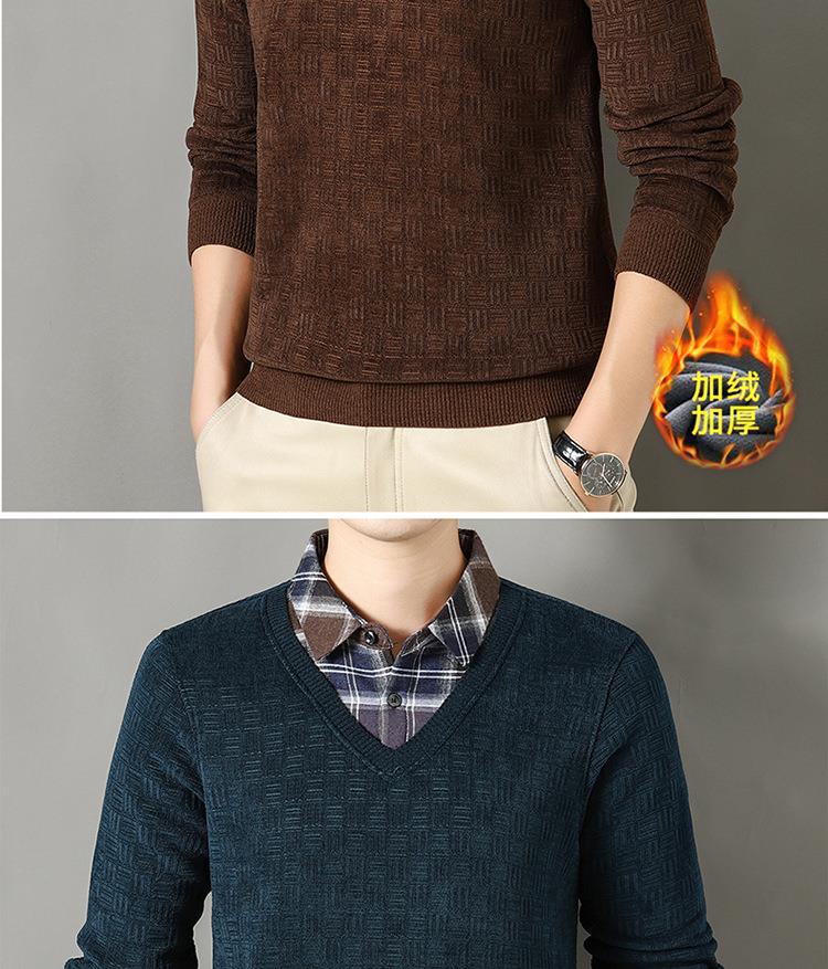 麻将格加绒加厚假两件长袖打底衫男士秋冬季新款毛衣