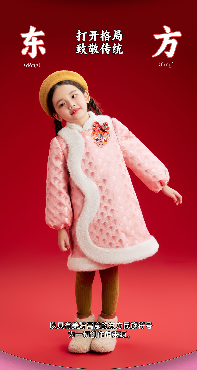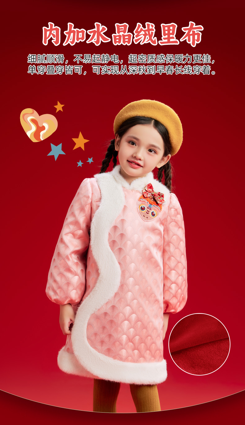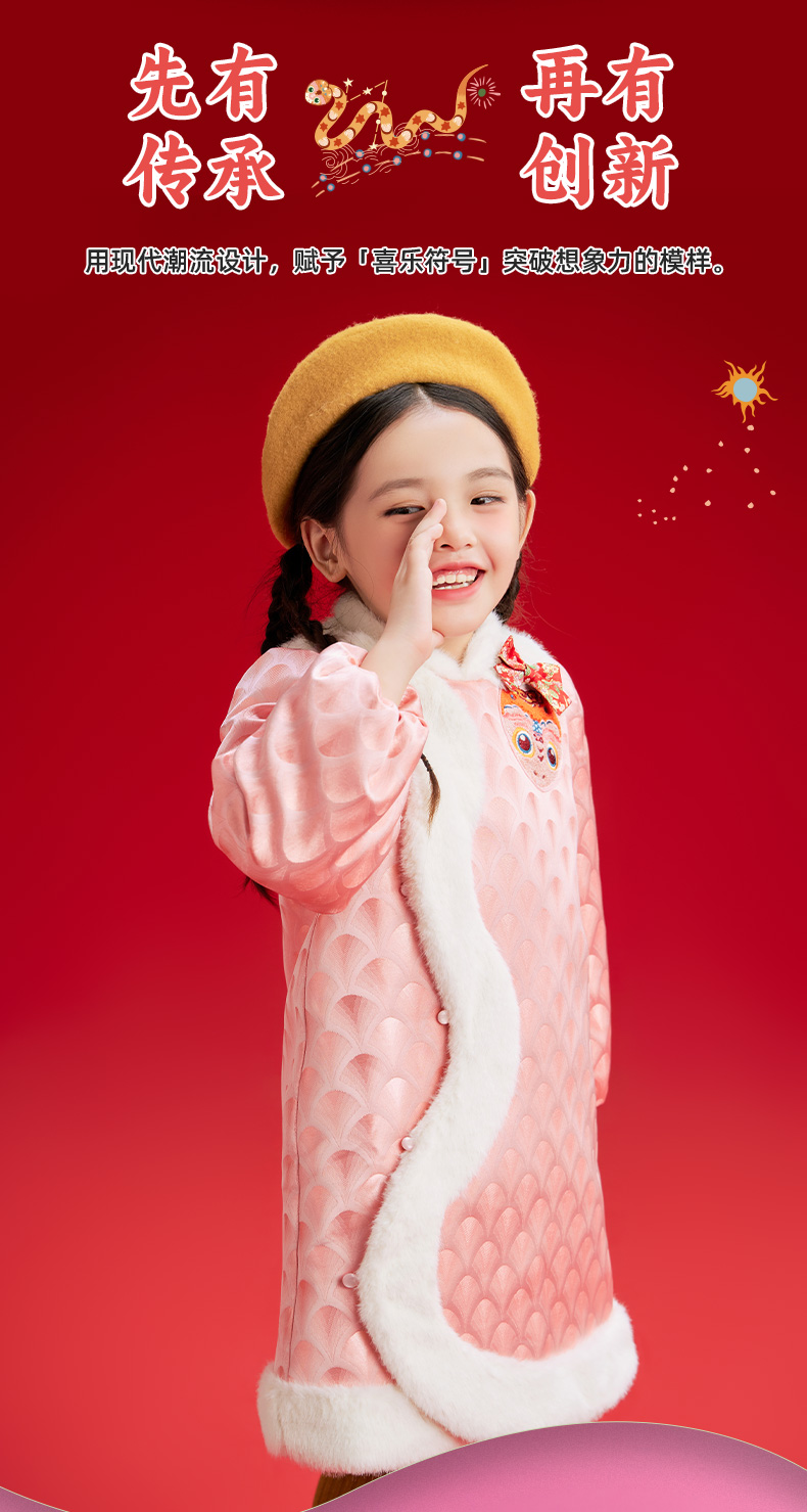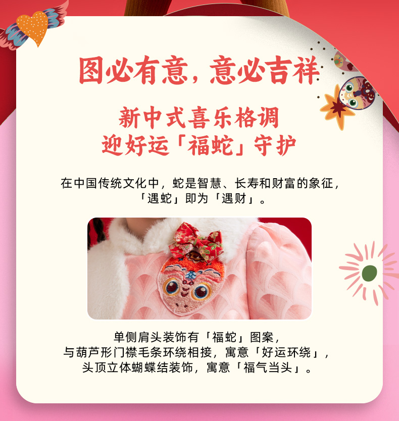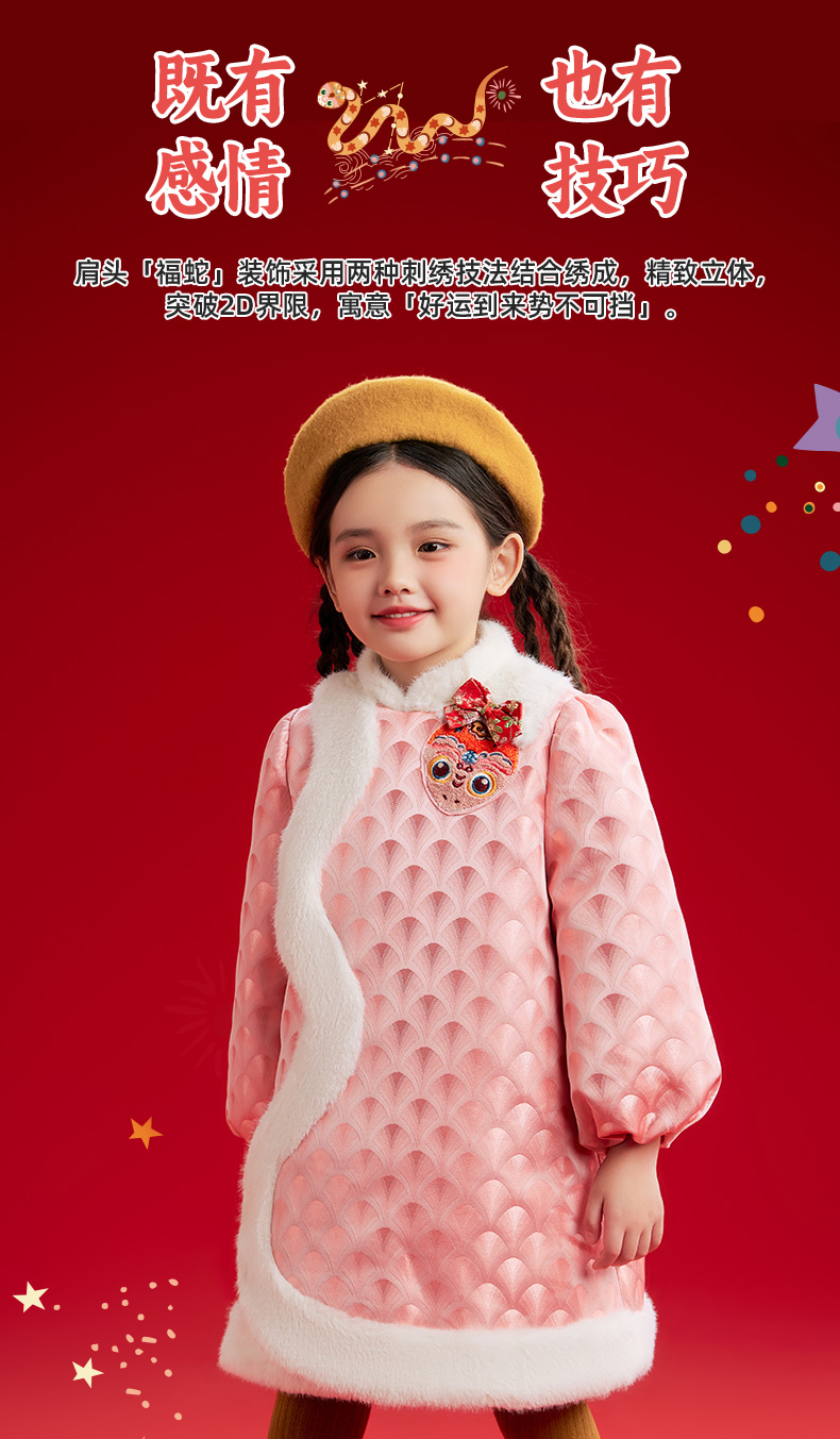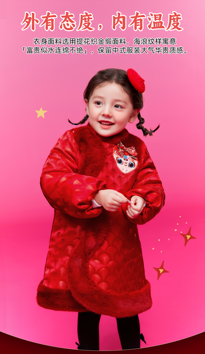 年衣童装女童改良旗袍外套冬季新款儿童演出服甜美新中式连衣裙喜乐福蛇旗袍裙