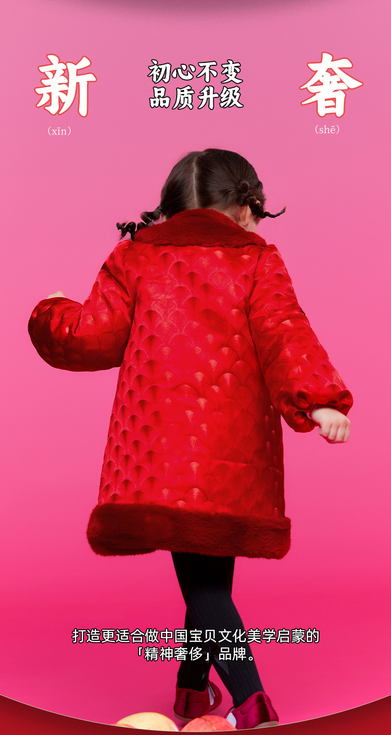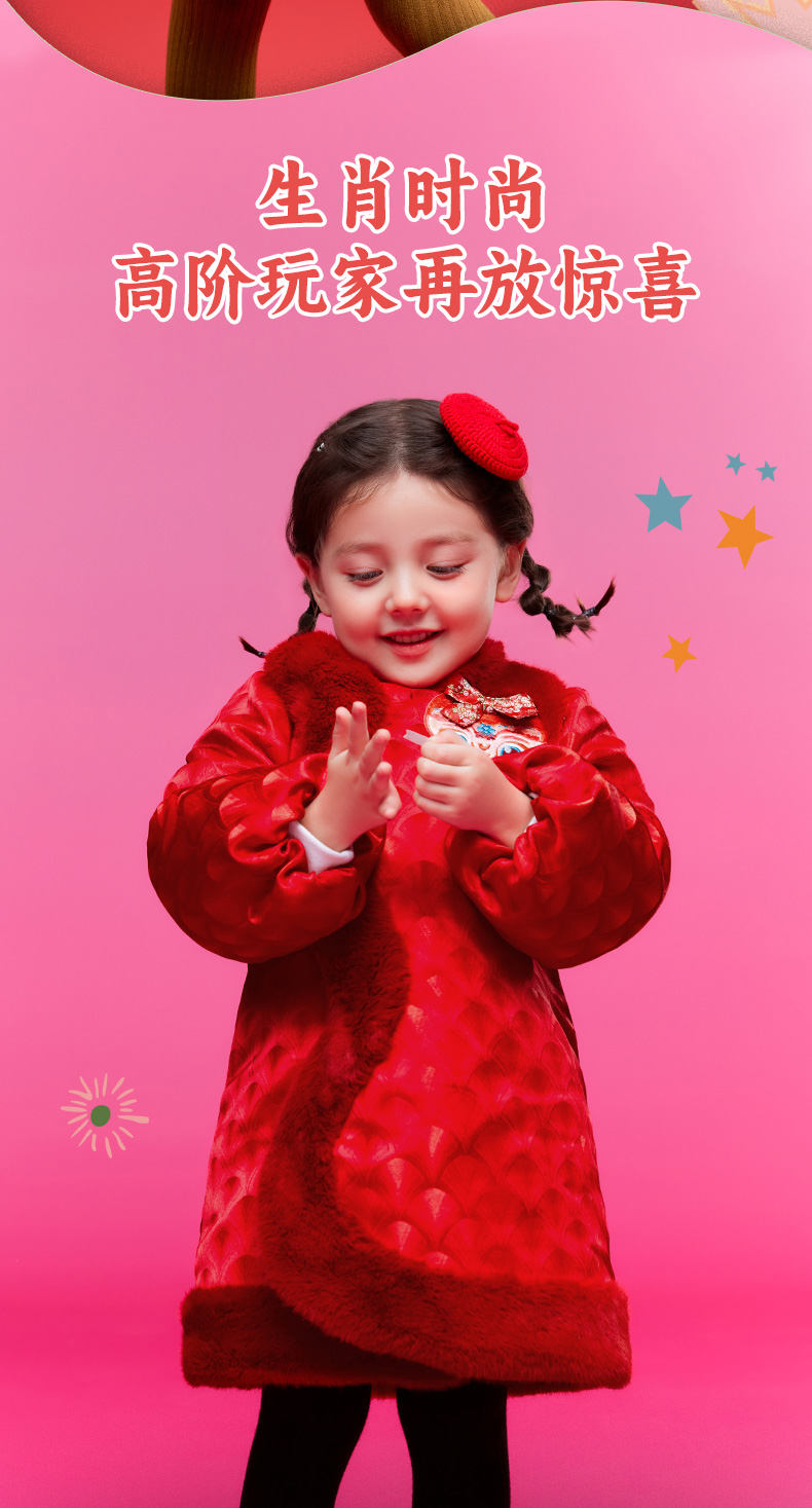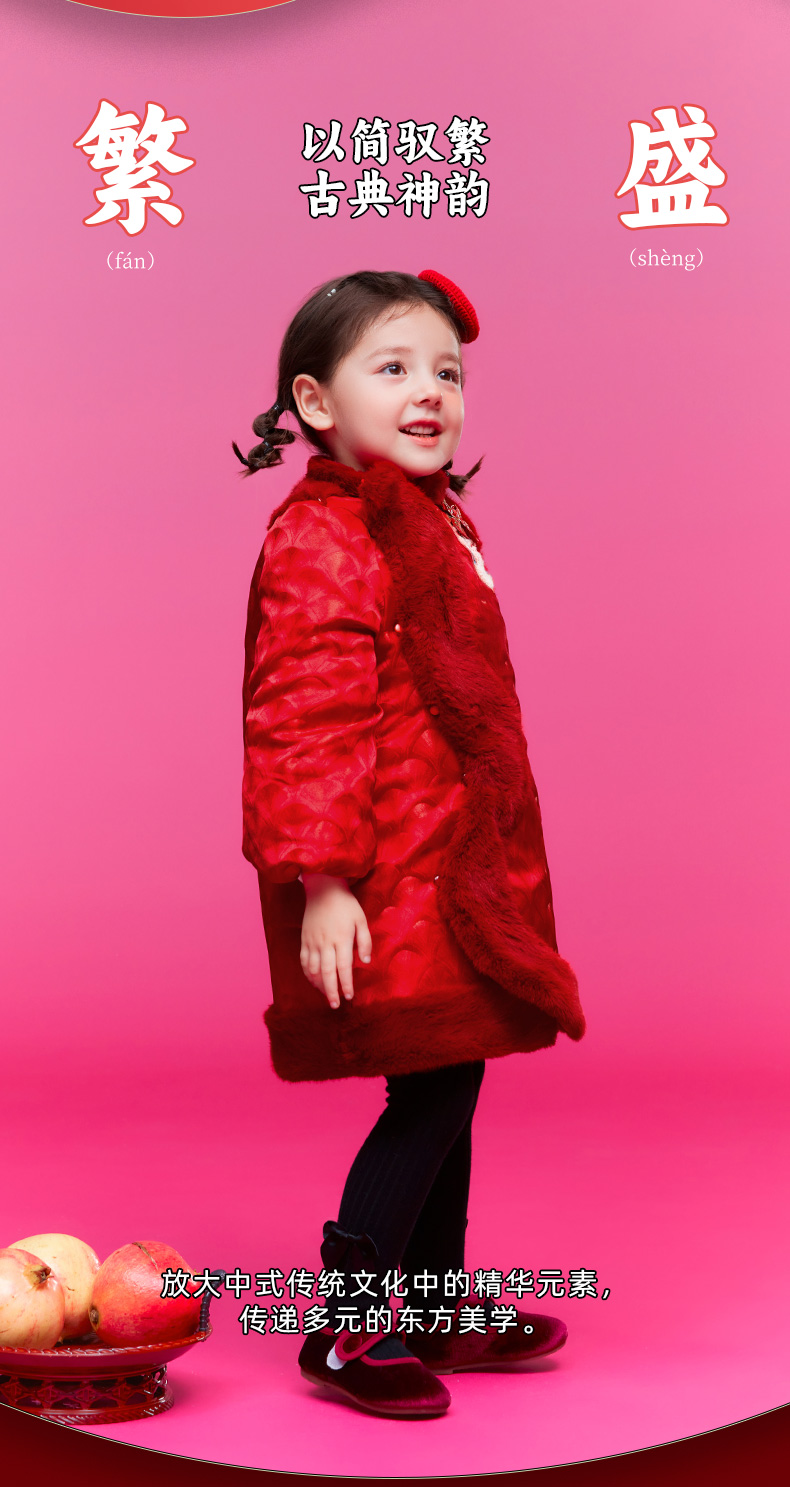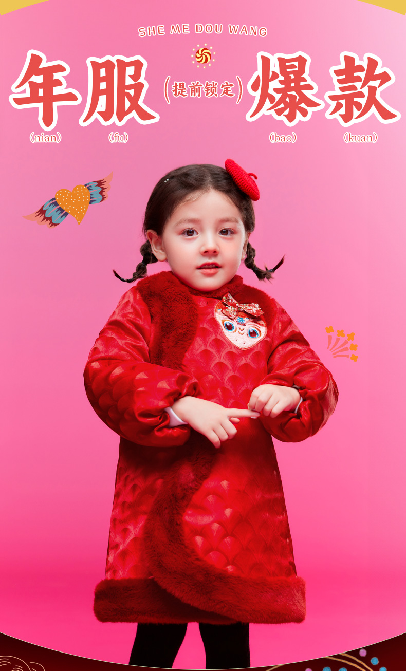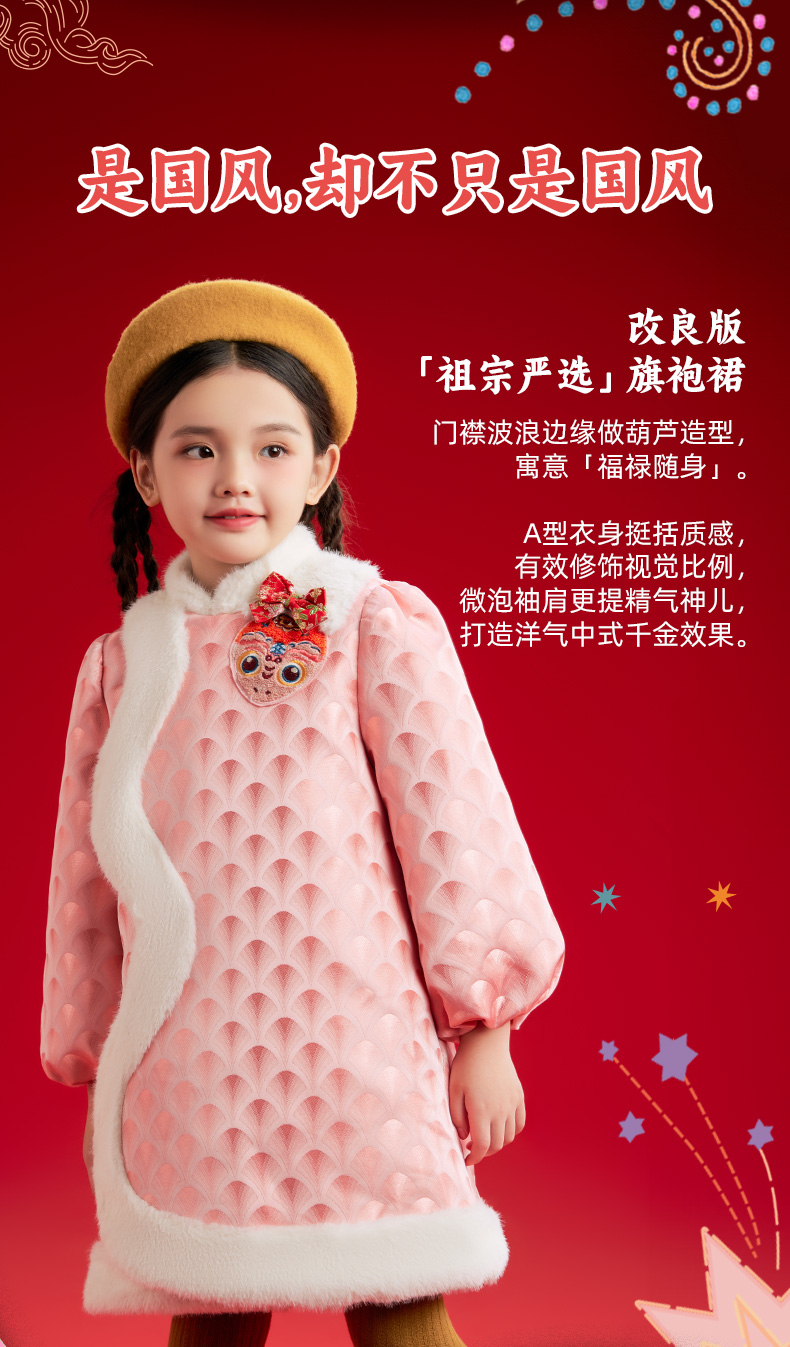 年衣童装女童改良旗袍外套冬季新款儿童演出服甜美新中式连衣裙喜乐福蛇旗袍裙