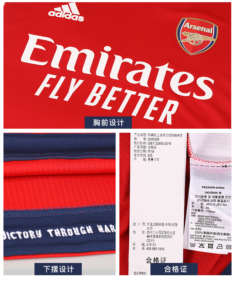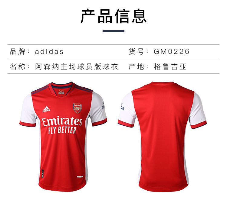 ADIDAS/阿迪达斯21-22赛季阿森纳主场球员版球衣短袖GM0226