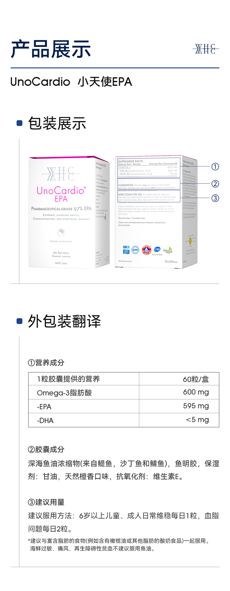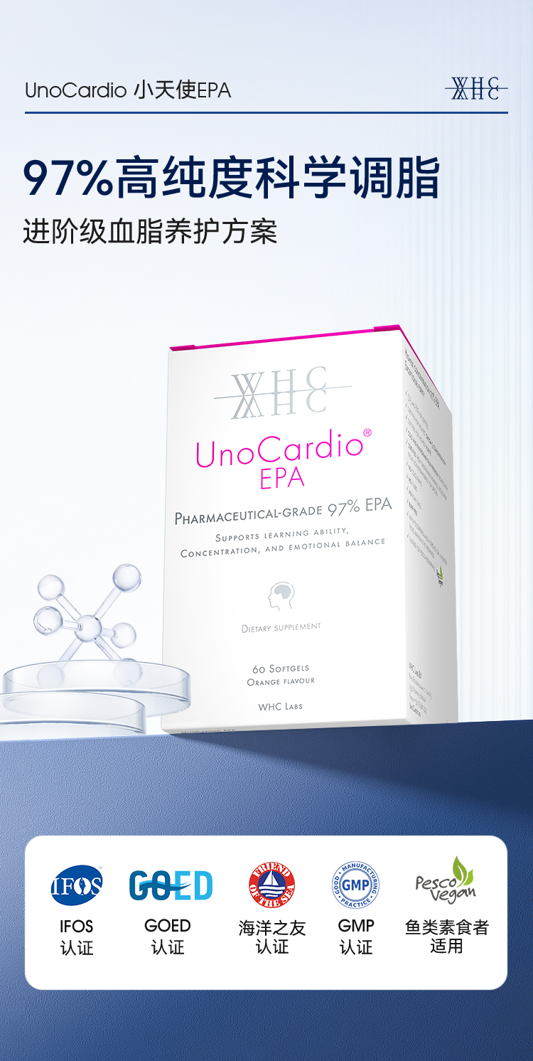 WHC小天使EPA深海鱼油97%高纯度鱼油Omega3平衡调节情绪呵护血脂健康60粒