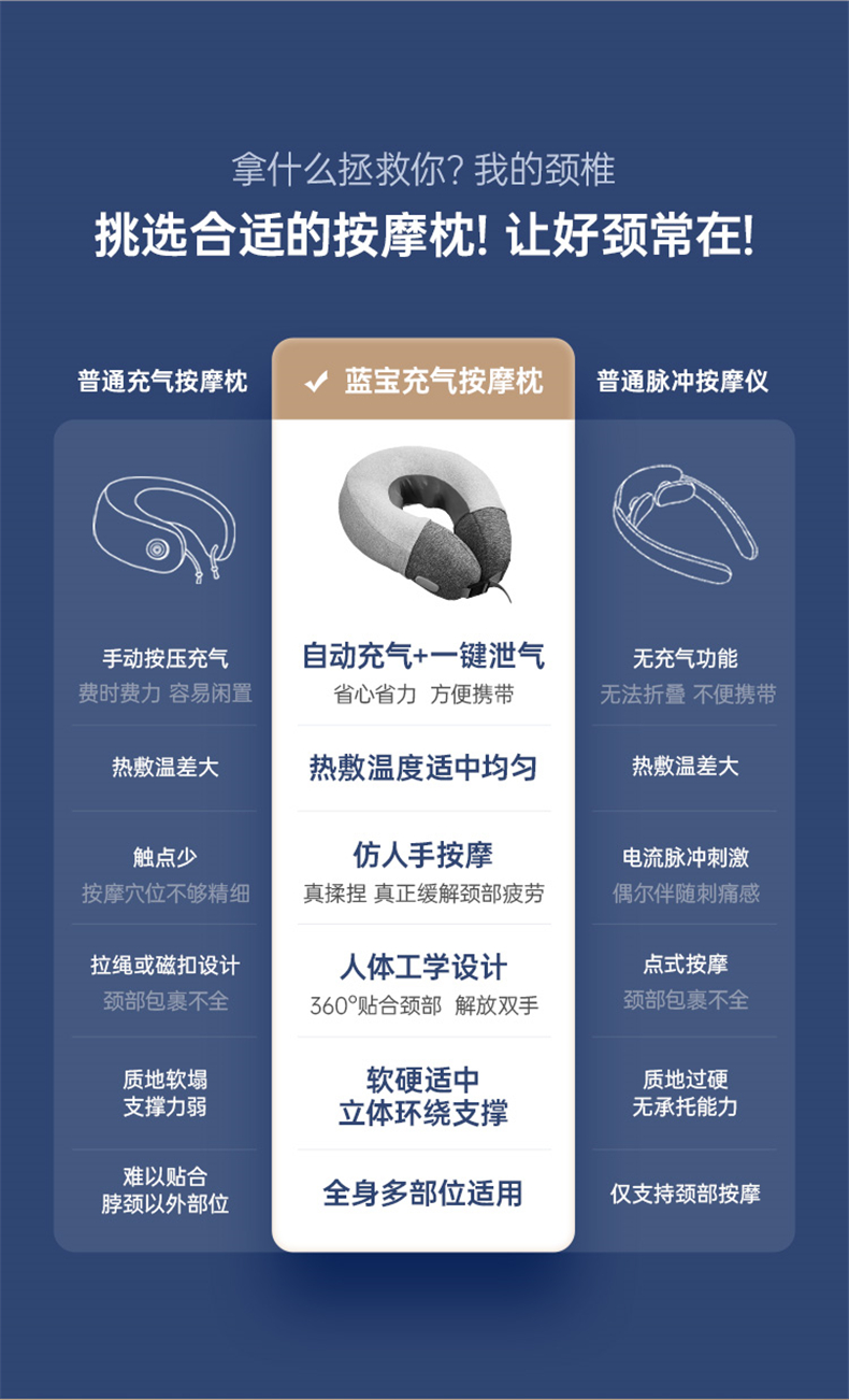 Blaupunkt德国蓝宝颈椎按摩器充气按摩护颈枕腰肩颈部按摩仪